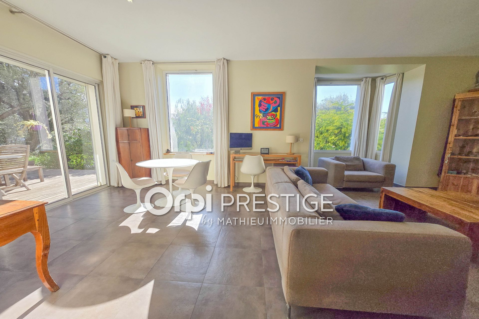Rare - Le charme de la campagne et des années 20 à deux pas du centre d'Antibes, ainsi que le calme de son jardin bien exposé vous séduira. Elle n'en est pas moins moderne par son intérieur lumineux et rénové avec goût et offre une très belle pièce de vie donnant sur une terrasse, 3 jolies chambres, une salle de bains et une salle d'eau, des balcons, une buanderie, des annexes. Parkings, portail automatique, vidéophone, climatisation, fibre, alarme, cuisine entièrement équipée, chauffage au sol complètent le confort de cette villa au jardin luxuriant.