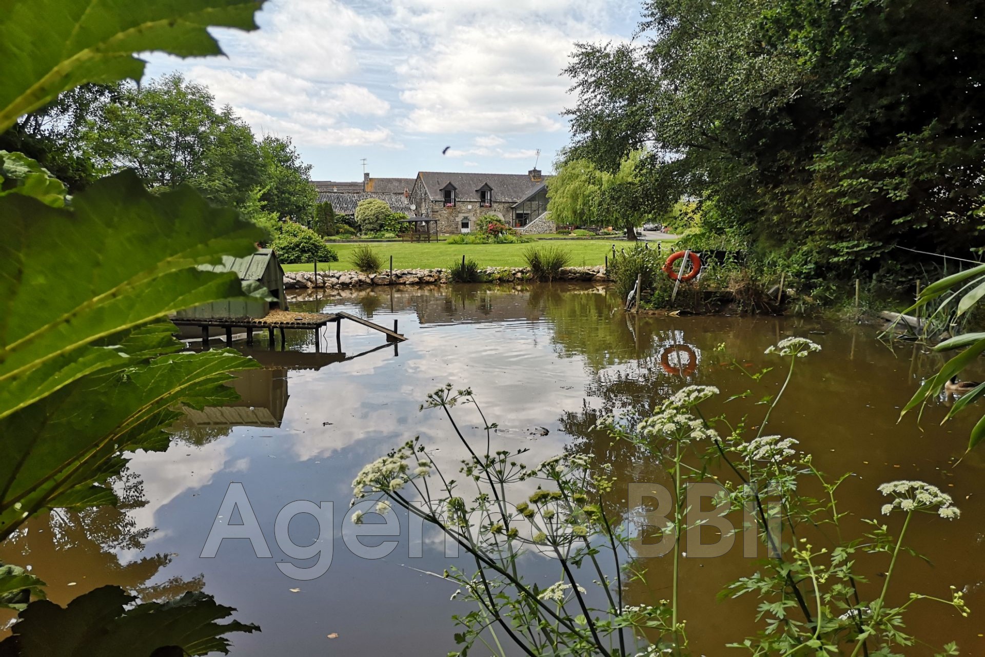 Au fond du jardin parfaitement entretenu,1 bel étang avec un endroit pour se relaxer et profiter de la vue.