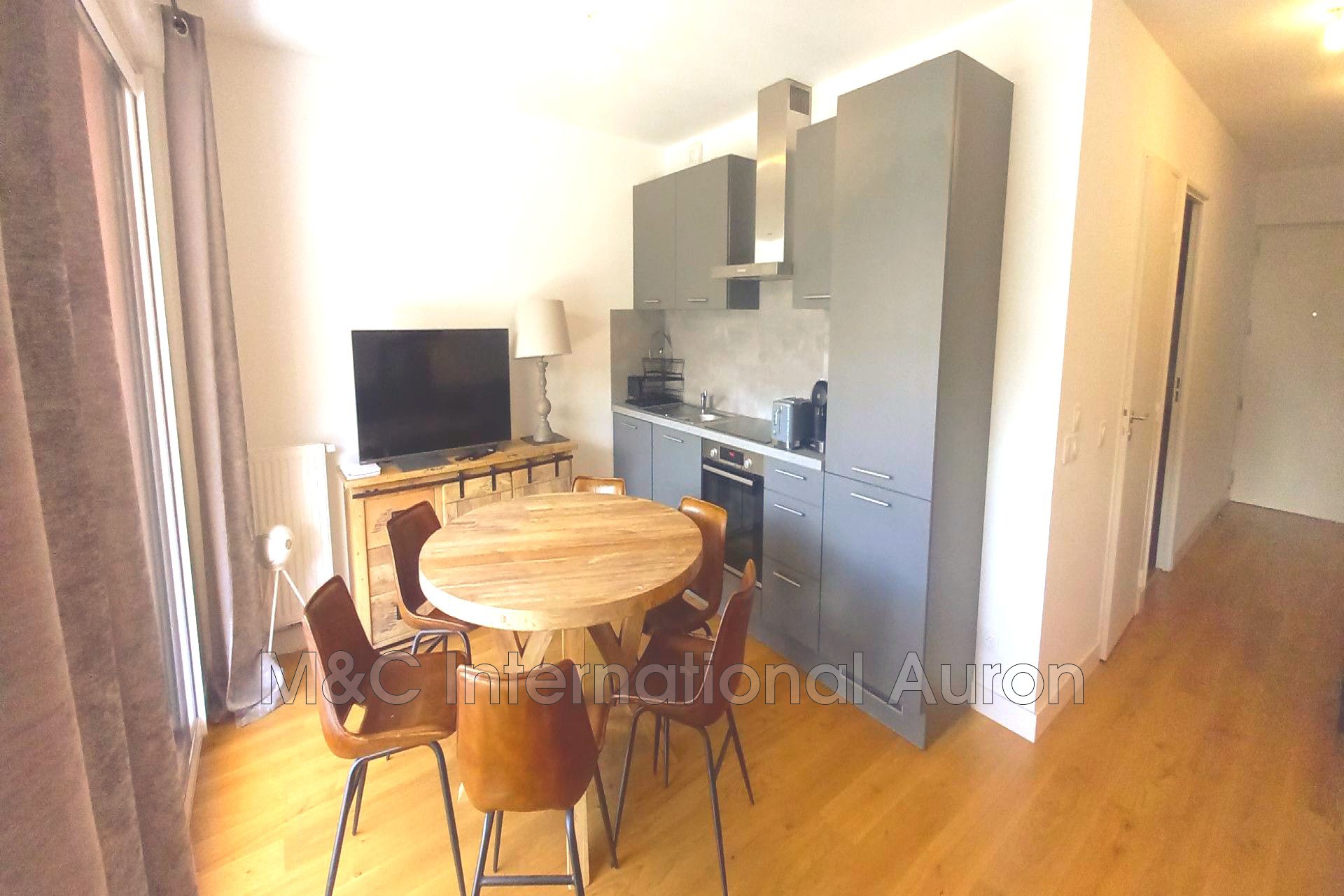 Beau 2P cabine dans une résidence neuve proche du centre de la station. Un salon avec cuisine américaine équipée (lave-linge), une chambre, un coin cabine avec 3 lits simples, une salle d'eau avec WC. Parking extérieur