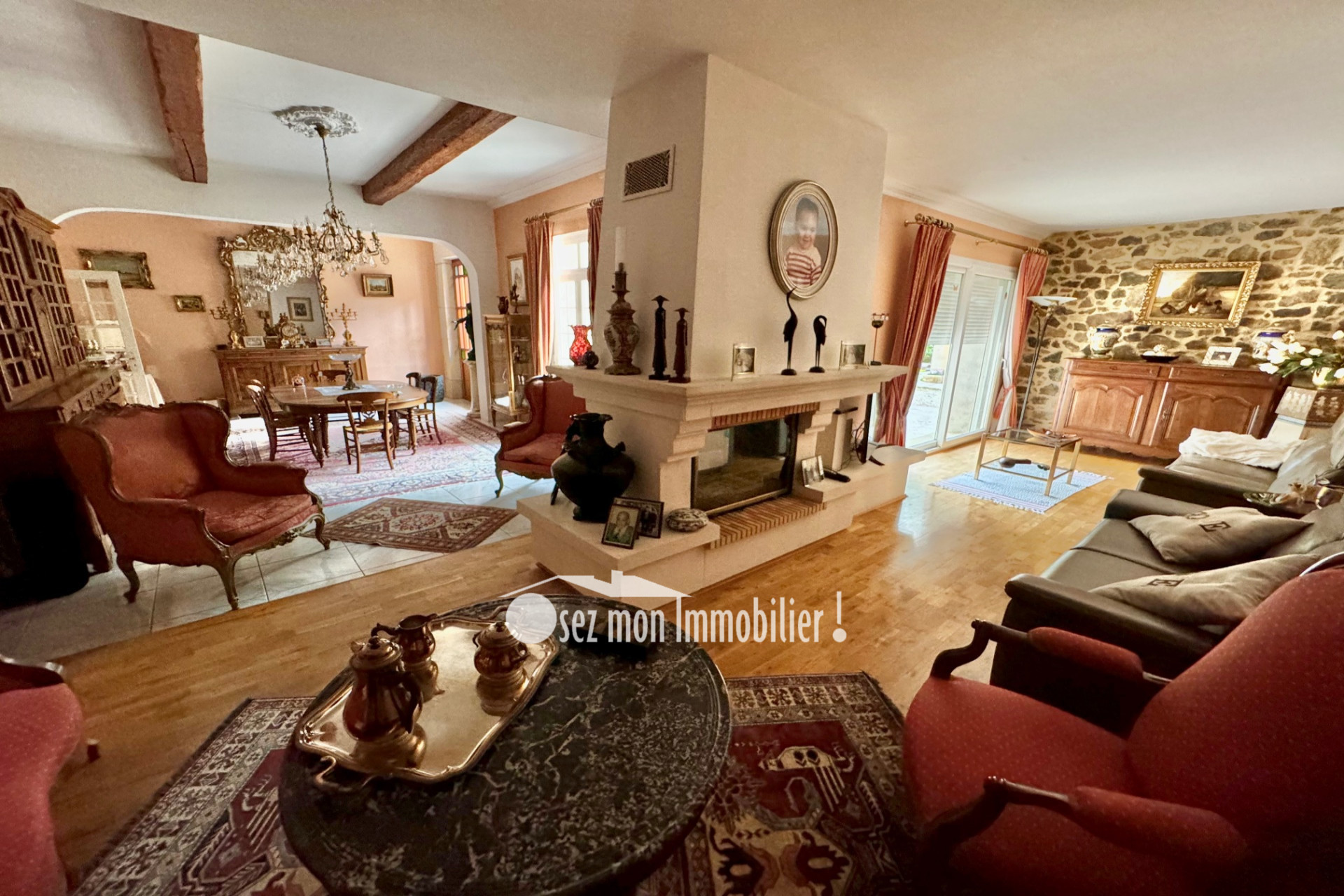 Village Minervois: Magnifique maison de maitre de 273 m2 habitable, très bien conservée et entretenue, avec ses dépendances de plus de 600 m2 sr 2 niveaux, son parc dans lequel se dressent de très beaux arbres, oliviers centenaires, une piscine au sel et le pool house. Un lieu unique? La bâtisse datant de 1870 offrent de beaux éléments d'origines : carrelages anciens, moulures, cheminées? Le vaste séjour avec son salon séparé par une belle cheminée avec insert est ouvert sur la terrasse arrière à l'ombre des platanes pour vos repas d'été. La cuisine est séparée et équipée avec une arrière-cuisine. Un grand salon avec cheminée ou chambre en rch. Une cave à vin. Au 1er étage vous trouverez 4 grandes chambres et une salle de bain avec douche et bain. Possibilité de créer une autre salle d'eau au 1er et une au rch de chaussée si nécessaire. Au 2 ème un espace à finir d'aménager pour créer des pièces supplémentaires déjà en partie existantes et prêtes à finir (double vitrage, rideaux roulants en place). Toiture refaite. La grande remise de 300 m² au sol sur 2 niveaux, en pierres permet du rangement, garage pour plusieurs véhicules, extension? Enfin le parc sur une surface totale de 2800 m² est exceptionnel et très bien entretenu. Une immense piscine avec son pool house, cuisine d'été, BBQ pour vivre et profiter de cet art de vivre méditerranéen tant recherché. Belles prestations : Climatisation réversible, cheminée insert, rideaux roulants électriques centralisés, alarme avec vidéo surveillance, puits, arrosage automatique, piscine au sel?