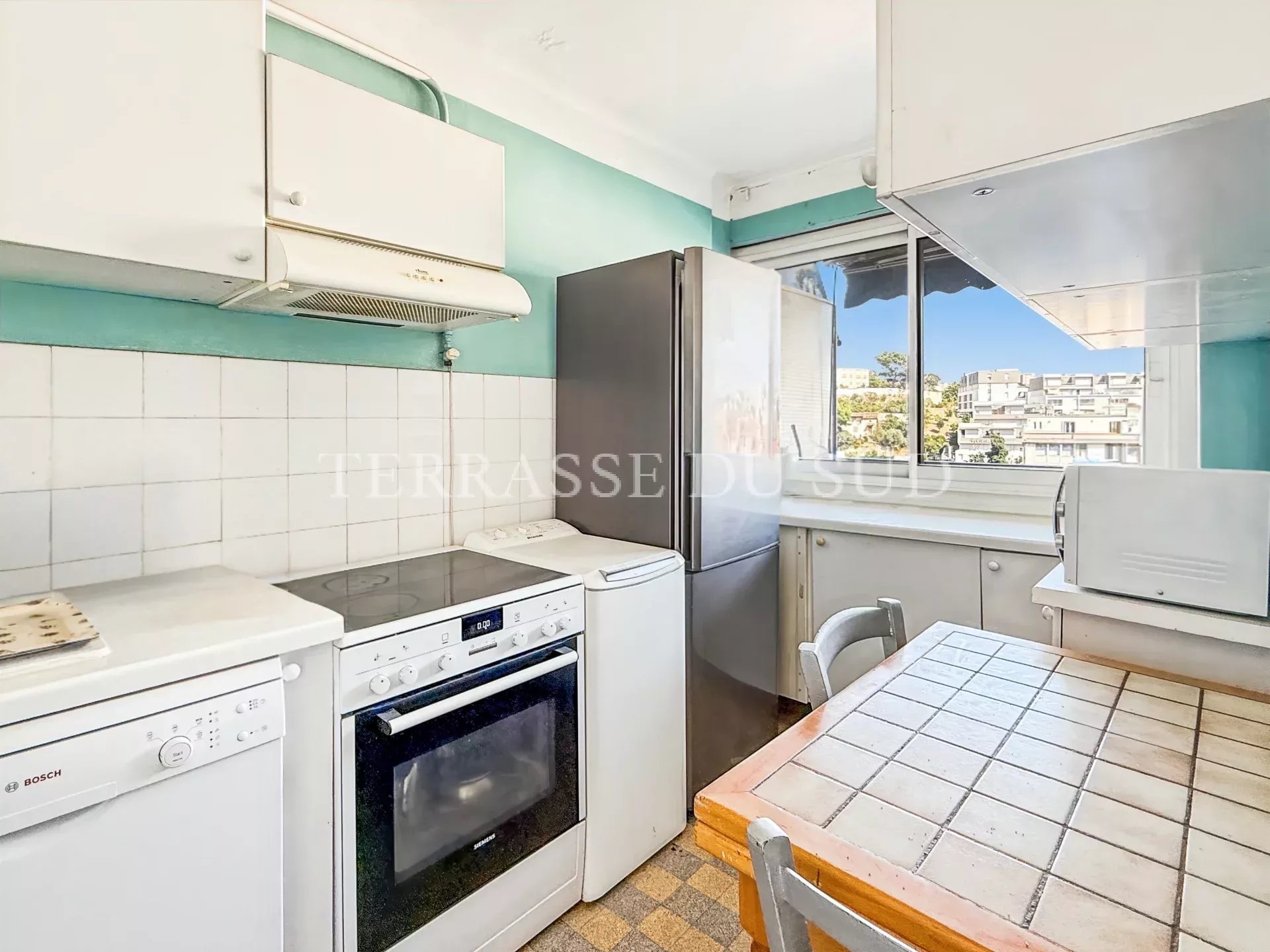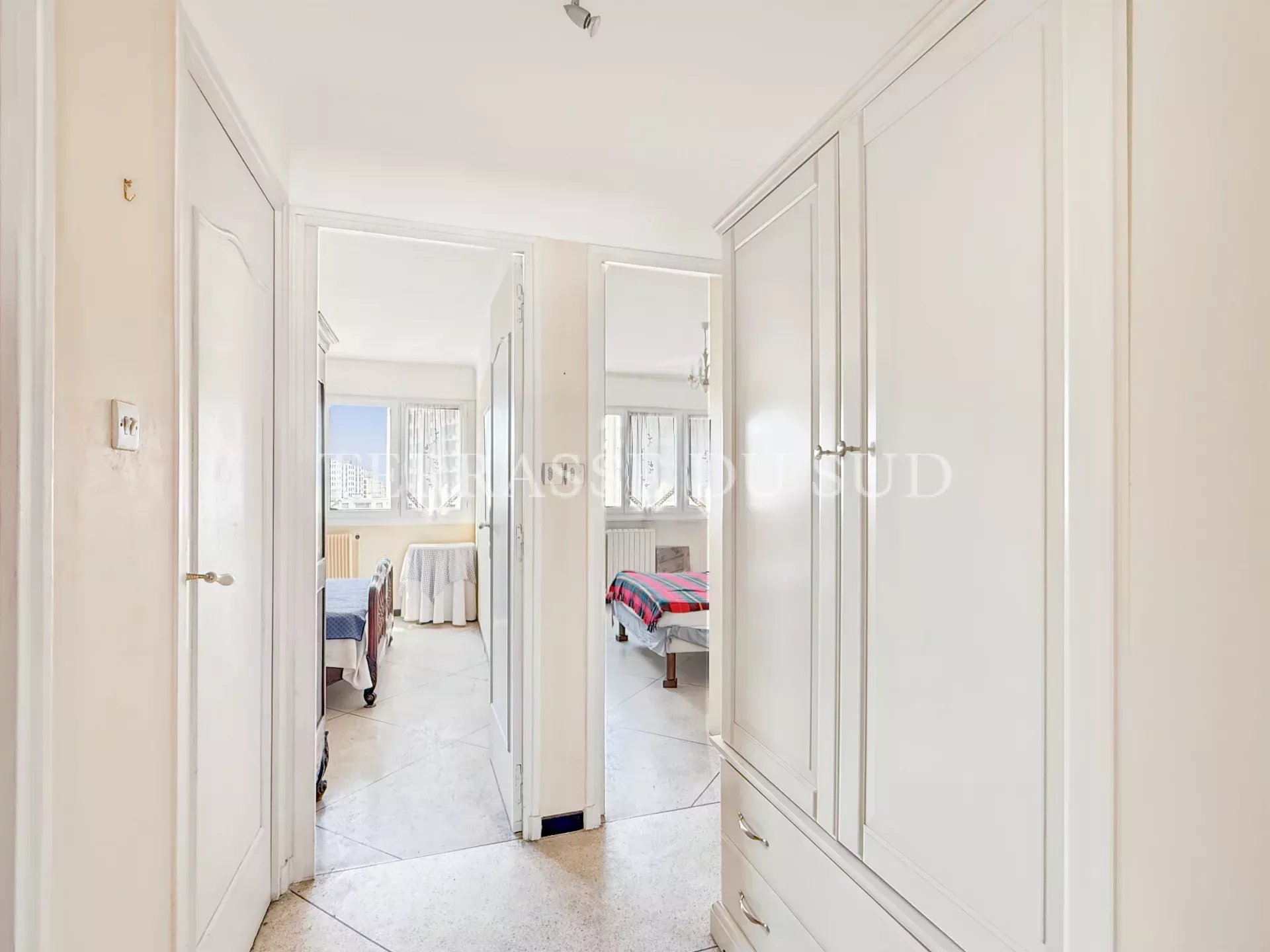 Bon Secours - Marseille 14 T3 de 62,63 m2 LC, en étage élevé, avec Balcon et Cave. Au sein de la copropriété "Le Massenet", cet appartement, lumineux et traversant SE et NO, situé au 7ème étage sur 8 avec ascenseur, se compose d'un séjour exposé Sud-Est, d'une cuisine séparée "ouvrable" sur le séjour, de 2 chambres exposées Nord-Ouest, d'un dressing, d'une salle d'eau et de toilettes indépendantes. Le séjour ouvre sur un balcon de 6,5 m2 offrant une jolie vue dégagée sur la ville et Notre Dame de la Garde au loin. Une cave complète l'ensemble. Possibilité d'acquisition d'un box double (côte à côte) à 15 000 euros en sus du prix affiché. Les charges sont de 96 euros par mois environ (ascenseur, eau froide, syndic, assurance, entretien immeuble, éclairage...). Autres prestations: interphone, porte blindée, fenêtres en double vitrage, chauffage et eau chaude par chaudière gaz individuelle , fibre optique, façade refaite en 2023. Contact: Mme FERRATO 06 24 18 25 20