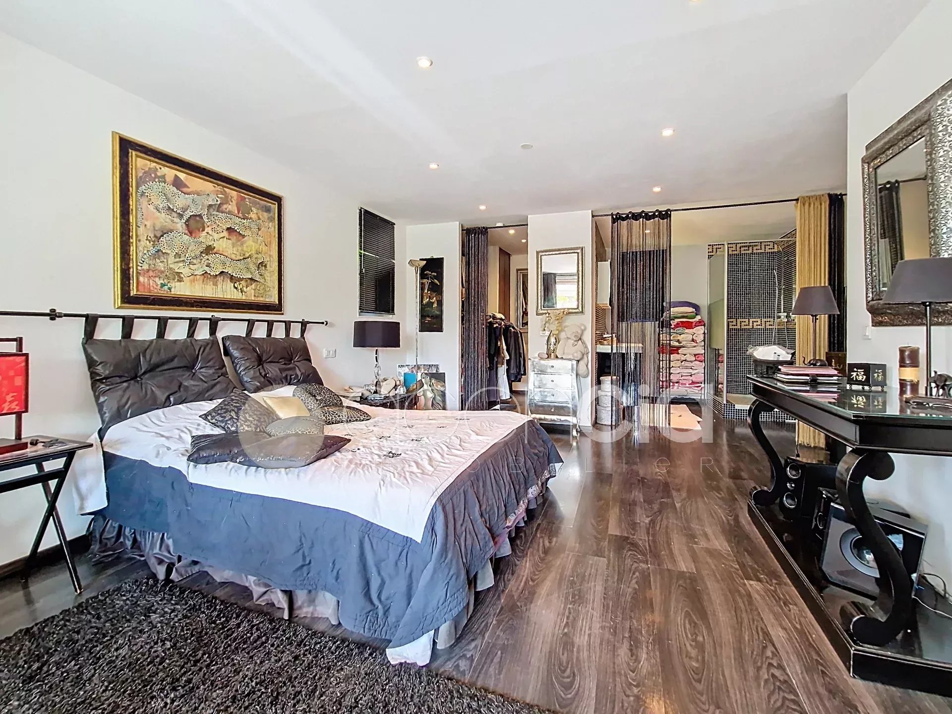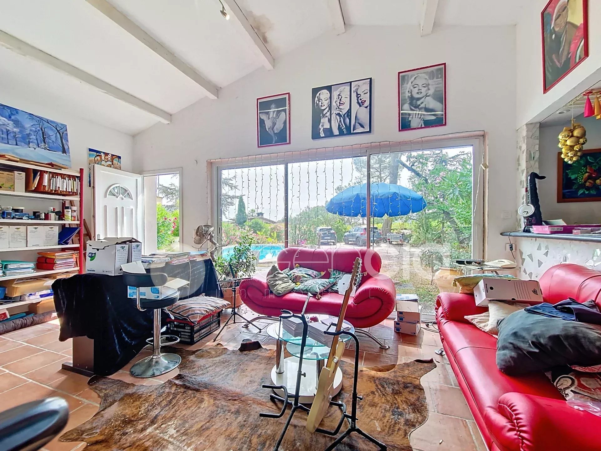 Notre agence immobilière vous propose une villa à Peymeinade. Idéalement située, dans un environnement calme et à 5 minutes des commerces. Belle villa de charme et de caractère de 205 m² habitables, agencée en 2 appartements confortables et fonctionnels ! Rez-de-jardin appartement 1 : indépendant, comprenant un salon, une cuisine, une chambre, une salle de douche et des toilettes. Appartement 2 : appartement indépendant bénéficiant d'un salon avec cheminée, d'une salle à manger, d'une terrasse, d'une cuisine, d'une buanderie, de 3 chambres, d'une salle de bain et de toilettes + en rez-de-jardin, la chambre parentale de 36 m² avec un dressing, une salle de douche et des toilettes. Beau terrain plat, arboré et clôturé de 1500 m² avec piscine. Pool-house/atelier/studio. Potager avec une serre. Portail automatique. Assainissement tout à l'égout.