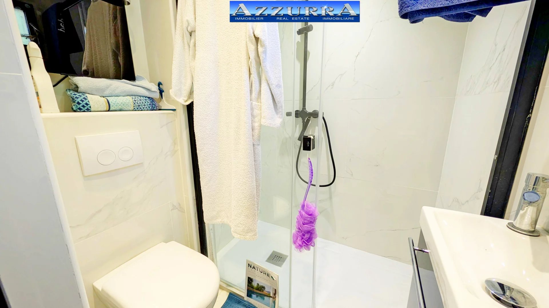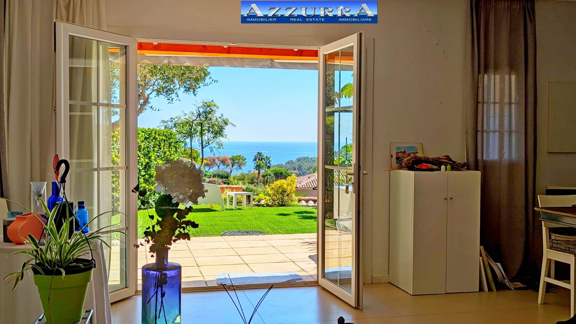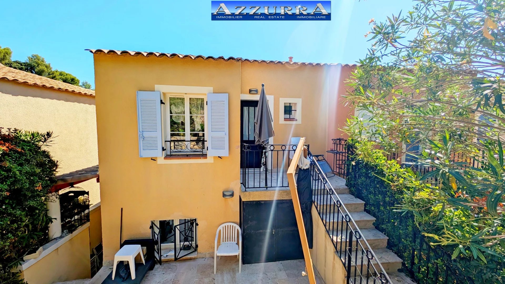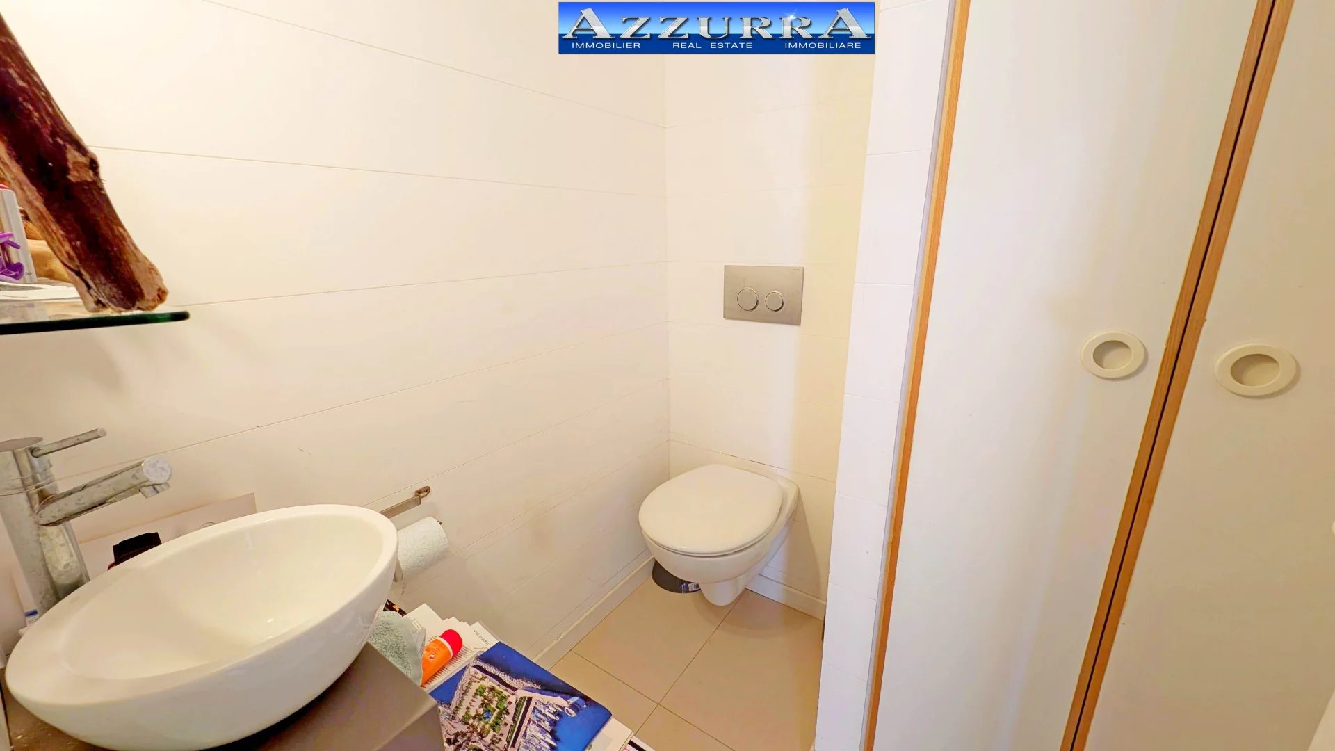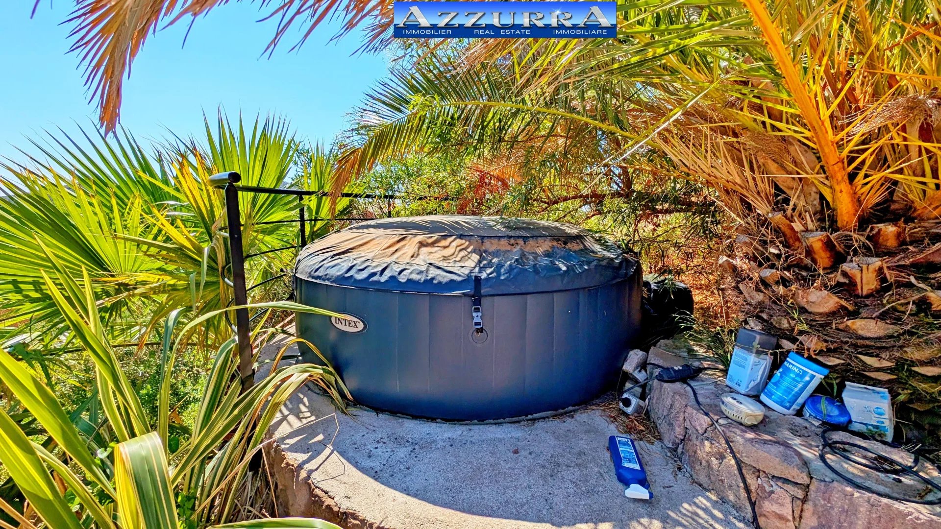 Entrée privée par le jardin, beau salon avec cuisine américaine entièrement équipée, WC avec lave mains. A l'étage deux belles chambres avec vue panoramique sur la mer, spacieuse salle de bains avec baignoire à remous, dressing, salle d’eau et WC. Dans le grenier un espace chambre/rangement. Plusieurs belles terrasses avec double exposition et vue panoramique dégagée à 360° sur la mer. Beau terrain de 250 m² en terrasses avec jacuzzi. Garage.