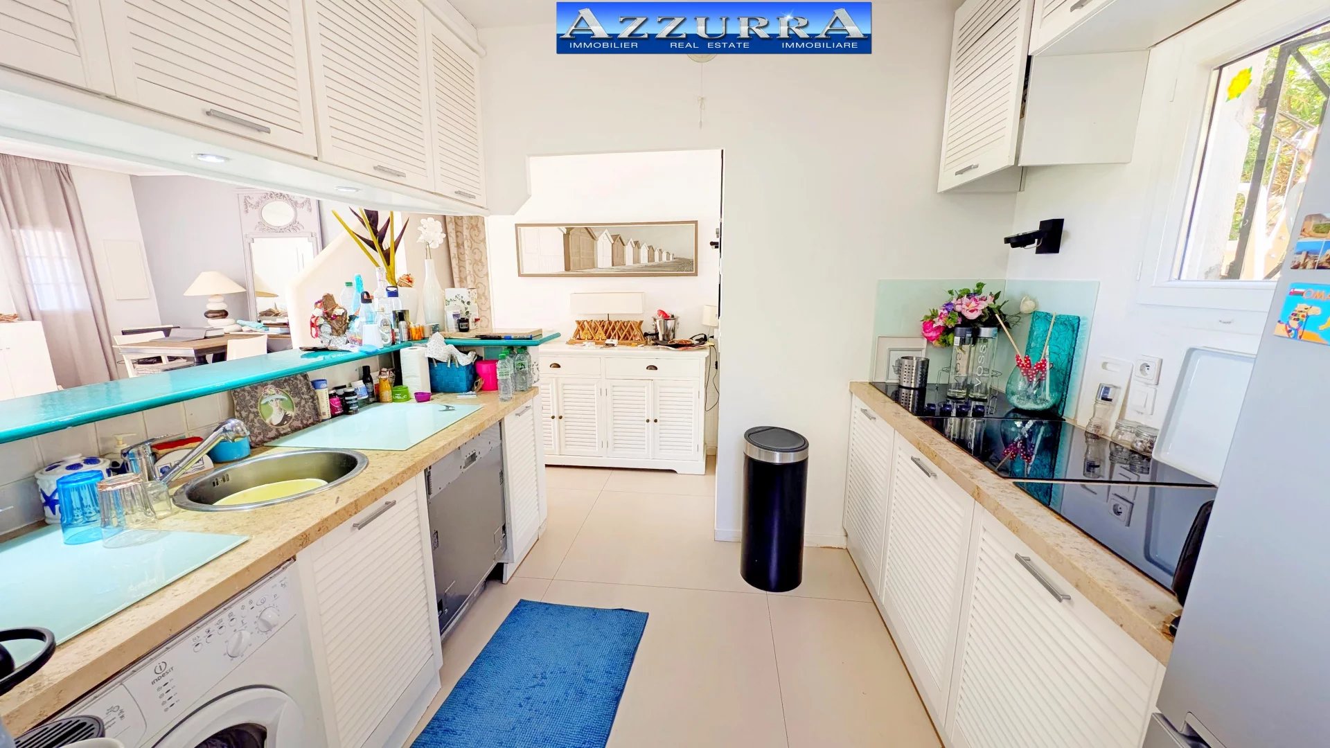 Dans un domaine sécurisé et gardienné avec tennis, golf et piscines, à proximité des commodités (plages, commerces, gare sncf, arrêt de bus, etc…) belle maison 4 pièces sur deux niveaux + grenier aménagé offrant une superficie globale de 87 m².