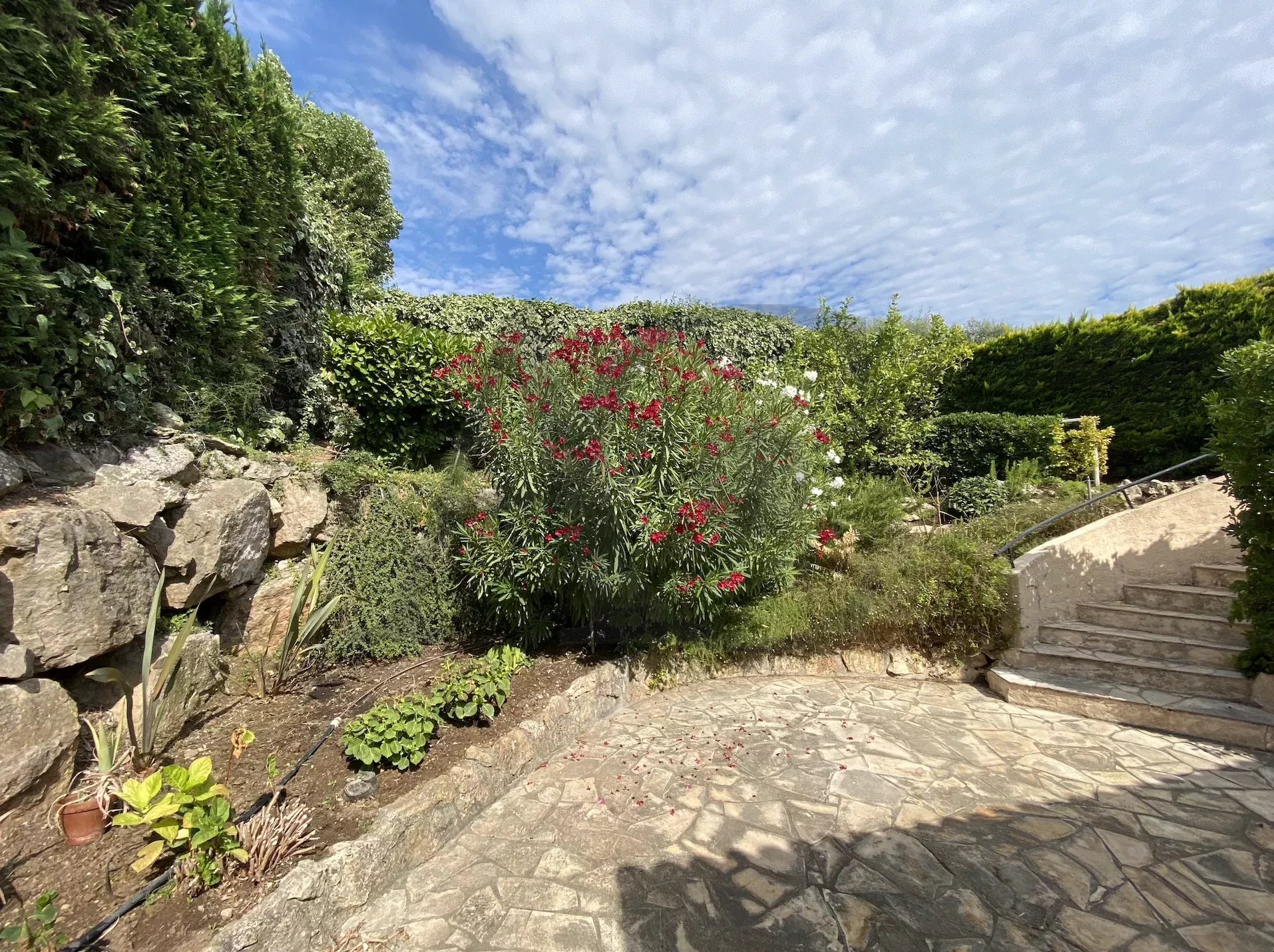 A louer, charmante villa 4 pièces entièrement climatisée. Vue dégagée sur le Cap d'Antibes. -Piscine -Garage -Orientée Sud / Sud Est -3 Chambres