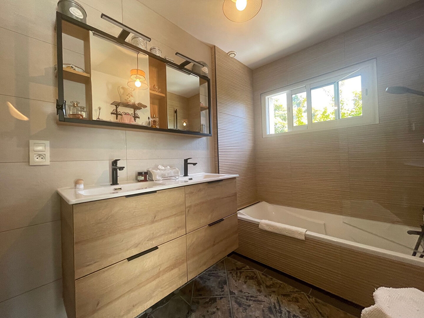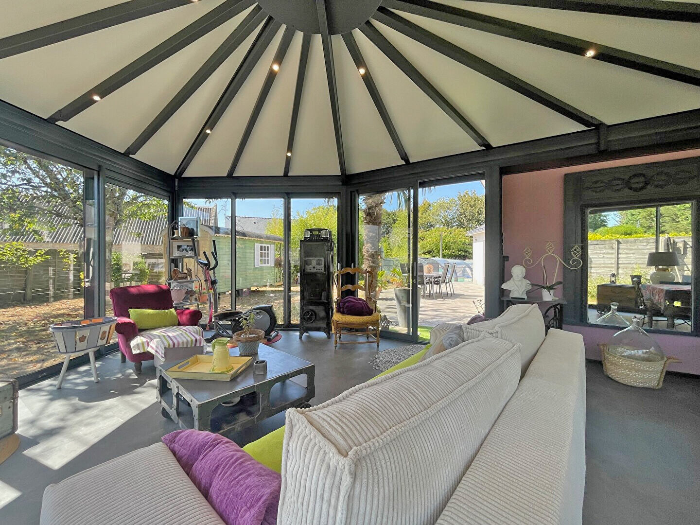 Au calme, dans la campagne de Kervignac, Villadici vous propose en exclusivité cette maison d'architecte de 2004 d'environ 150 m2, complétée par une véranda, une grande terrasse de 100 m2 et une piscine couverte chauffée de 9 x 4 m avec plage enfant. L'ensemble est accompagné de deux carports avec portail électrique, de deux abris de jardin et d'une roulotte en bois, le tout au coeur d'un jardin paysagé par un professionnel. Le rez-de-chaussée comprend une entrée avec vestiaires, un séjour en cathédrale de 40 m2 en triple exposition, une cuisine équipée installée fin 2021, une buanderie avec rangements, un wc avec lave-mains et une suite parentale composée d'une chambre, d'un dressing et d'une salle de bains rénovée fin 2024. Une véranda de 37 m2, réalisée fin 2022, prolonge agréablement les espaces de vie. A l'étage, un dégagement pouvant servir de bureau dessert deux chambres ainsi qu'une salle d'eau avec wc. Cette maison atypique et chaleureuse, parfaitement entretenue, ne nécessite aucun travaux et n'attend plus que sa nouvelle famille. A 5mn de Kervignac, de Nostang et de Merlevenez pour les courses, etc... A 5mn de la voie express A 15mn des plages Les informations sur les risques auxquels ce bien est exposé sont disponibles sur le site Géorisques : https://www.georisques.gouv.fr/ Pour tout renseignement, merci de contacter Thibaud Kempen au 06.07.79.57.38 Agent Commercial Indépendant (E.I) RSAC 523 682 268 (3.96 % honoraires TTC à la charge de l'acquéreur.) THIBAUD KEMPEN (EI) Agent Commercial - Numéro RSAC : 523 682 268 - Quimper.