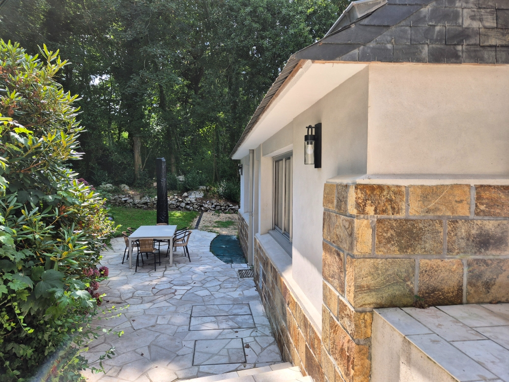 Dans l'un des quartiers les plus prisés de la région brestoise, Villa d'Ici vous présente cette remarquable maison d'architecte conçue dans les années 70 de plus de 300 m² entièrement restaurée, posée sur un parc paysager d'environ 6000 m², avec une vue dégagée à 180° sur la mer. Dès l'entrée, la lumière s'impose naturellement, portée par de larges baies vitrées qui ouvrent la maison sur le jardin, la mer et le ciel. Rénovée avec soin, la maison propose en rez de chaussée un vaste salon-séjour sublimé par une cheminée centrale et une ambiance chaleureuse. La cuisine contemporaine, ouverte sur la salle à manger, prolonge cet esprit de convivialité et de raffinement. Un bureau vitré, parfaitement intégré à l'espace de vie, constitue un environnement de travail ou de lecture inspirant, baigné de lumière et tourné vers la nature. La circulation entre les niveaux est fluide, offrant de belles perspectives entre le rez-de-chaussée et l'étage, avec des lignes épurées et des jeux de vues qui structurent harmonieusement l'espace. La partie nuit se compose d'une chambre en rez de chaussée, suivi de 2 vastes chambres en demi palier disposant chacune de grandes salles d'eau avec accès au jardin. Au premier étage par un bel escalier contemporain en chêne, deux chambres supplémentaires dont une avec dressing et belle vue mer ainsi qu'une salle de bain accueillant famille et invités dans un grand confort. Chaque pièce bénéficie de volumes généreux et d'une luminosité rare. Le jardin arboré, propose une ambiance intime et verdoyante avec accès direct au sentier côtier. un grand sous sol, un double garage ainsi qu'une buanderie et de nombreux rangements complètent les prestations. Un bien rare, au calme absolu, où l'élégance se conjugue à la douceur de vivre en bord de mer, à 10 minutes du centre ville de Brest, 20 minutes de l'aéroport. Contacter Bertrand CLAQUIN au 06.80.87.72.34 Les informations sur les risques auxquels ce bien est exposé sont disponibles sur le site Géorisques : https://www.georisques.gouv.fr (4.08 % honoraires TTC à la charge de l'acquéreur.)