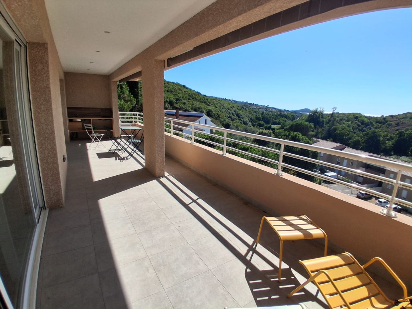Situé sur les hauteurs d'AGOSTA plage, venez découvrir cet appartement en dernier étage privatif d'une petite copropriété.