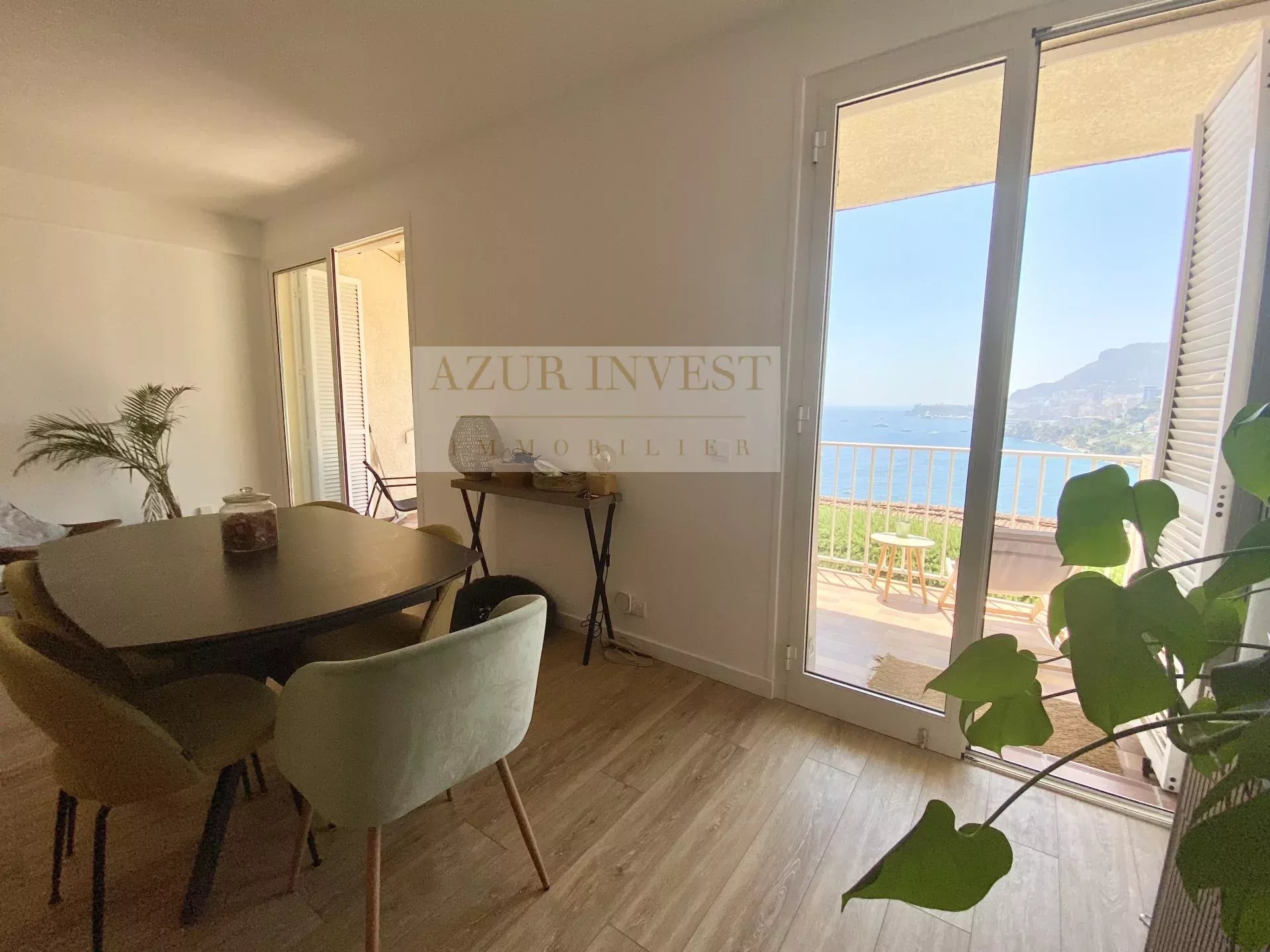 #TROP TARD C'EST VENDU# Votre agence Azur Invest vous propose en exclusivité un appartement 3 pièces de 82m2 avec vue panoramique exceptionnelle sur la mer et la baie de Monaco. Entièrement rénové avec des prestations de qualité, il se compose de : Un séjour lumineux et cuisine Us face mer Deux chambres, deux salle de douches Un dressing aménagé Chaque espace de vie dispose d'une vue mer imprenable dans un cadre privilégié. Large terrasse Accès pédestre sur quelques marches Garage disponible en supplément Un bien rare, idéal pour résidence principale ou pied-à-terre à deux pas de Monaco.