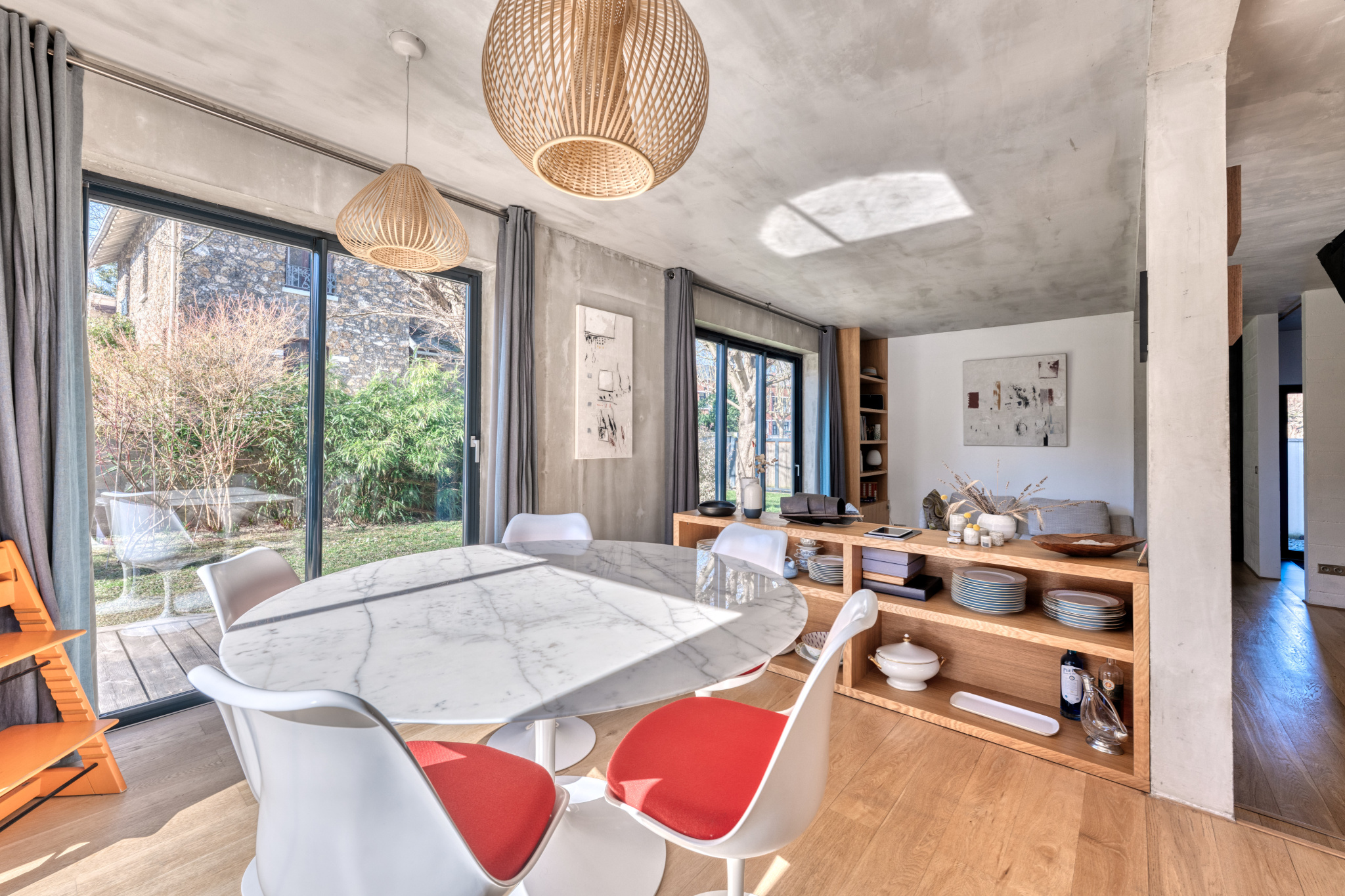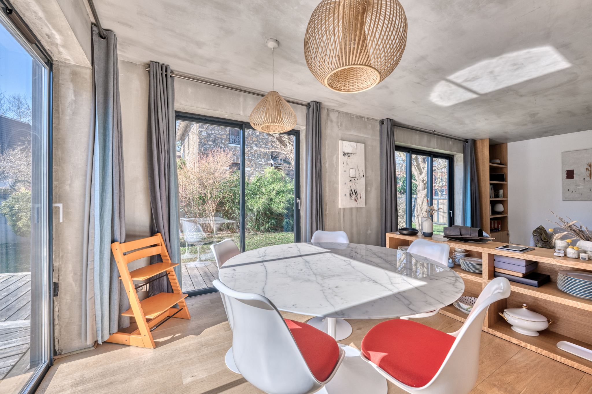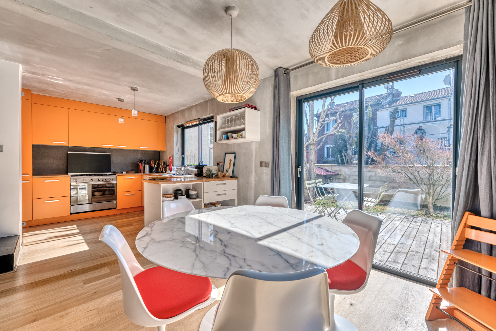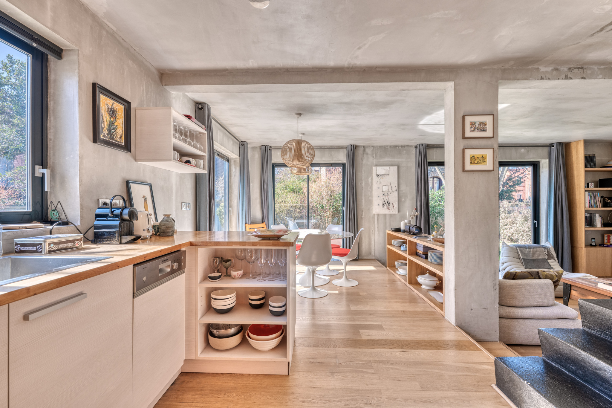 BAGNEUX - LUCIE AUBRAC - Le Cabinet BR Immobilier vous propose cette SUBLIME MAISON D'ARCHITECTE EN PARFAIT ÉTAT construite en 2014 d'une surface de 165m2 sur TROIS NIVEAUX avec deux terrasses, entourée d'un JARDIN ARBORÉ de 300m2. Elle se compose au rez-de-chaussée : d'une ENTRÉE accédant à un cellier/buanderie, d'un GRAND SÉJOUR CONFORTABLE et LUMINEUX avec CUISINE ÉQUIPÉE, et d'une SALLE À MANGER, le tout dans un GRAND ESPACE OUVERT de 60m2 entouré de baies vitrées (double vitrage) donnant sur UNE PREMIÈRE TERRASSE de 20/25m2 et LE JARDIN AUX ESSENCES MULTIPLES (tilleul, marronnier, acacia...). Au premier étage, le palier déssert 3 CHAMBRES, UNE SALLE D'EAU avec WC et UNE SALLE DE BAIN AVEC WC. Un deuxième escalier mène au dernier étage, réservé à la SUITE PARENTALE de 45m2 composée d'une GRANDE CHAMBRE donnant sur une BELLE TERRASSE de 16,5m2, précédée d'une pièce salon, d'un beau dressing et d'une salle d'eau avec WC. L'ensemble de la maison n'oppose aucune perte d'espace. Chauffage au sol. DPE C. Taxe foncière 3500 euros. Facture annuelle Gaz et électricité 2200 euros. Deux places de parking complètent ce bien. A 7 minutes à pied du métro Lucie Aubrac (Ligne 4) et de la station de RER Bagneux (Ligne B). Nombreux commerces à quelques centaines de mètres. A visiter sans tarder.