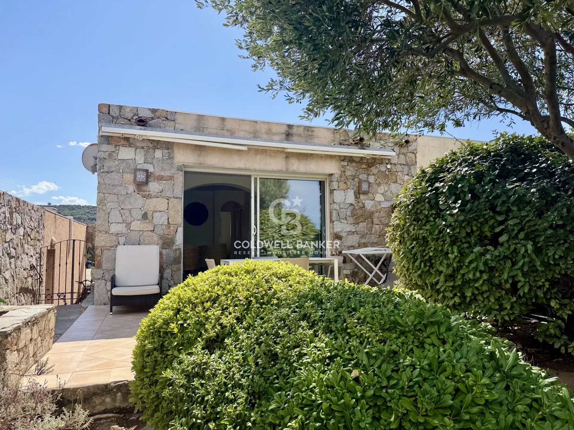 D’une surface habitable d’environ 48,45 m², ce bien dispose d’une entrée indépendante, d’une terrasse d’environ 30 m² et d’un jardin d’environ 120 m², sans aucun vis-à-vis, offrant une vue dégagée sur la mer et les montagnes. Véritable espace de vie extérieur, la terrasse est idéale pour les repas ou les moments de détente face au maquis, tandis que le jardin soigneusement aménagé apporte verdure et intimité.