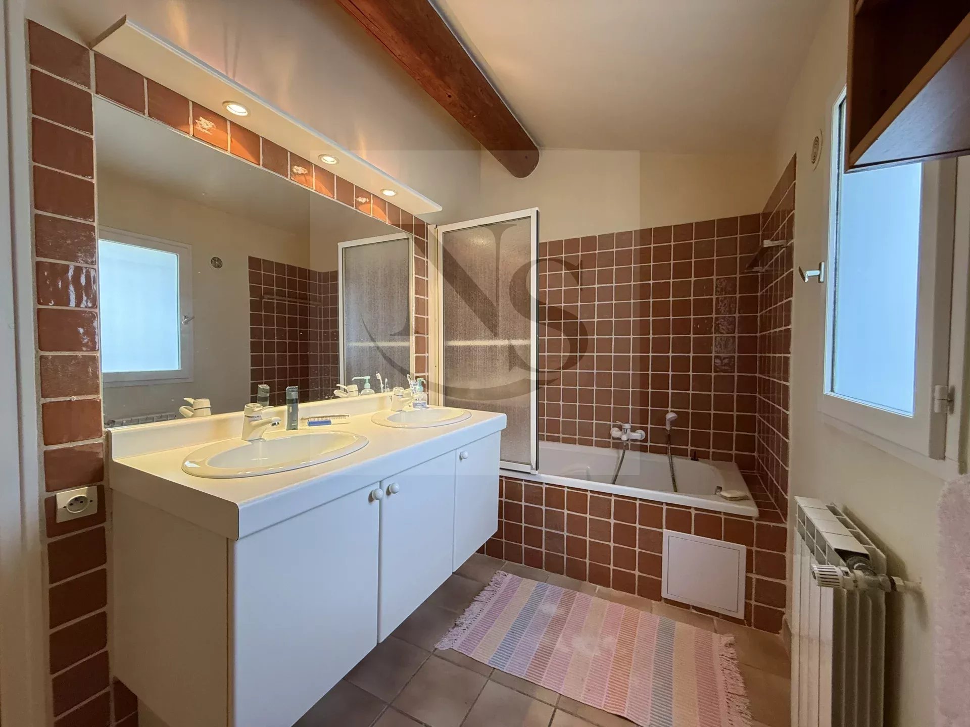Maison familiale d’environ 160 m² sur un terrain de 286 m² dans résidence intimiste et sécurisée, au calme et orientée Sud. Au rez-de-chaussée : un grand séjour de 35 m² avec cuisine ouverte 8,5 m², un cellier/buanderie et un WC. Le garage a été transformé en studio de plain-pied avec cuisine et salle d’eau/WC, accessible de manière indépendante. À l’étage : quatre chambres de 12, 13, 12 et 22 m², une salle de bains double vasque et un WC séparé (au total : 2 salles de bains + 1 salle d’eau, 3 WC). La maison est à rafraîchir, dispose d’un chauffage individuel au gaz, de fenêtres double vitrage, de la fibre et du tout-à-l’égout. Commerces et bus sont à proximité. Environnement très calme et sécurisé, idéale pour une famille, avec la souplesse du studio indépendant (télétravail, ado, parent, revenu ponctuel). Possibilité d’acheter un garage en sus.