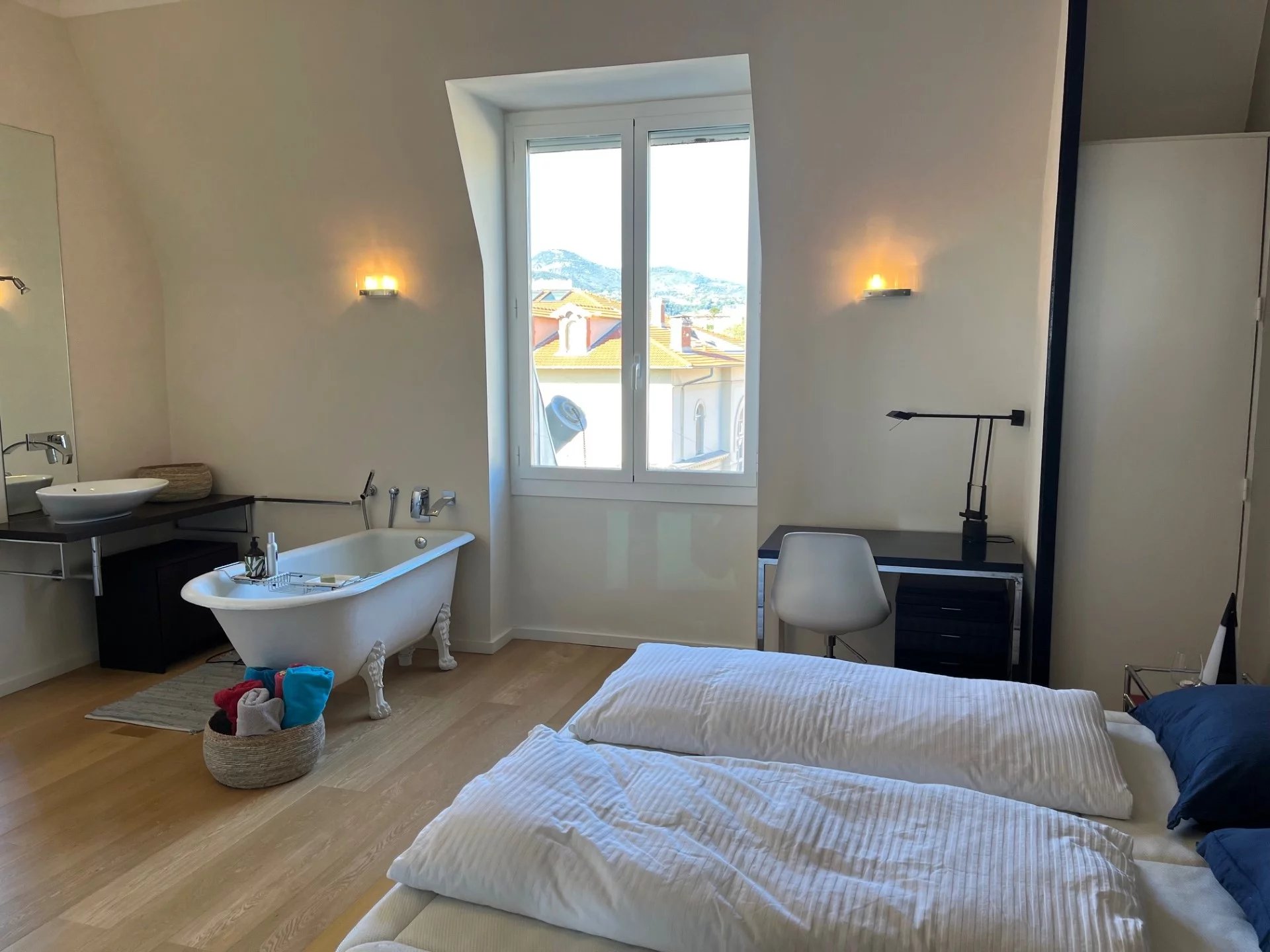 Dans un somptueux Palace bourgeois dominant la ville et la mer, au dernier étage, découvrez ce magnifique appartement contemporain exposé plein Sud avec une vue mer exceptionnelle. Il se compose d’une vaste pièce de vie baignée de lumière avec cuisine équipée et aménagée ouverte sur le séjour, d’une grande salle d’eau, ainsi que de deux belles chambres avec rangements, dont une suite avec salle de bain ouverte. Une cave vient compléter ce bien. Stationnement collectif au sein de la copropriété. Possibilité d’acquérir le bien meublé en option. Adresse prestigieuse, cadre unique : idéal en résidence principale comme en pied-à-terre d’exception.