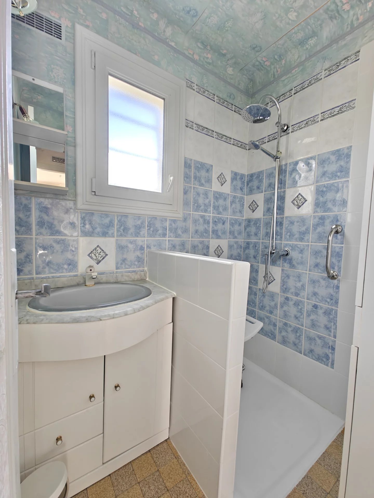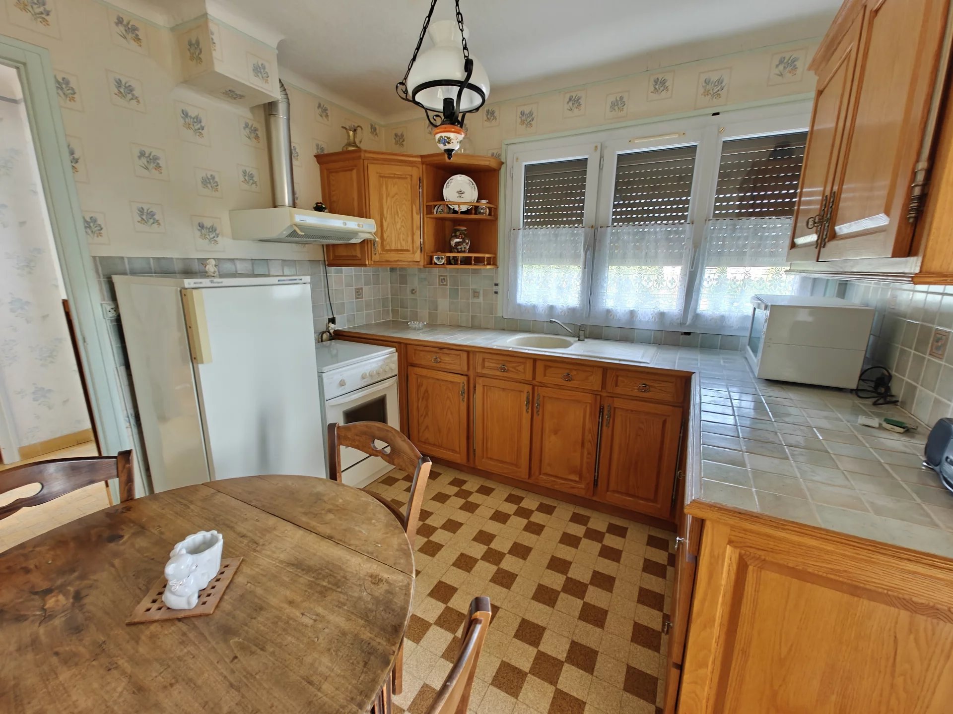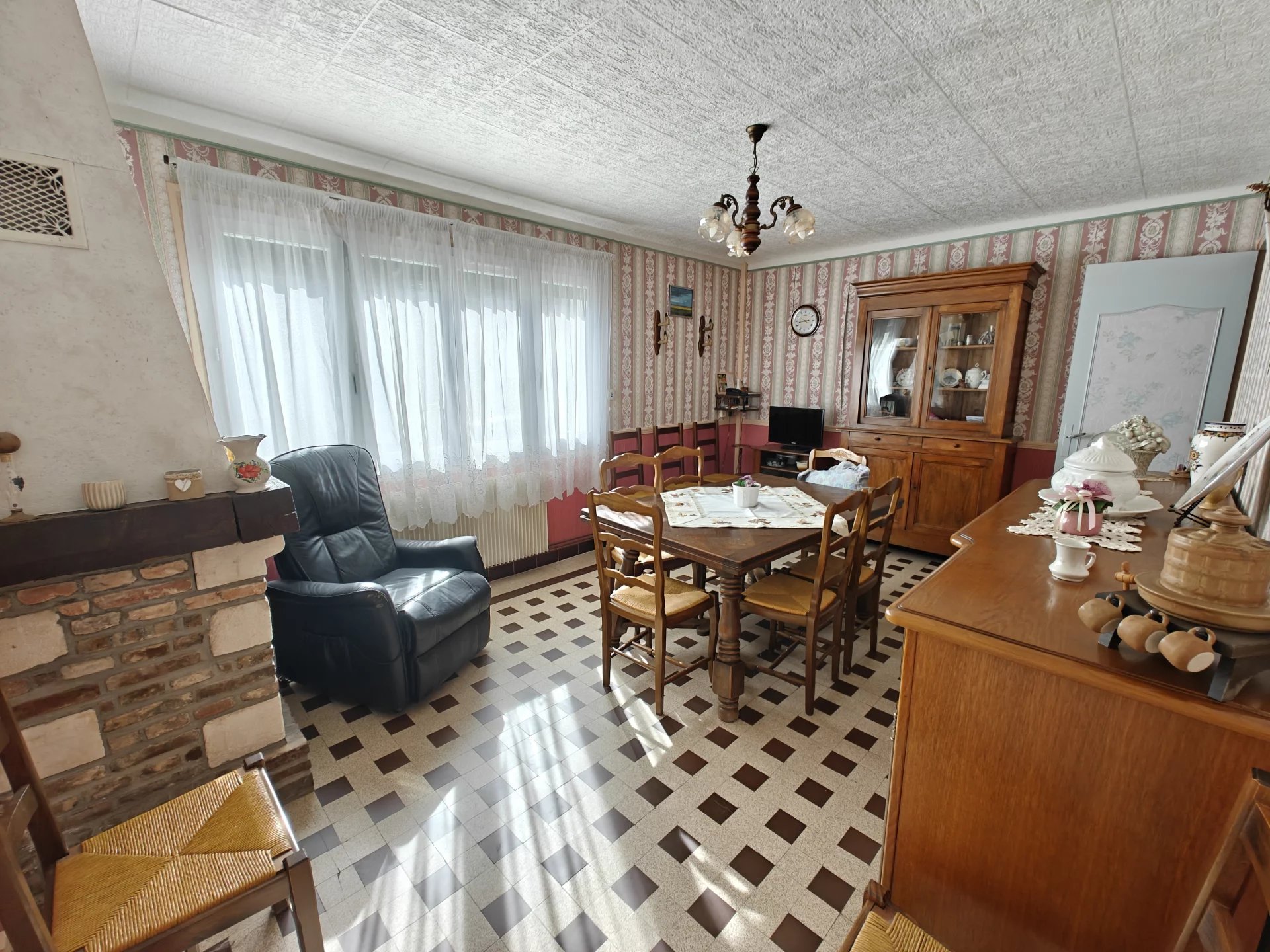 Maison sur sous-sol proche du centre de Brionne : Venez découvrir une entrée qui va desservir une cuisine, salon/séjour avec cheminée insert, une chambre, une bureau/chambre d'enfant, salle de douche, WC. Sous-sol : garage, cave et chaufferie. Terrain de 530m². PVC double vitrage, volets roulants électriques, tout à l'égout, chauffage gaz de ville, isolation extérieur. Construction type fin 50, début 60.