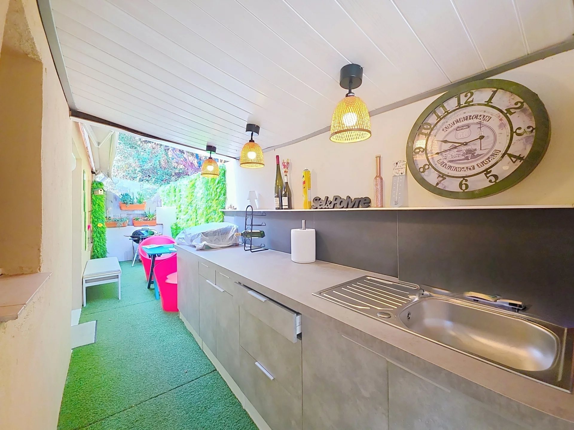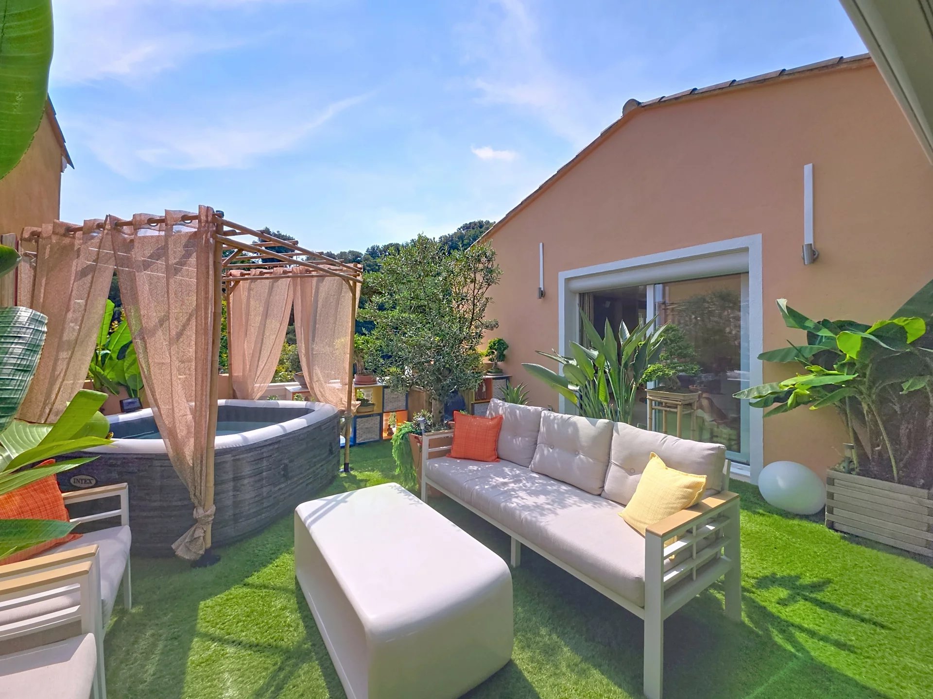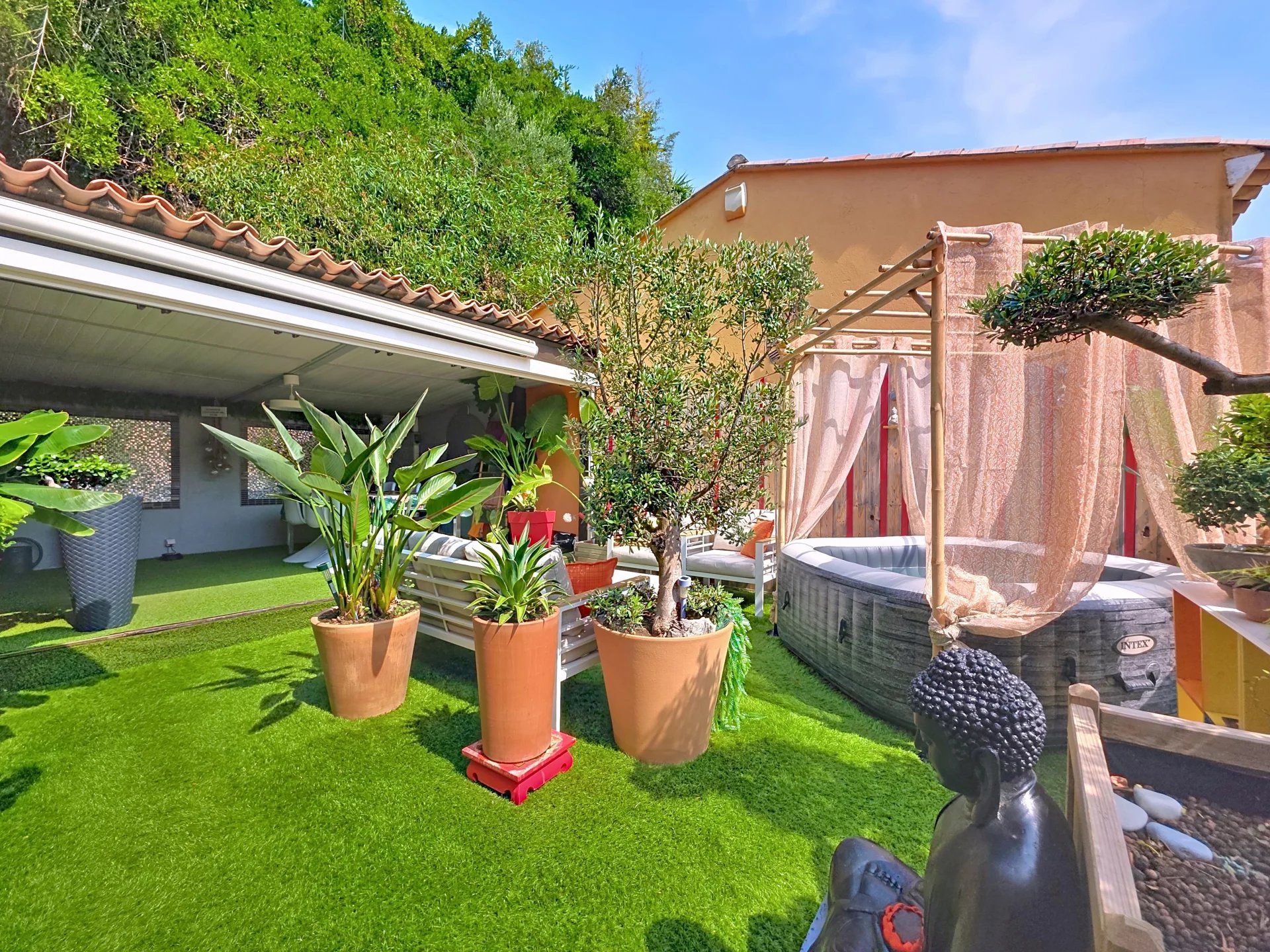 Idéalement située à proximité immédiate des commerces, écoles et transports, cette propriété offre un cadre de vie confortable et moderne avec son terrain arboré de 360 m² pour savourer de la douceur de la Côte d’Azur tout au long de l’année. Dès l’entrée, vous découvrirez une belle distribution des espaces. Le rez-de-chaussée se compose notamment de plusieurs chambres dont une suite parentale, ainsi que d’une salle d’eau fonctionnelle et d’un cellier. À l’étage, un vaste séjour/cuisine de plus de 49 m² constitue le cœur de la maison. Lumineux et convivial, il bénéficie de prestations haut de gamme et s’ouvre sur une superbe terrasse de 55 m². Cet espace extérieur, parfaitement aménagé et à l’abri des regards, propose une cuisine d’été, un jacuzzi et un espace couvert, permettant de profiter pleinement de chaque saison. Côté nuit, la maison dispose de trois chambres confortables, offrant des surfaces généreuses et adaptées à une vie de famille. Un garage fermé, une place de stationnement supplémentaire ainsi qu’une cave viennent compléter ce bien rare sur le secteur. Une adresse privilégiée, des volumes généreux et des prestations de standing font de cette maison une véritable opportunité à Vallauris