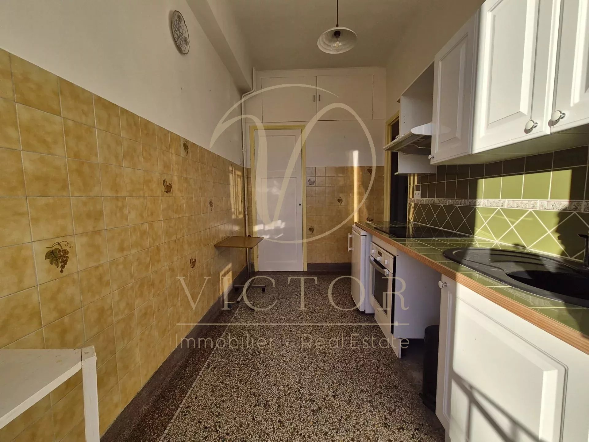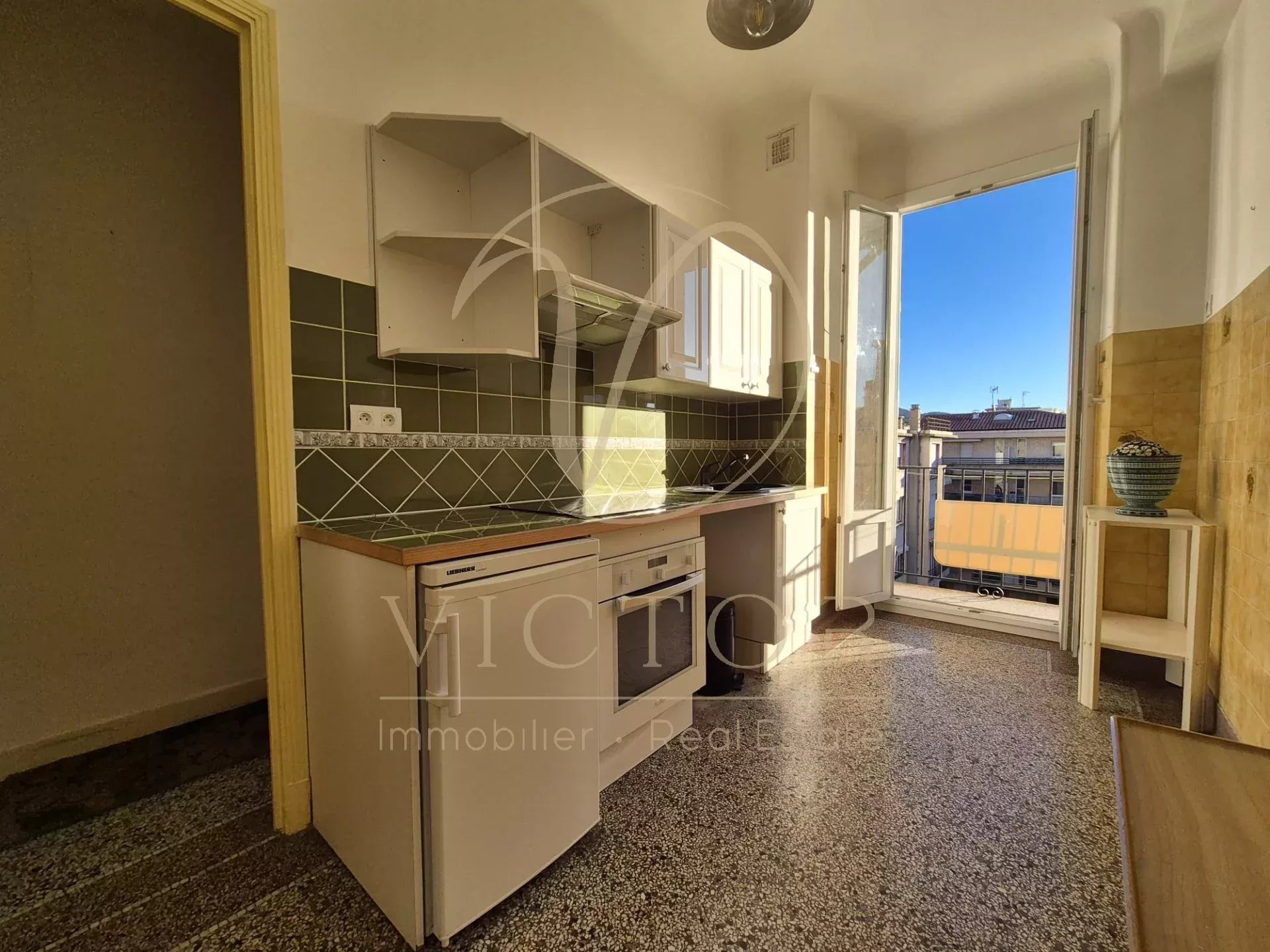 Dans un immeuble ART-DÉCO avec ascenseur. 2p de 50m² au 5ème étage, traversant EST/OUEST, balcon sur cour avec vue dégagée. Composé d'une entrée, un séjour, une chambre coté cour, une cuisine indépendante avec balcon (possibilité US), une salle d'eau avec fenêtre, WC indépendant avec fenêtre. Appartement à remettre au gout du jour, fenêtre en double vitrage, Electricité refaite. Plages à 5 min à pieds. Honoraires d'agence à la charge du vendeur - Les informations sur les risques auxquels ce bien est exposé sont disponibles sur le site Géorisques : georisques.gouv.fr