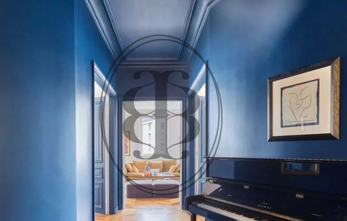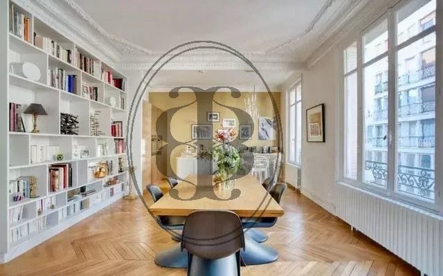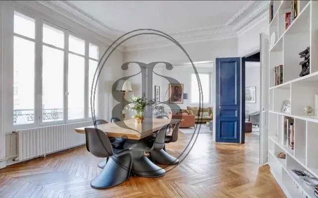 Nous vous proposons un très bel appartement d’angle, de 163m², avec des vues dégagées et bénéficiant d’une très belle luminosité avec une exposition sud-est. Ce bien a été récemment refait avec des prestations haut de gamme. Tout le charme de l'ancien a été conservé: parquet en pointe de Hongrie, moulures, 3,20m de hauteur sous plafond, ainsi qu'un vitrail d'époque restauré dans l'entrée. Cet appartement au plan étoile s'ouvre sur une entrée desservant un double séjour doté d’une grande bibliothèque, une cuisine ouverte et spacieuse avec un ilot central et un bar dinatoire. Un joli couloir, bleu profond, vous conduit vers trois belles chambres disposant toutes d'un espace bureau, d’une salle de bains, d’une salle d’eau avec douche et d’un WC. Un dressing, une penderie, une buanderie et de nombreux rangements complètent ce bien. Une double cave, saine et aménagée, de 18m² est vendue avec le bien. Produit coup de cœur à voir absolument !