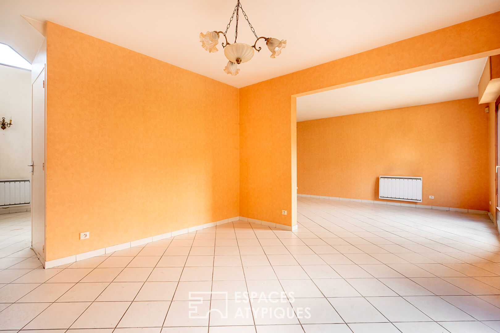 Cette maison des années 1990 de 139 m² est située dans le quartier Thiers au Raincy, commune prisée de la Seine-Saint-Denis. Elle prend place dans un écrin de verdure, à l'abri des regards, au coeur d'une voie privée sur une parcelle végétalisée de 452 m². Dès l'entrée, le hall cathédral baigné de lumière zénithale dégage une impression de grandeur grâce à sa remarquable hauteur sous plafond. Le double séjour traversant de 40 m² ouvre sur une terrasse orientée Sud-Ouest grâce à deux portes fenêtres. Dans le prolongement, une cuisine dînatoire indépendante profite également d'un accès sur l'extérieur. Une chambre ainsi qu'une salle d'eau avec WC complètent ce niveau. L'escalier, paré d'un garde-corps en chêne massif, mène à l'étage. Une pièce palière de belle surface propice à l'aménagement d'un bureau distribue trois chambres, une salle de bains ainsi qu'un WC indépendant. Le sous-sol offre un stationnement pour deux véhicules, un espace buanderie ainsi qu'une vaste pièce modulable au gré des envies. Un portail électrique et un portillon équipé d'un digicode et d'un interphone assurent un accès sécurisé à la copropriété. Les multiples ouvrants, le calme, les volumes généreux et l'emplacement privilégié rendent cette maison familiale unique et propice à recevoir. Des travaux d'aménagements et d'embellissements sont à prévoir. Bien soumis au statut de la copropriété bénéficiant de faibles charges. RER E : Le Raincy à 1,5 km Bus 605 : à 400 mètres École maternelle et primaire Thiers à 340m Collège Jean-Baptiste Corot à 700m Lycée Albert Schweitzer à 900m CLASSE ENERGIE : D/ CLASSE CLIMAT : B Montant moyen estimé des dépenses annuelles d'énergie pour un usage standard, indexées aux années 2021, 2022, 2023 : entre 2480 euros et 3400 euros (abonnement compris) Les informations sur les risques auxquels ce bien est exposé sont disponibles sur le site Géorisques : https://www.georisques.gouv.fr Contact : Nathalie 06 18 77 30 26 RSAC : 908 437 460 Bobigny (5.00 % honoraires TTC à la charge de l'acquéreur.) Copropriété de 4 lots - dont 4 lots habitation. (Pas de procédure en cours). Charges annuelles : 400 euros. Nathalie GUILLOT (EI) Agent Commercial - Numéro RSAC : 908437460 - Bobigny.