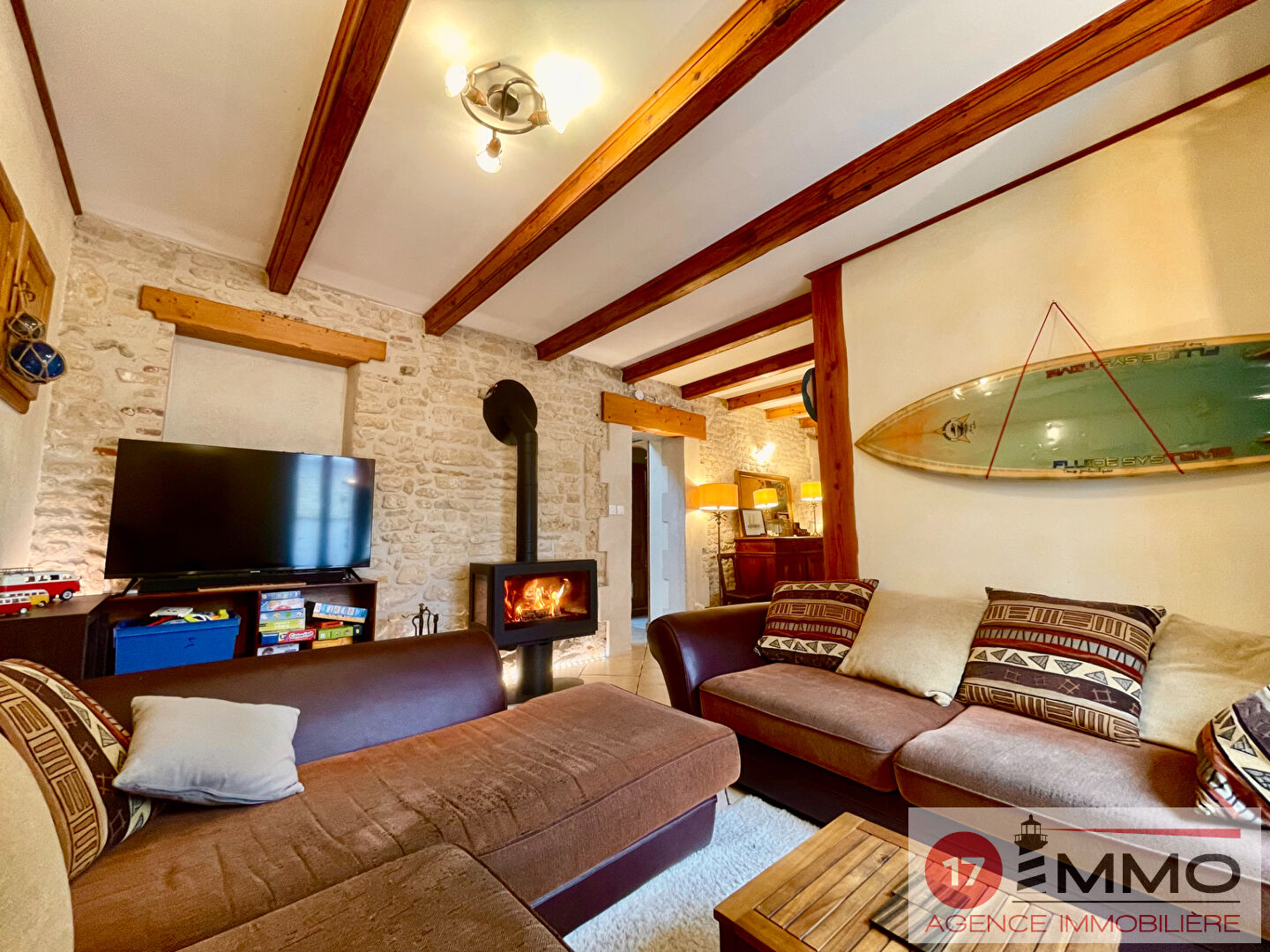 Amoureux de la pierre, venez découvrir cette maison centre bourg, comprenant au RDC, un salon cosy avec un poêle à bois, une salle à manger, une cuisine , une buanderie, un salle de bain, un WC et une chambre. A l'étage, 2 chambres spacieuses, un WC et un grand palier avec espace détente. Le bien se situe au calme, proche des écoles et des commodités, à seulement 5 km des plages de Châtelaillon. Dans le cadre d'un projet locatif, loyer possible environ 1100 euros /mois. Contacter Sandrine Brisset (EI) au 0668787875 Agent commercial inscrit au RSAC de La Rochelle sous le numéro 899 975 106 Les informations sur les risques auxquels ce bien est exposé sont disponibles sur le site Géorisques : www.georisques.gouv.fr" (4.76 % honoraires TTC à la charge de l'acquéreur.)