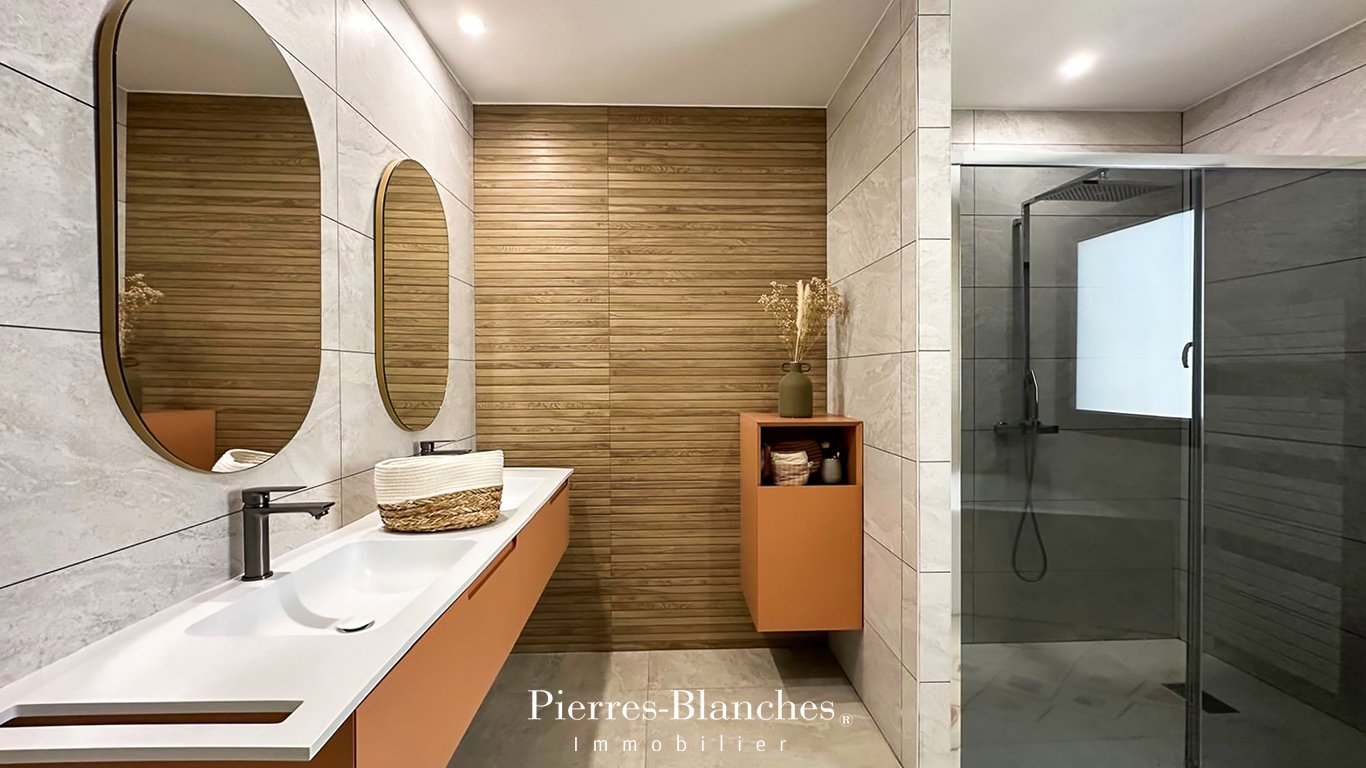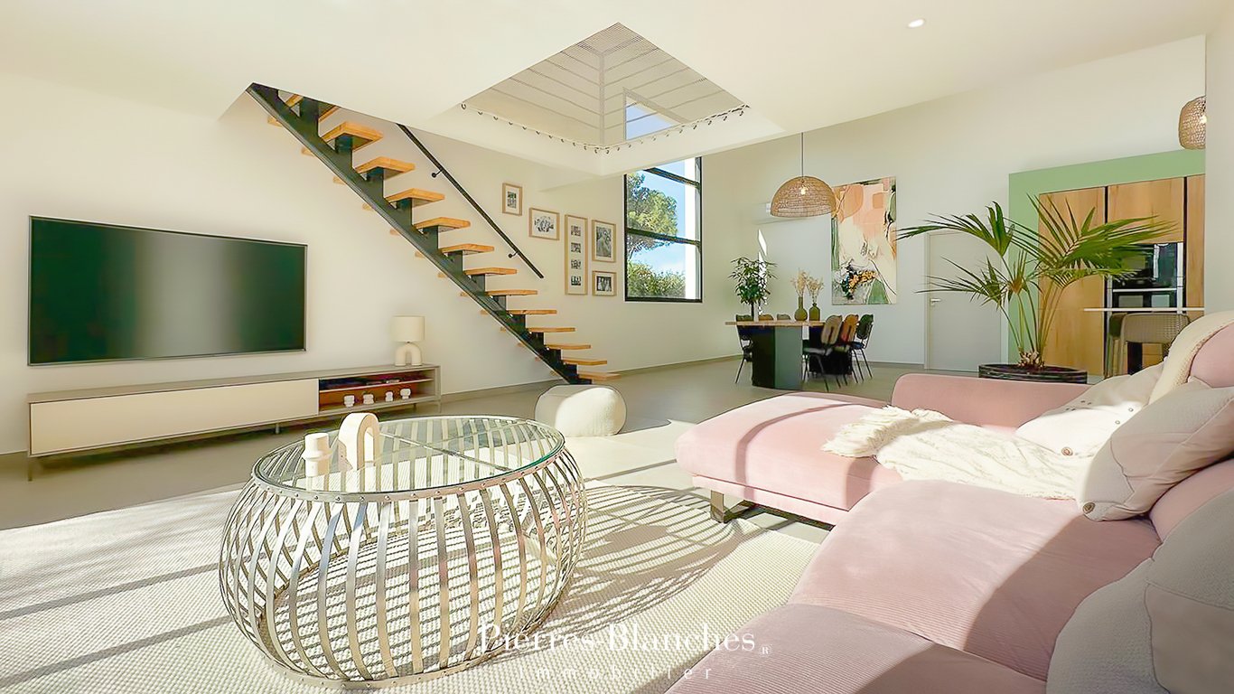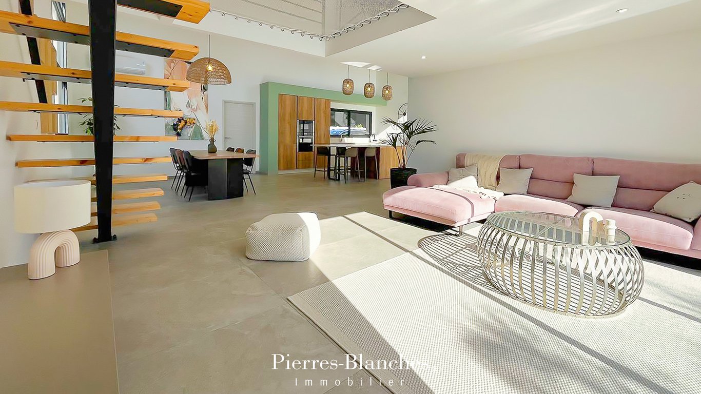 PIERRES-BLANCHES IMMOBILIER - L'EXPRESSION DU LUXE Béziers - PBI Crush Dans l'un des quartiers les plus prisés de Béziers, cette villa bâtie en 2022 incarne la douceur moderne et le confort optimisé. Conçue avec un soin particulier pour répondre aux exigences d'aujourd'hui, elle associe des lignes contemporaines pour s'intégrer parfaitement à son environnement. Avec une superficie généreuse de plus de 163 m², ce lieu de vie édifié sur un terrain de 1049 m² s'élève sur un étage. Ce lieu de vie dégage une énergie urbaine cependant très en lien avec la nature. Cette villa nous offre de vastes espaces de vie agréables où les lignes épurées et les espaces lumineux mettent en valeur chaque détail de sa conception. Dès l'entrée par une large porte en bois, la pièce de vie nous accueille, baignée de lumière grâce aux larges baies vitrées ouvrant sur une terrasse orientée au Sud nous offrant dans son prolongement un accès direct vers les extérieurs soigneusement agencés. Le séjour, augmenté grâce à une hauteur sous plafond significative, s'inonde de lumière naturelle grâce aux baies vitrées panoramiques. L'ensemble allonge son périmètre carré vers la terrasse, nous révélant le jardin paysagé à l'entretien aisé. La cuisine en open space se distingue par sa fusion harmonieuse entre le charme du bois et des éléments contemporains raffinés. Elle allie la chaleur du bois à la sobriété minérale et crée un équilibre visuel incontestable. Parée d'un îlot central, cet espace animera le registre culinaire des retrouvailles familiales et amicales. L'autre aile de l'habitation nous mène vers l'espace de repos comportant trois chambres, dont une suite parentale avec salle d'eau privée et dressing. Chaque chambre spacieuse, est agencée avec soin pour assurer confort et intimité. La force imposée par la structure aérienne et moderne de l'escalier à limon central attire notre curiosité. Nous découvrons un espace bureau lumineux et confortable depuis la mezzanine. Le contraste entre les matériaux contemporains et les éléments naturels confère à l'espace une esthétique unique et intemporelle. À présent, parcourons les extérieurs paysagés qui s'étirent sur sensiblement 600 m². Entre les résineux et les différentes variétés de palmiers, le soleil enflamme la blancheur éclatante de la façade. Agrémenté d'une piscine cernée par une terrasse carrelée, nous profitons de cet environnement composé d'une nature verte, minérale et omniprésente. Le Plus : Un garage aménagé laisse place à la buanderie et à une mezzanine dédiée au rangement, ce qui optimise la fonctionnalité du lieu. Le portail automatisé permet d'allier discrétion et confort, il est le gardien de l'espace privatif pouvant accueillir six véhicules. Un espace de stationnement extérieur pour quatre véhicules supplémentaires. Piscine sécurisée. La cuisine d'été équipée, ombragée et spacieuse, permettra de prolonger la belle saison en proposant un mode de vie méditerranéen. L'emplacement stratégique nous permet de bénéficier d'un accès direct vers le centre historique de Béziers. Notre Avis : Lovely Home ® Dans la conception de cette habitation, les espaces clos dans lesquels chacun pourra trouver son intimité alternent avec les pièces à ciel ouvert afin de bénéficier d'une vie inside and out où le soleil méditerranéen a définitivement pris sa place de protagoniste. "Une Vision Authentique et Contemporaine de l'Immobilier de Luxe." Franck Ballester ® TOUTE INSPIRATION, MODIFICATION, REPRODUCTION EST INTERDIT - REGISTERED TRADEMARK Dossier sur références Contact +33 (0)4 67 70 07 87