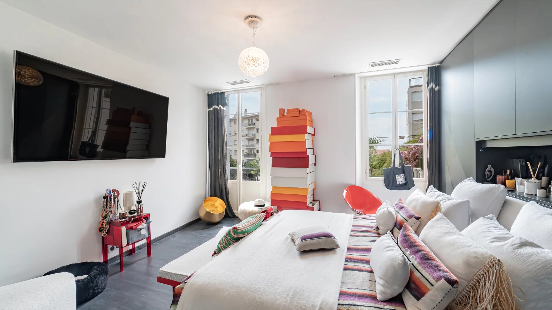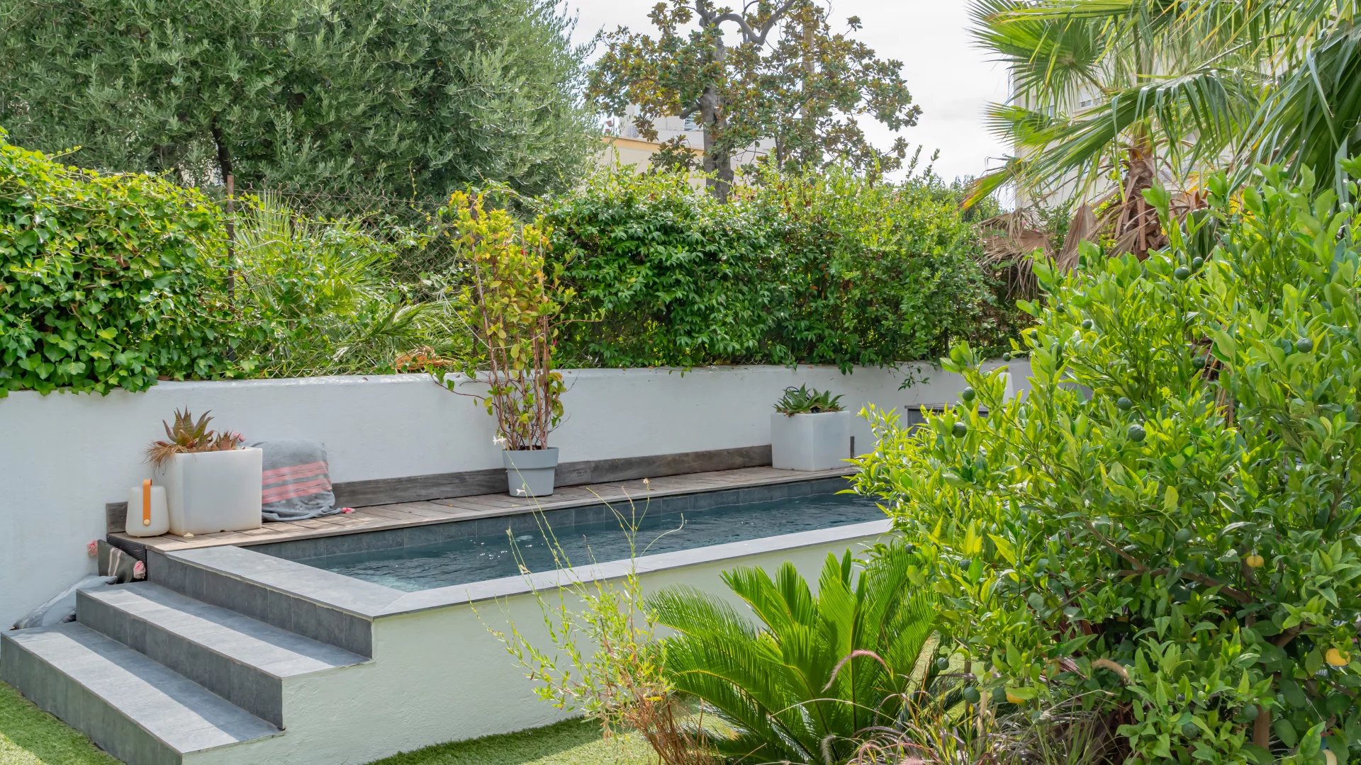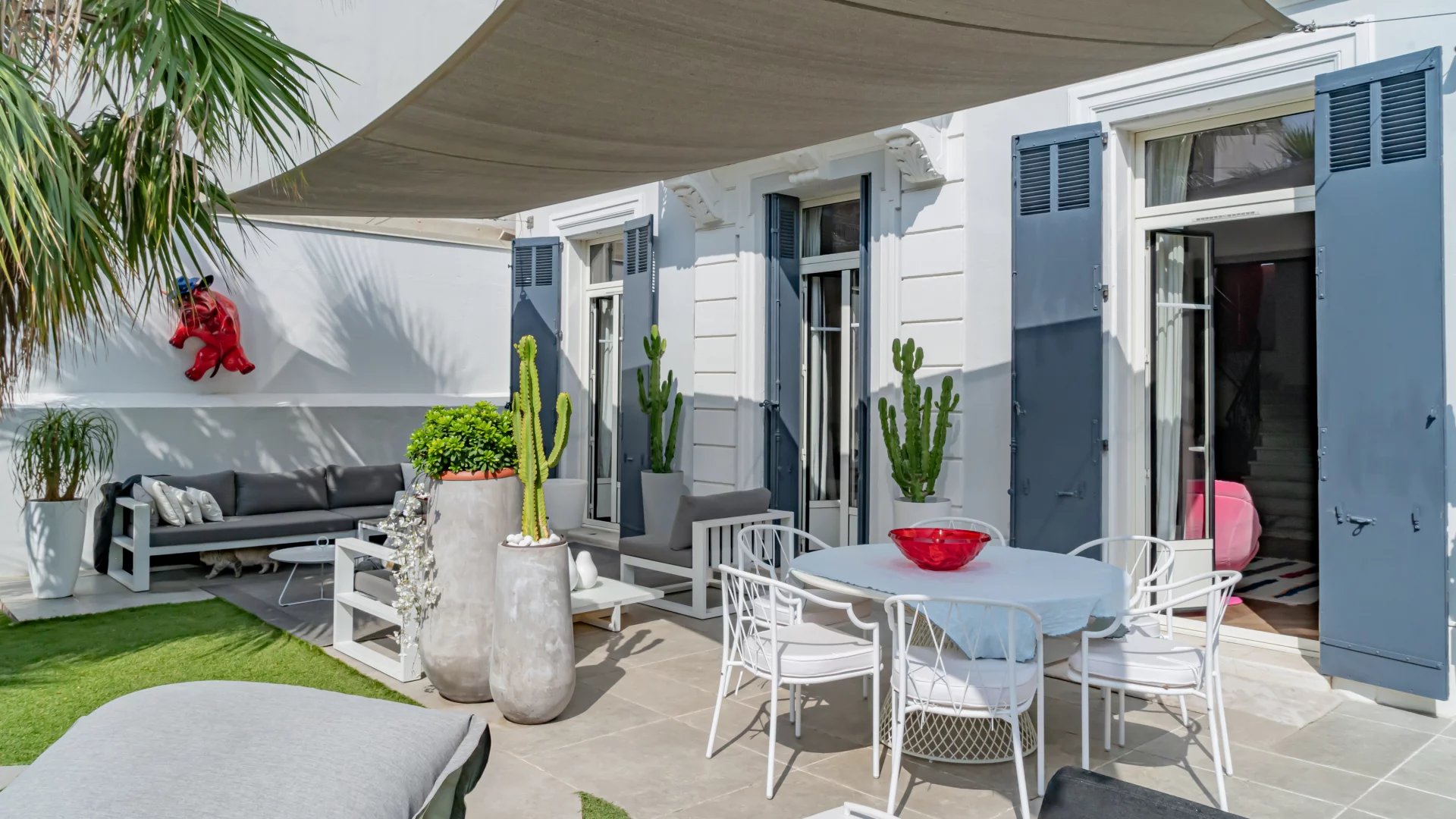A 5 mn à pieds de la rue d'Antibes dans un secteur calme Belle villa Bourgeoise ou à été effectué une belle rénovation complète avec de matériaux de qualités d'une surface de 170 m² avec une belle terrasse joliment décorée et ensoleillée arborée avec un joli coin détente avec une petite piscine .