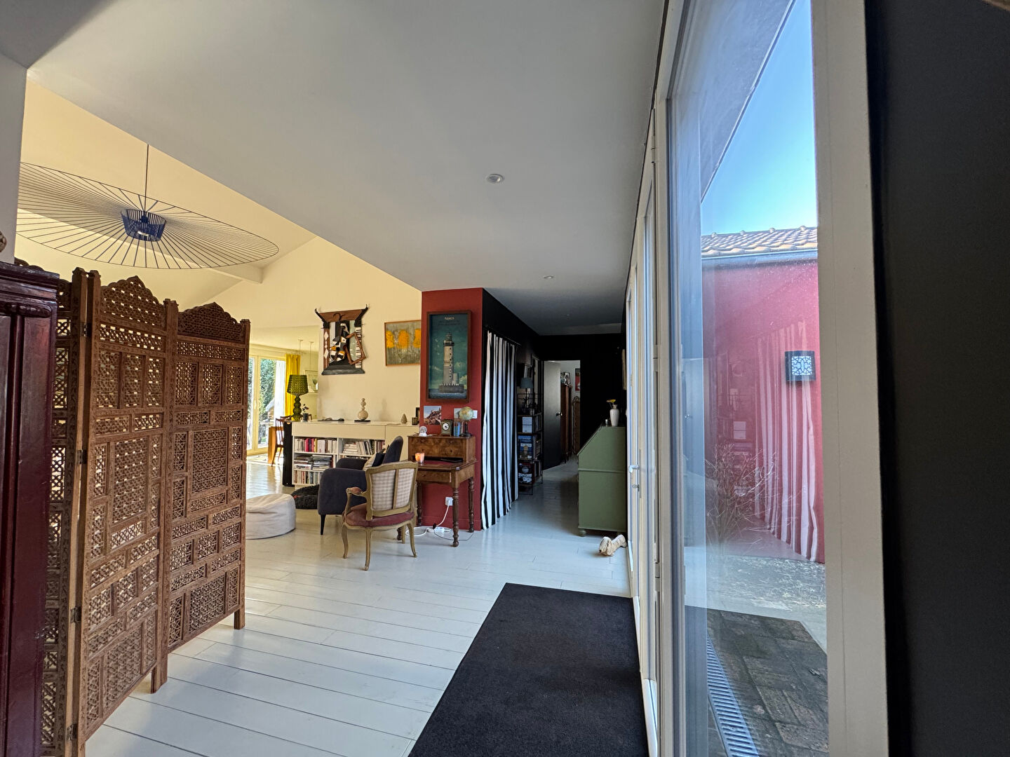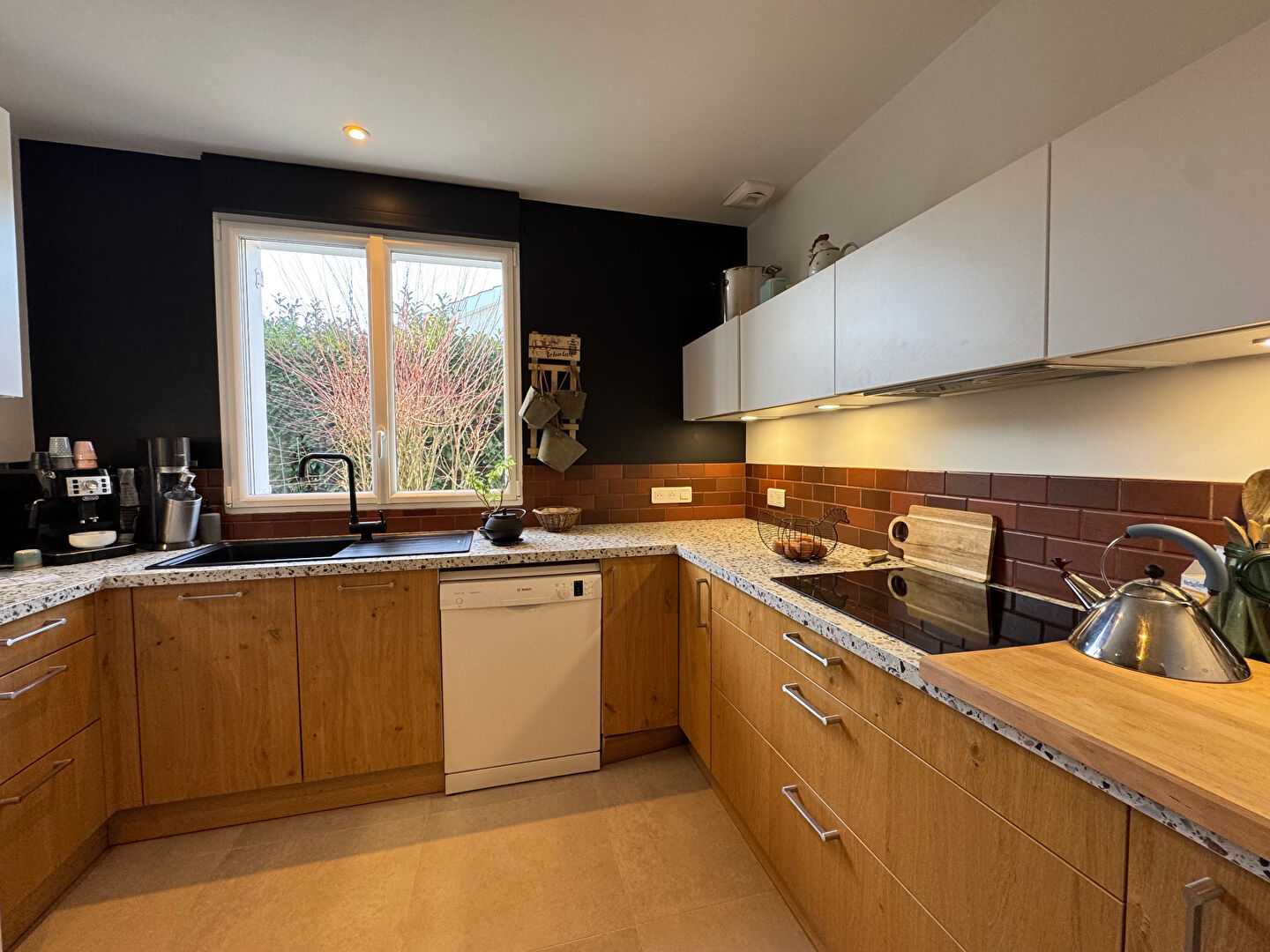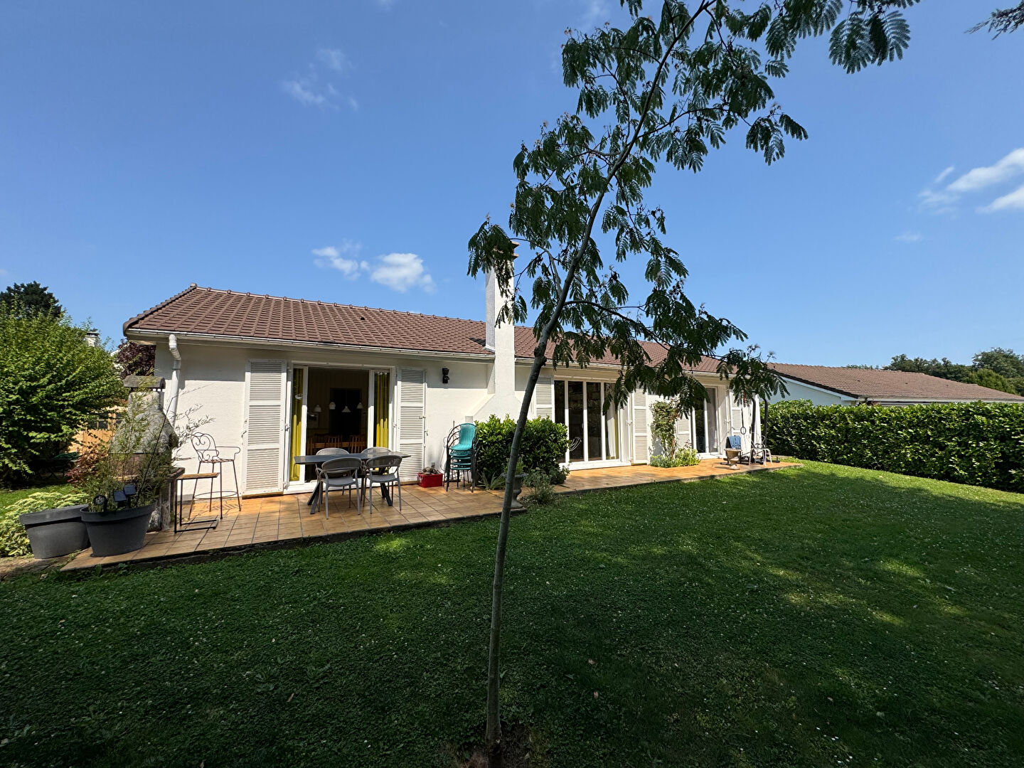 Rare dans cet état de présentation. Bien située à proximité du centre village, des écoles, et des ramassages scolaires, cette maison, conçue de plain-pied autour d'un charmant patio, a bénéficié d'importants travaux en 2022 : Menuiseries extérieures, cuisine, salles d'eau, chaudière et circuits de chauffage, toiture et isolation, cave hélicoïdale, . . . 169 m² habitables + patio / 232 m² utiles. Bon emplacement dans la résidence. Exposition sud -ouest pour le salon, et la suite parentale. (4.99 % honoraires TTC à la charge de l'acquéreur.)