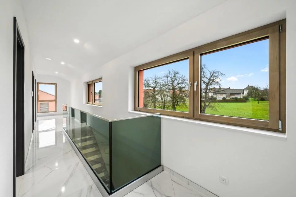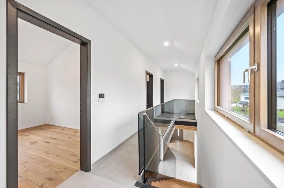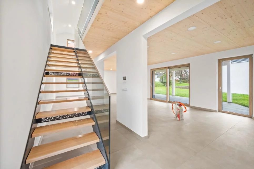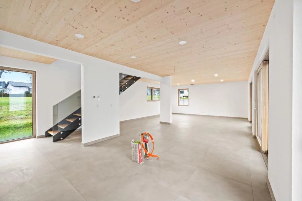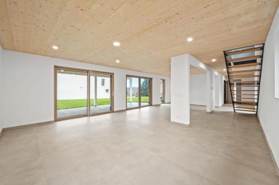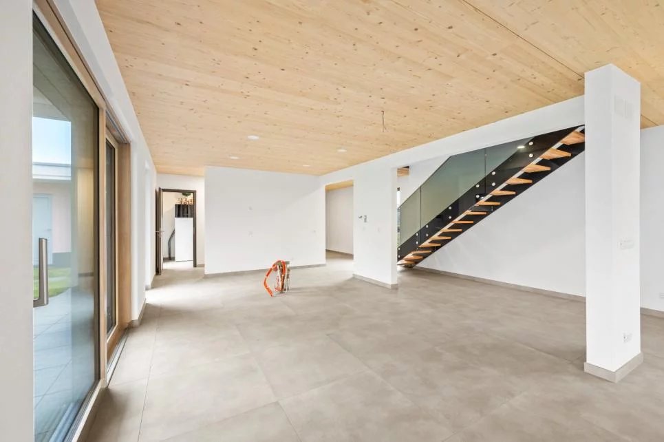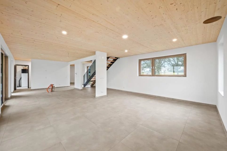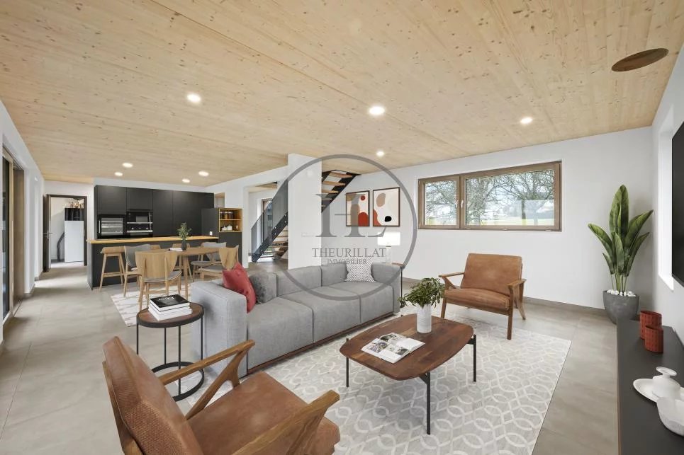 - Espace de vie principal : 60 m² comprenant une cuisine ouverte sur le salon et la salle à manger, avec de grandes baies vitrées donnant accès à une terrasse couverte de 23,4 m².