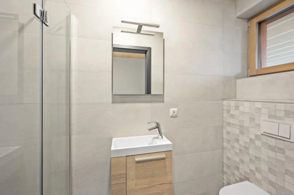 - Salle d’eau : 2,6 m² (douche, lavabo, WC)