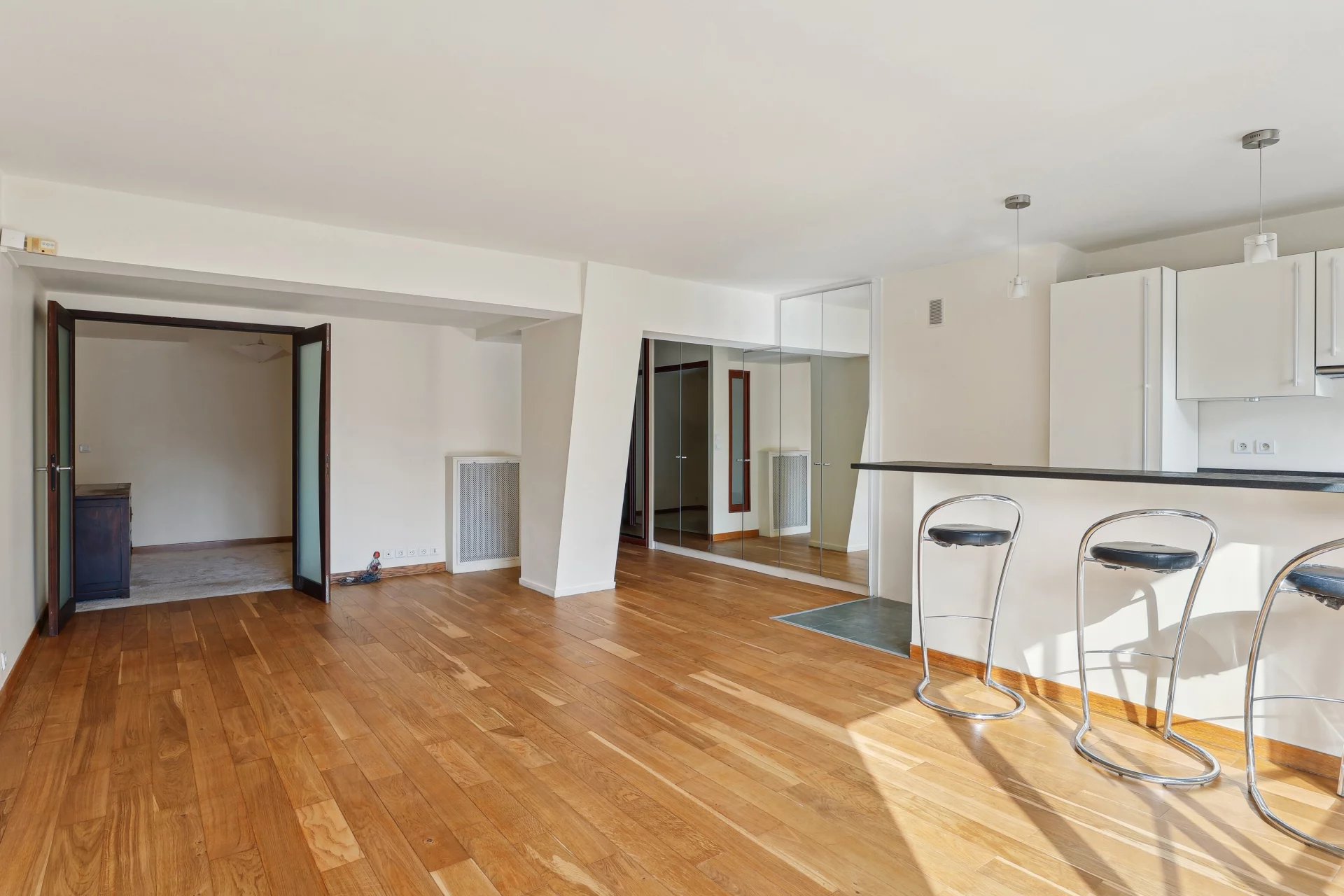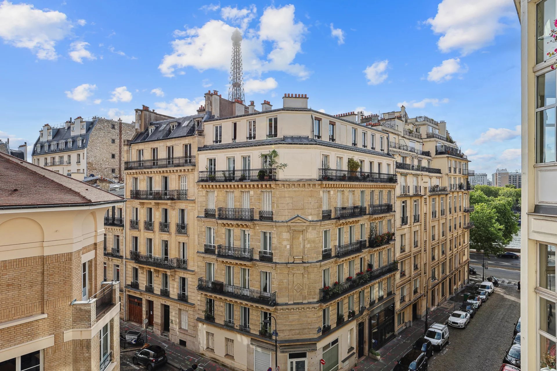 Paris 16 - Dans un immeuble semi récent, avec une vue panoramique sur la tour Eiffel, au 4eme étage avec ascenseur, superbe appartement de 69 m2 bénéficiant d'une vue totalement dégagée.
