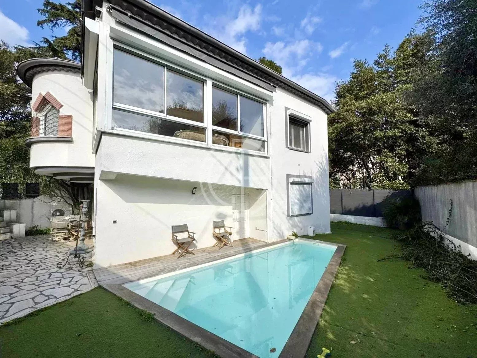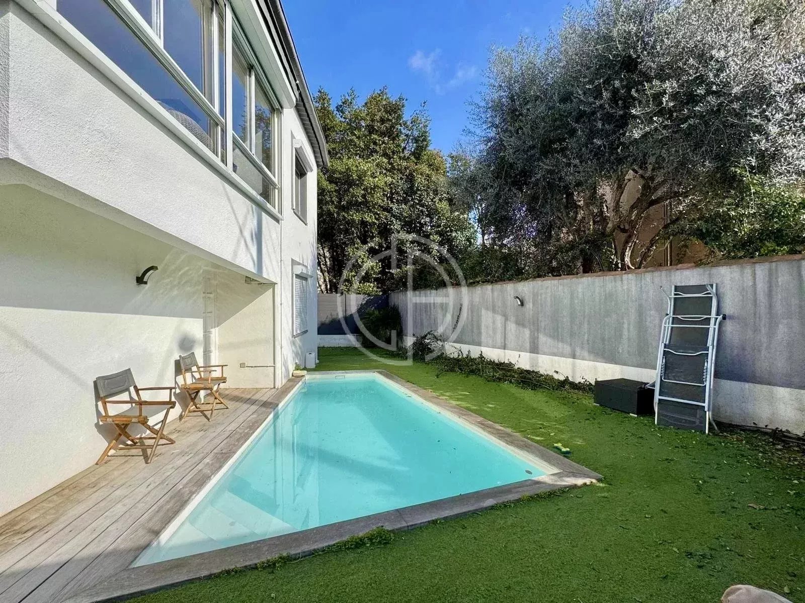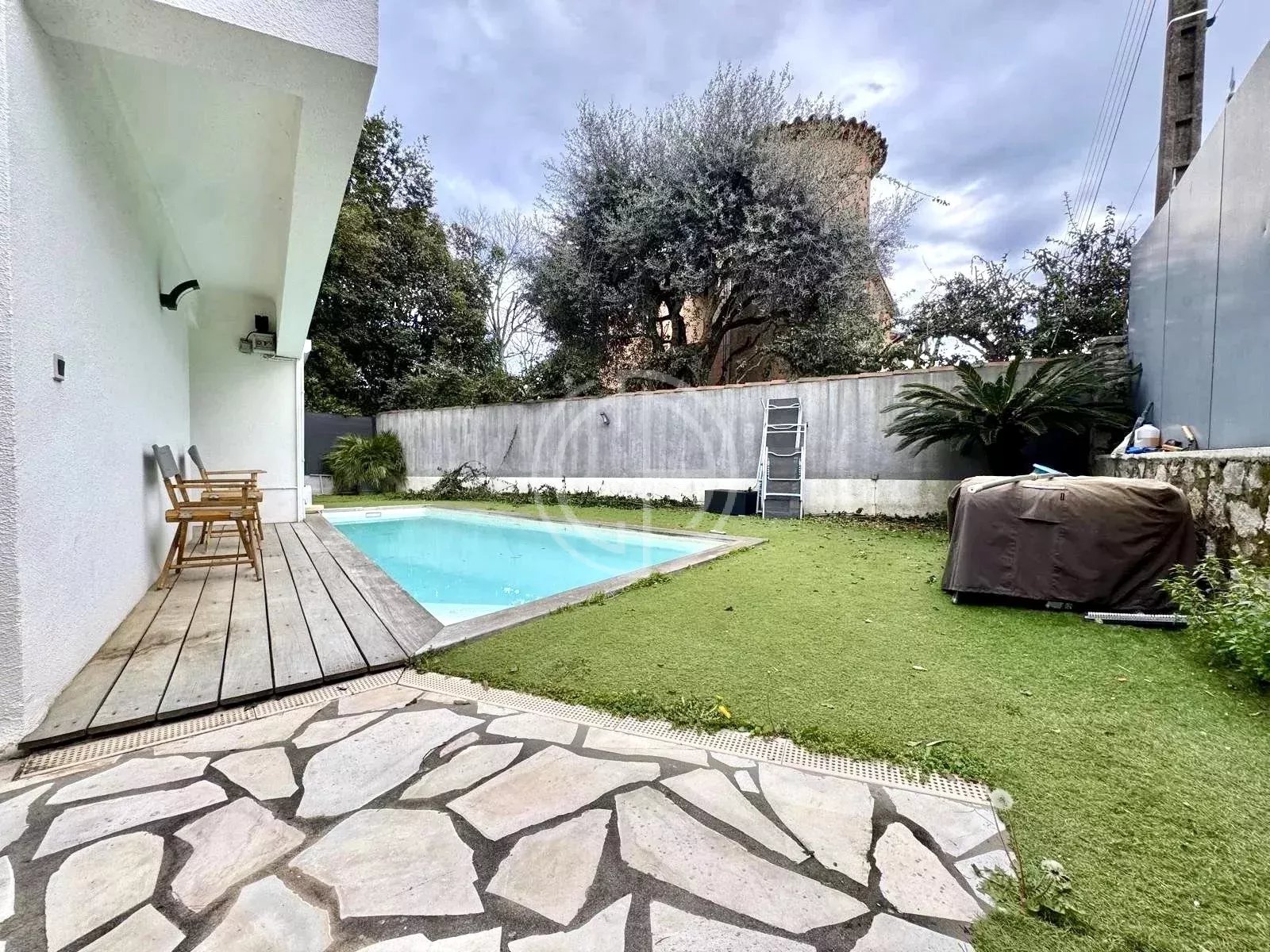 A 15 mn à pieds du centre ville, confortable maison de ville avec piscine. Un beau séjour, cuisine équipée, 4 chambres, 2 salles de bain, possible 3, sur 600m2 de terrain clos, Parkings intérieurs et stationnements à l'extérieur.