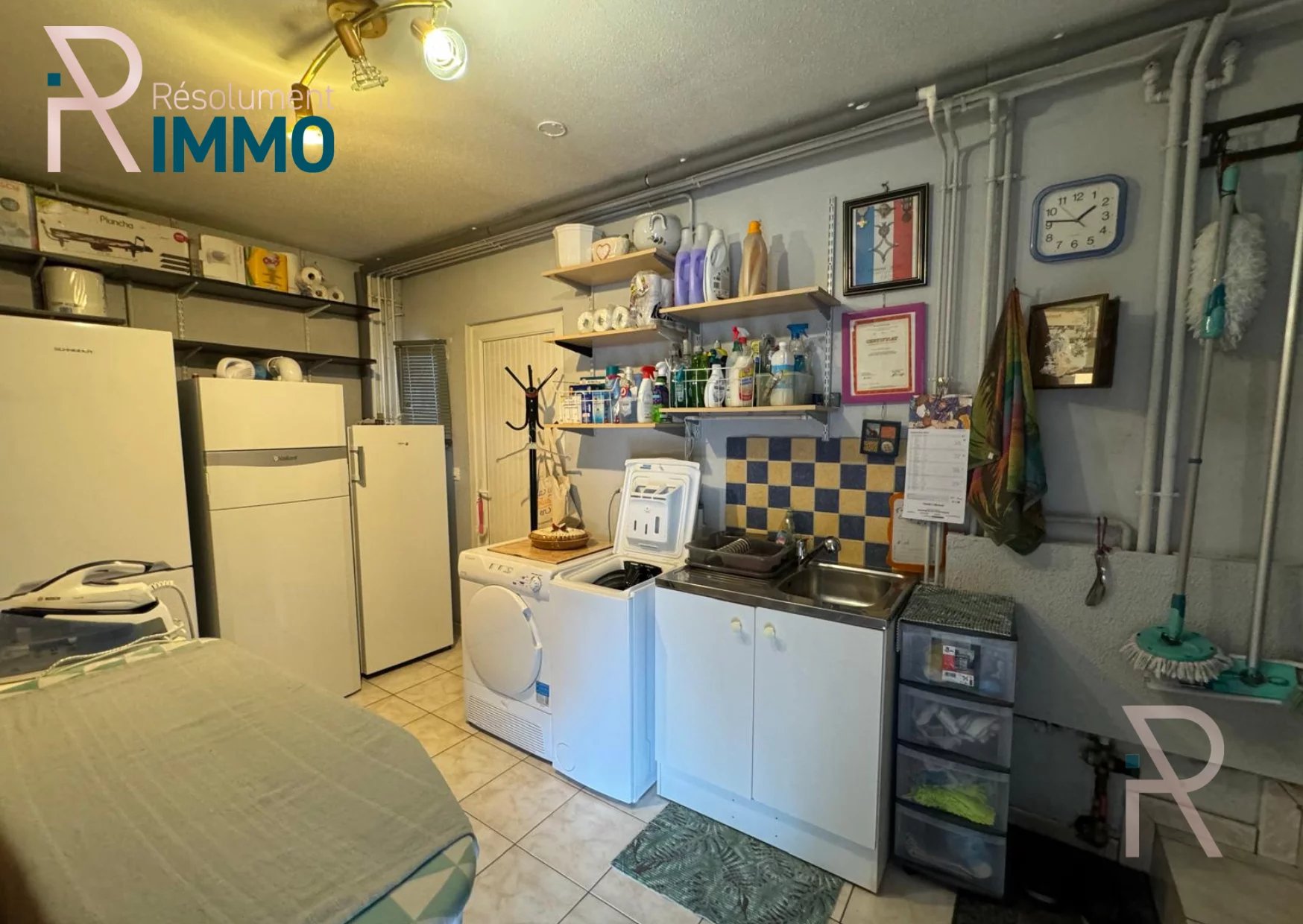 De plain pied : Une entrée avec un débarrât et buanderie s'ouvre sur une grande pièce à vivre.