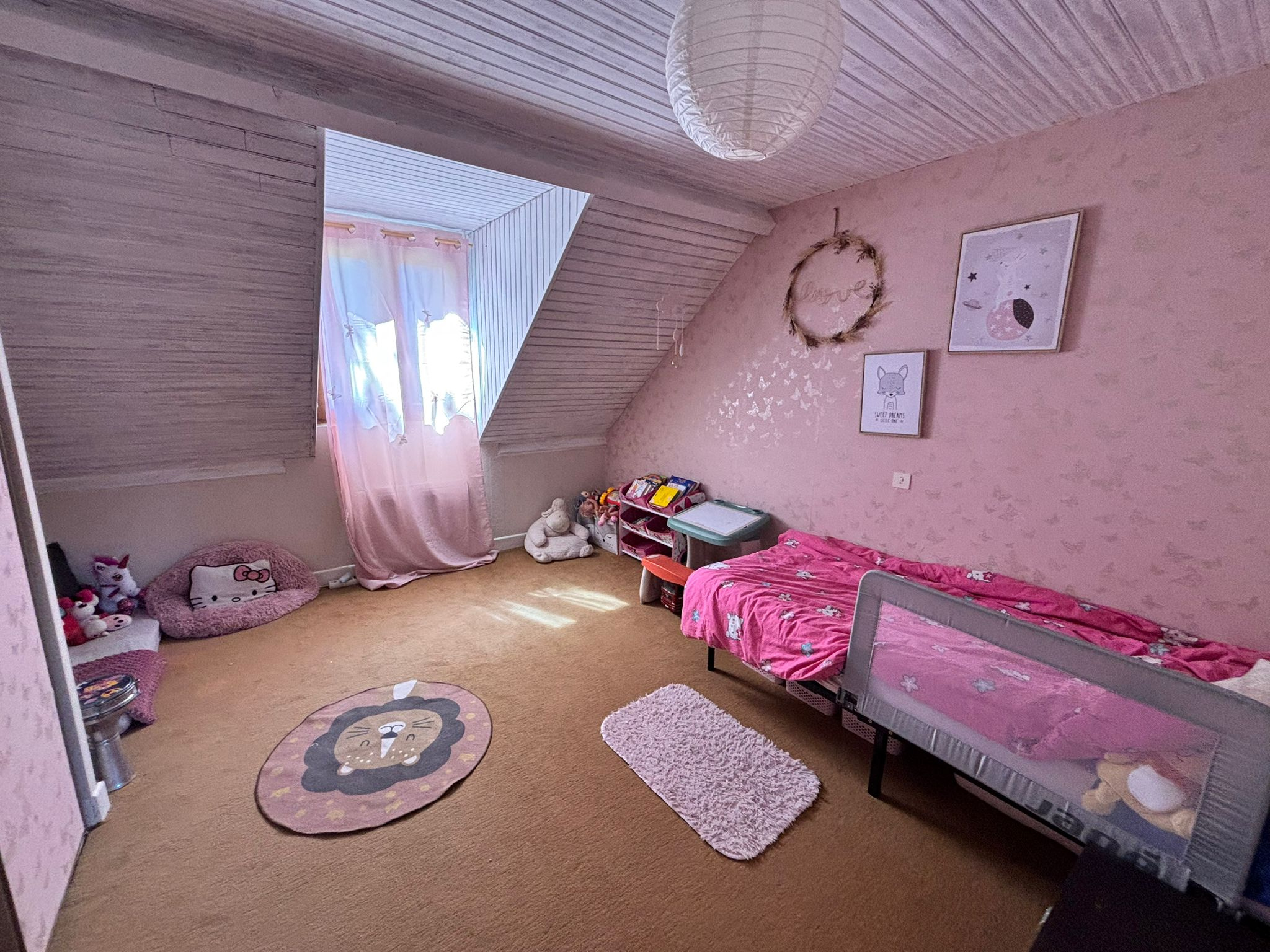 À l'étage, un couloir distribue trois grandes chambres, un bureau, une salle de bains, ainsi qu'un WC séparé. Un grenier facilement aménageable permet la création d'un espace de vie supplémentaire : salle de jeux, bureau, chambre ou atelier selon vos envies.