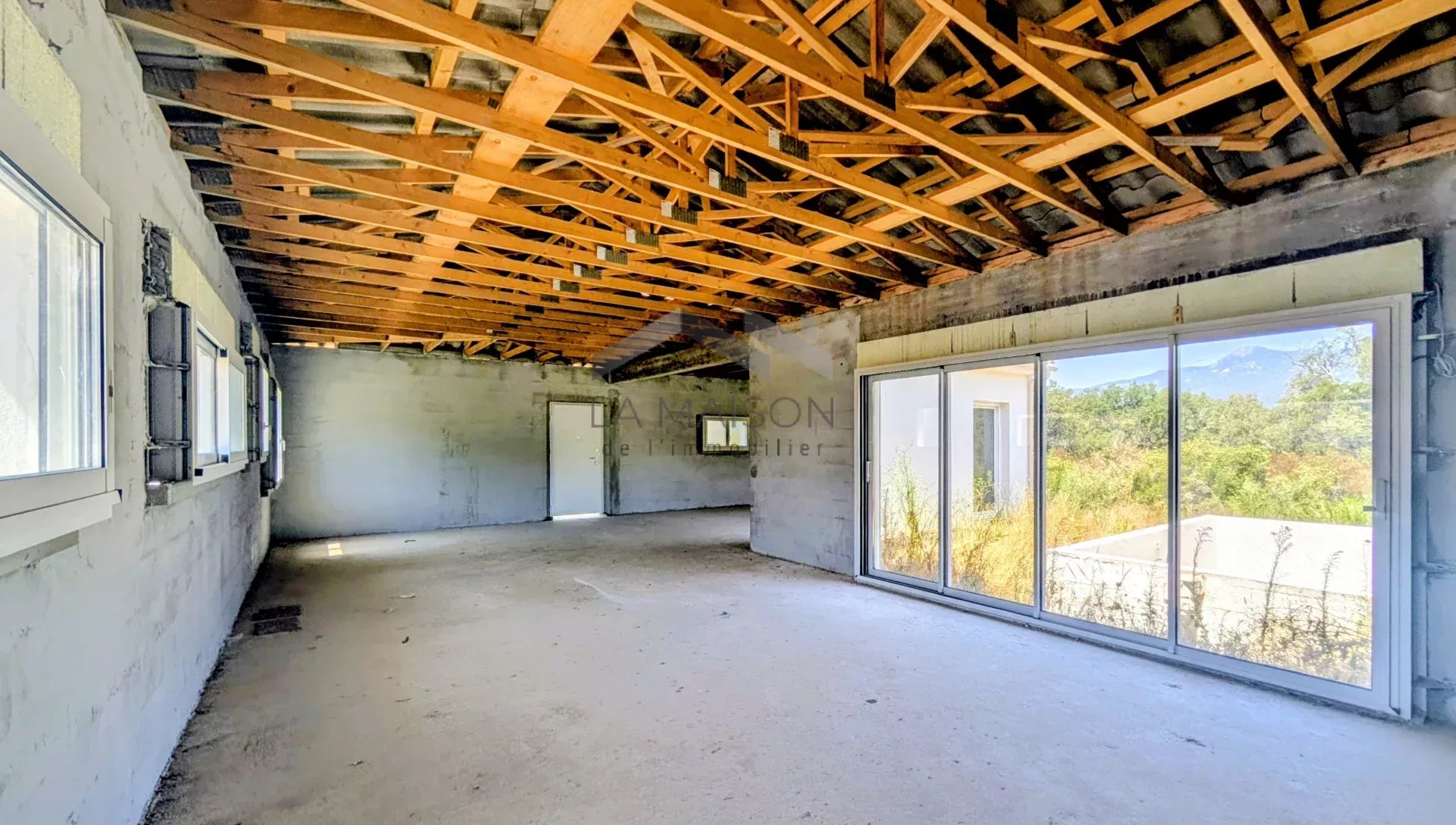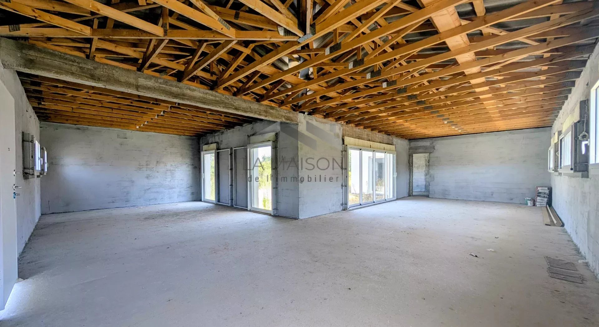 Cette maison individuelle d'habitation de type T4, édifiée de plain-pied, sur vide sanitaire, d'une surface de plancher de 97m² sur un terrain de 536m², est composée d'un espace de vie cuisine/salle à manger/salon, de 3 chambres, 3 salles d'eau, 2 toilettes indépendantes, un garage, une terrasse avec pool house et une piscine. Le bâti est actuellement en Clos et Couvert, soit Mis Hors-d'eau Hors-d'air. Les aménagements intérieurs sont à faire. A savoir : Placo, Electricité, Plomberie, carrelage, sanitaire, isolation, climatisation. La piscine étant au stade du béton fait avec passage des tuyaux. Le toit est à ossature fermette. Les menuiseries en PVC sont posées avec volets roulants électriques. Traitement des eaux usées : tout à l'égout (collectif) Un permis de construire a été délivré en septembre 2021, purgé de tous recours. La maison est en tout point conforme au PC.