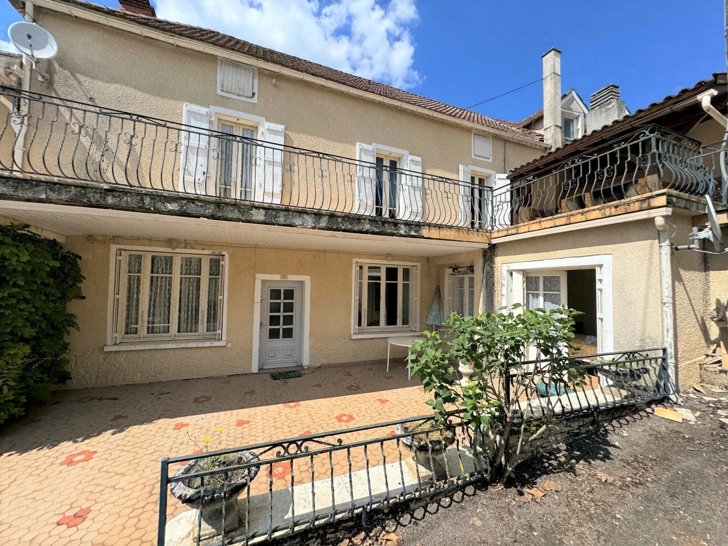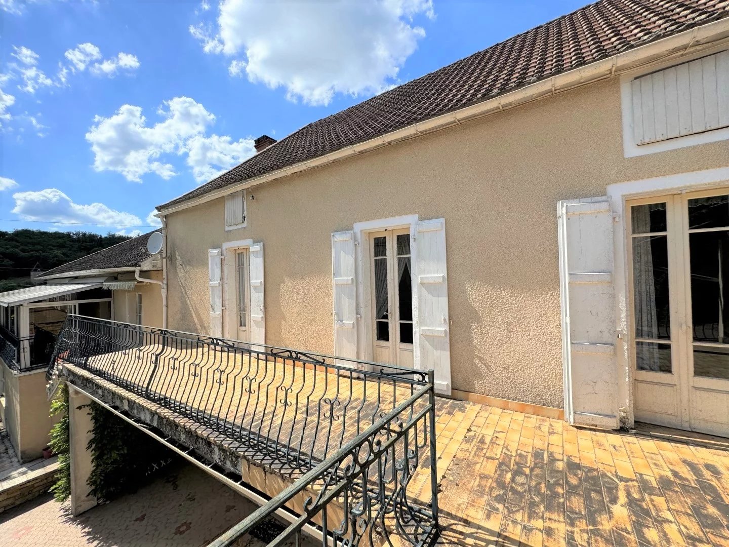 Ensemble immobilier situé à 5 minutes d'un village en Bouriane avec tous commerces, comprenant 4 habitations et dépendances sur un terrain de 3784 m². La maison principale accessible depuis le rez-de-chaussée par un ascenseur et par un escalier, dispose d'une terrasse couverte d'un côté et d'une véranda de l'autre. L'entrée conduit à un grand salon, à une cuisine équipée, salle d'eau, toilettes et deux chambres. Le second logement au premier niveau également, comprend cuisine, salon, deux chambres, salle d'eau et toilettes, terrasse. Le troisième logement de plain pied, comprend entrée, cuisine, salle à manger, salon, chambre, salle de bains et toilettes. Une maisonnette indépendante sur caves, offre au premier niveau une terrasse, une cuisine et salon, et une chambre et salle d'eau. Chaufferie, caves, garage, grange en pierre et diverses dépendance complètent cet ensemble. Chauffe-eau solaire, pompe à chaleur, chaudière récente sont autant d'éléments récents. Travaux de rafraîchissement et de rénovation en partie à prévoir. Investissement locatif intéressant.