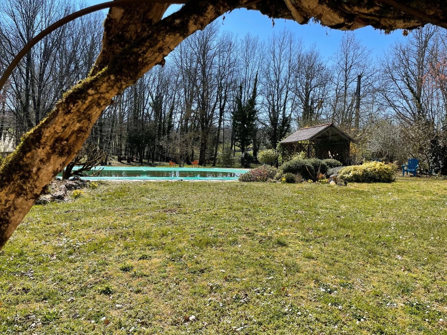 Cette maison en pierre, d'une surface habitable d'environ 250 m2, comprend en rez-de-chaussée un grand séjour, un salon, une cuisine équipée, un salon/bibliothèque, une salle d'eau avec toilettes, une chambre avec coin sanitaires, un grand cellier/chaufferie. Toujours sur ce même niveau, une chambre spacieuse avec salle d'eau et kitchenette. Cet espace dispose de son propre accès pouvant ainsi servir de studio indépendant. Le premier étage offre deux chambres avec rangements, un grand bureau/palier, et une salle de bains avec toilettes. De nombreux éléments d'origine tels que cheminée, ancien évier, plafonds voutés, poutres, murs en pierres apparentes, briquettes, confèrent un grand charme à cette maison. Garage et abri de jardin attenants. Terrasses dallées et piscine de 14x7 m avec système de nage à contre-courant. Magnifique terrain de 6845 m2 arboré et fleuri offrant un bel écrin de verdure à cette confortable maison familiale. Environnement calme, à 5 minutes de Gourdon et de tous ses commerces.