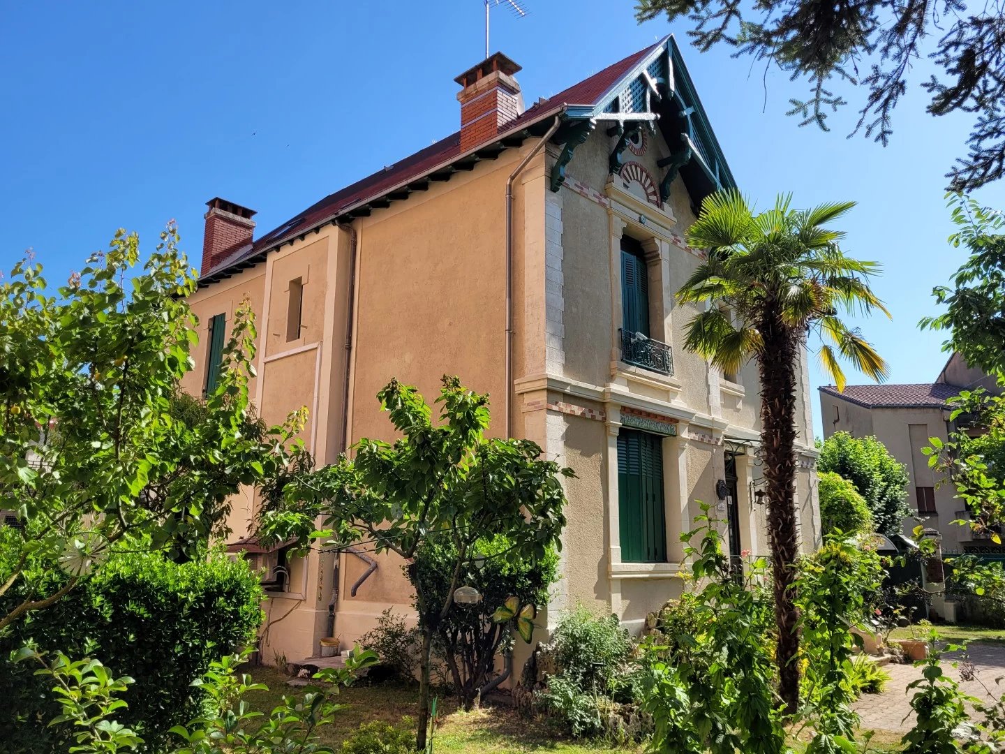 Elégante villa du début XXe, sur son jardin de plus de 900 m2.Entièrement érigée sur caves, son perron mène à l'entrée distribuant la chambre, bureau, espace sanitaires, salon/séjour spacieux, cuisine séparée et équipée, toilettes.Le premier étage accueille trois belles chambres lumineuses et spacieuses, une salle de bains et toilettes.Le dernier niveau en combles offre deux pièces supplémentaires et une salle d'eau/toilettes, idéales pour accueillir les invités ou pour créer un espace de travail.Belles hauteurs sous plafonds, moulures d'époque et volumes harmonieux pour cette propriété à rafraîchir selon votre goût.Le jardin est clos et arboré, agréable et accueille sur l'arrière des dépendances parfaites pour le rangement ou un atelier.