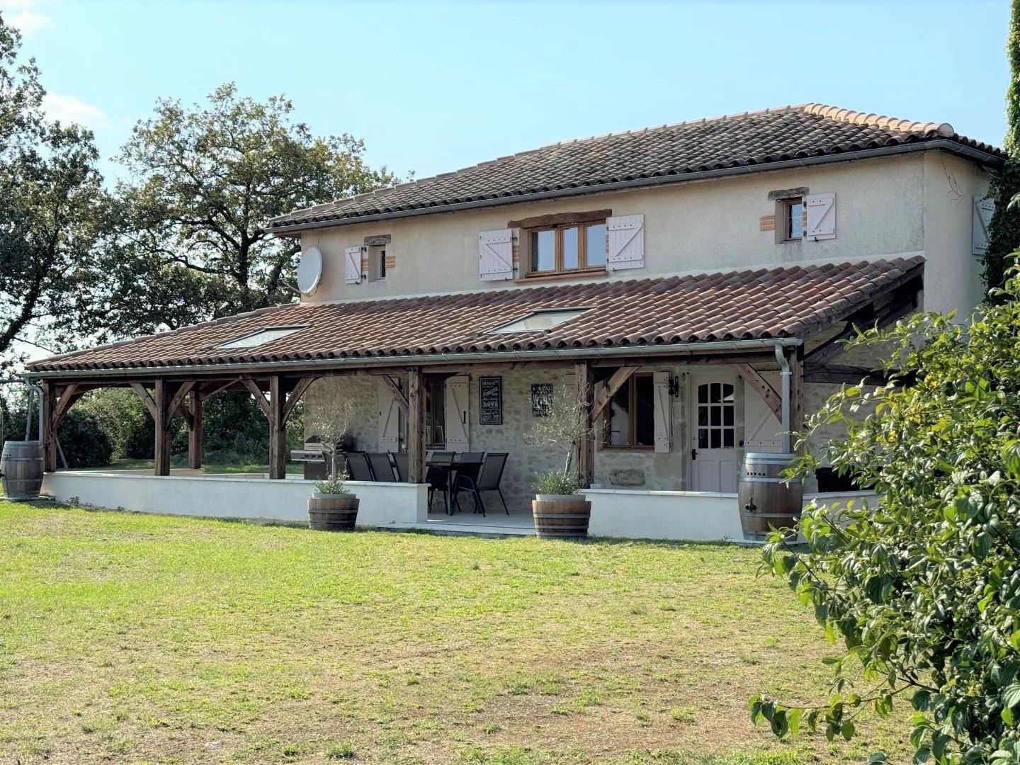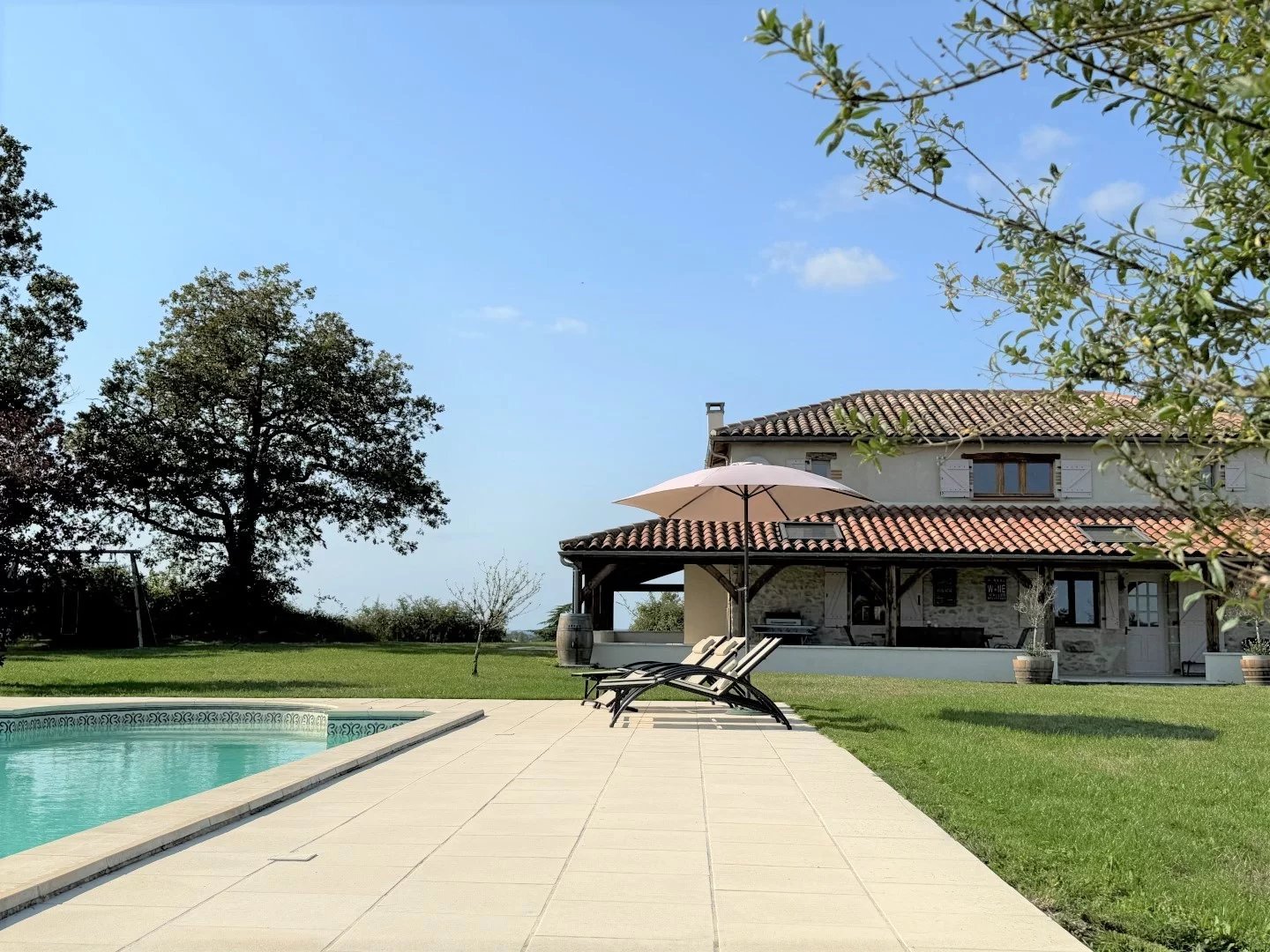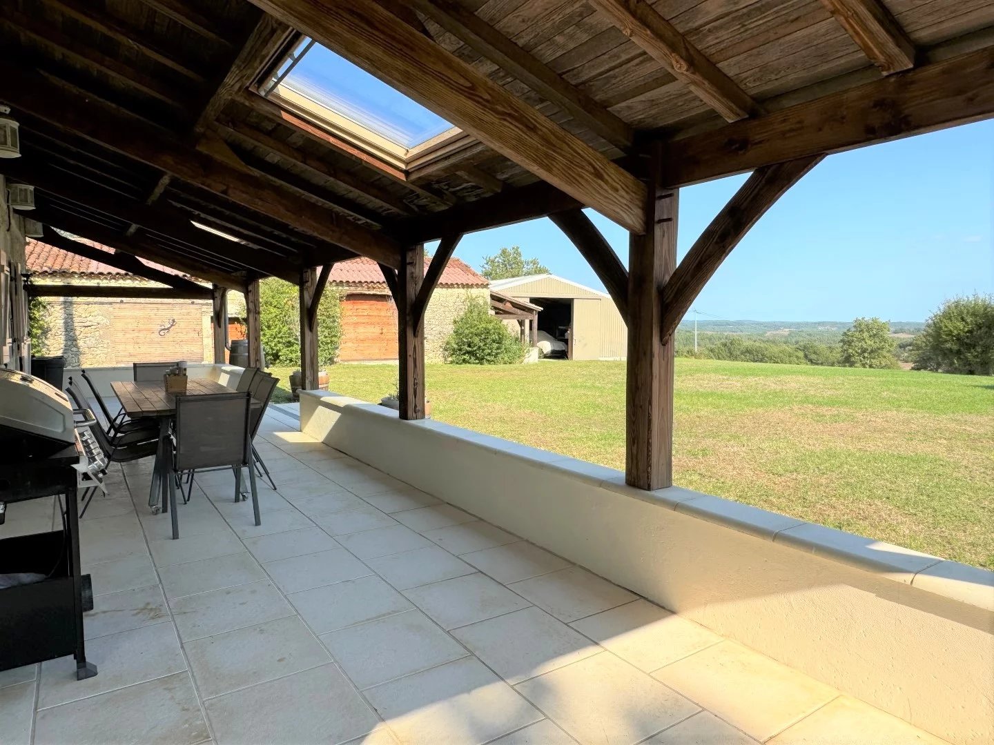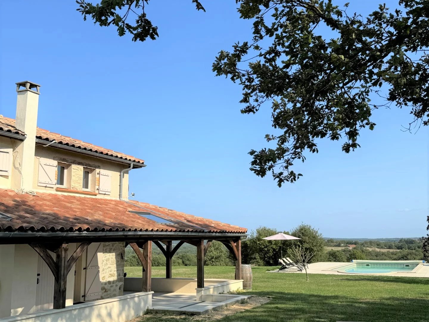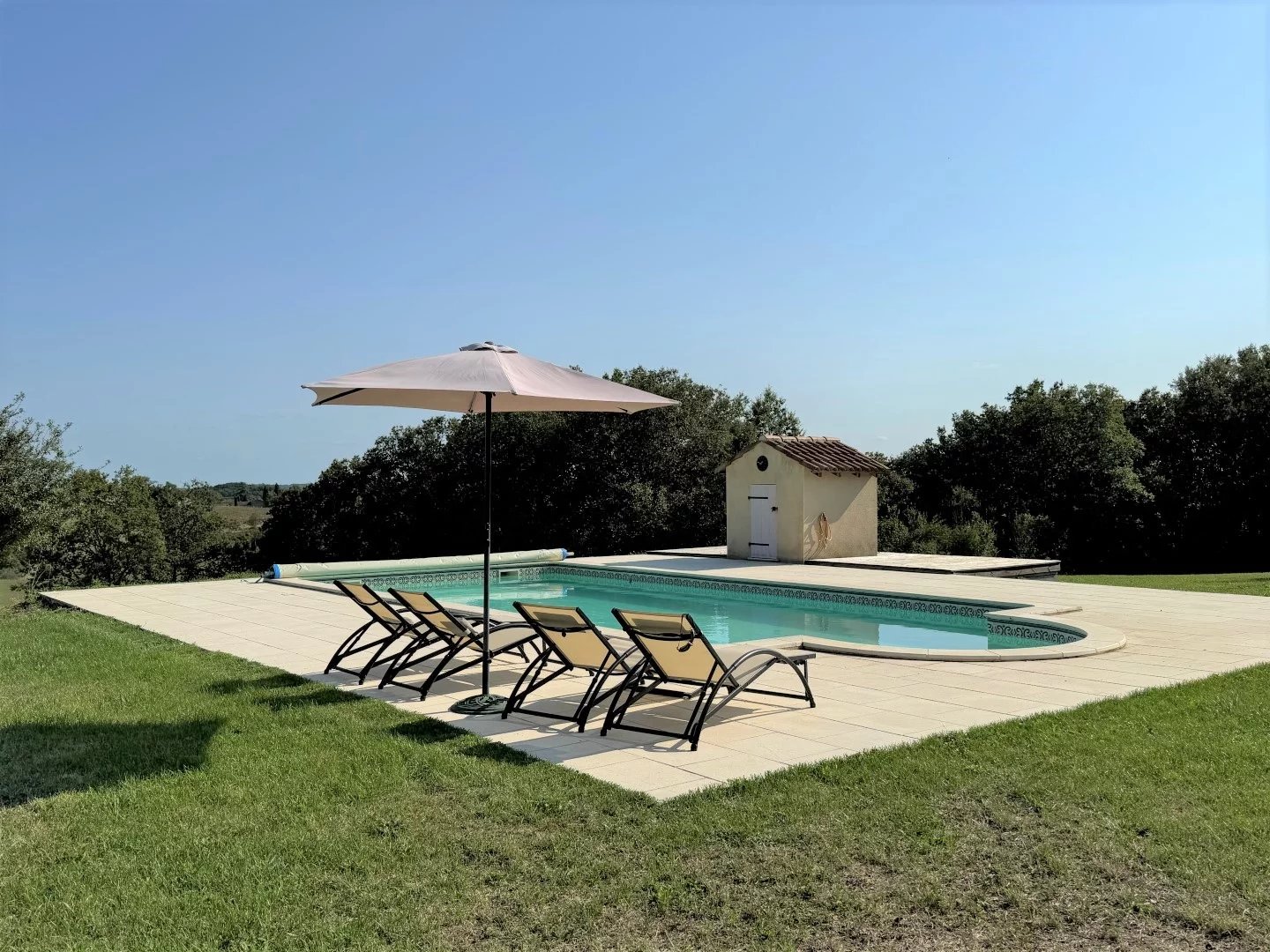 Superbes vues et joli emplacement pour cette maison en pierre rénovée d'environ 130 m² avec piscine et dépendances sur terrain d'environ 1.8 ha et située à quelques minutes de Puy-l'Evêque, Lot. La maison se compose d'une entrée, d'un grand séjour/cuisine équipée avec portes donnant sur une magnifique terrasse, une buanderie, une salle d'eau et toilettes. A l'étage se trouve un grand palier (17 m²) avec coin bureau qui dessert 2 chambres ainsi que la suite parentale de 20 m² (avec salle d'eau privative). Deux dépendances (une en pierre de 84 m² et un hangar métallique de 157 m²) ainsi qu'une piscine 10x5m. La maison se trouve en position dominante et bénéficie de vues magnifiques sur la campagne environnante.