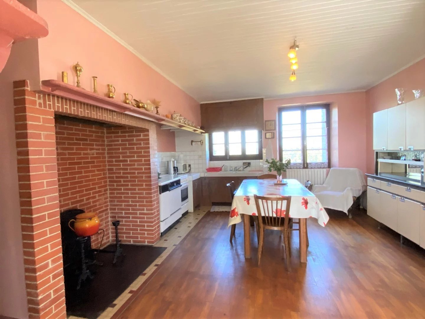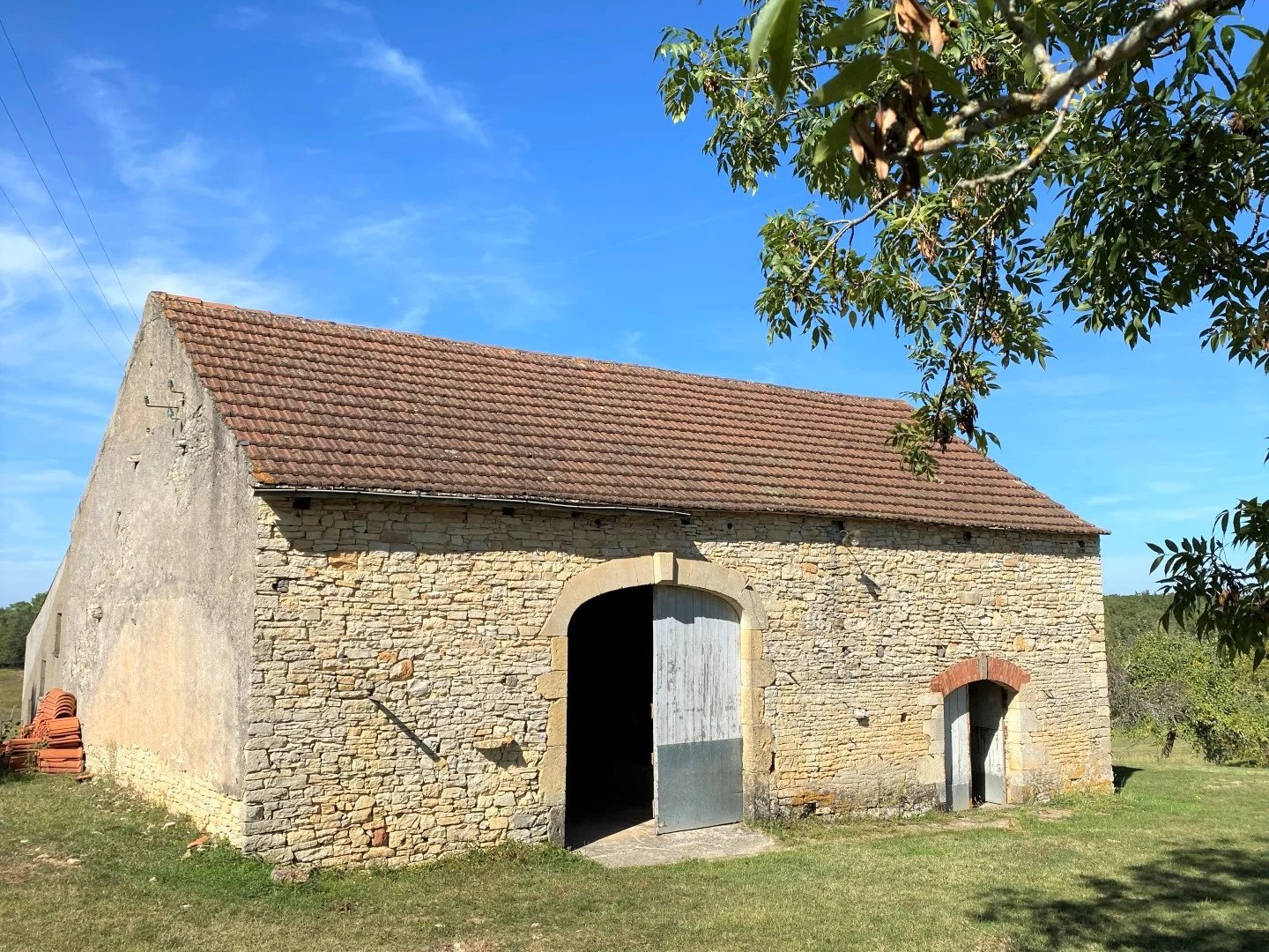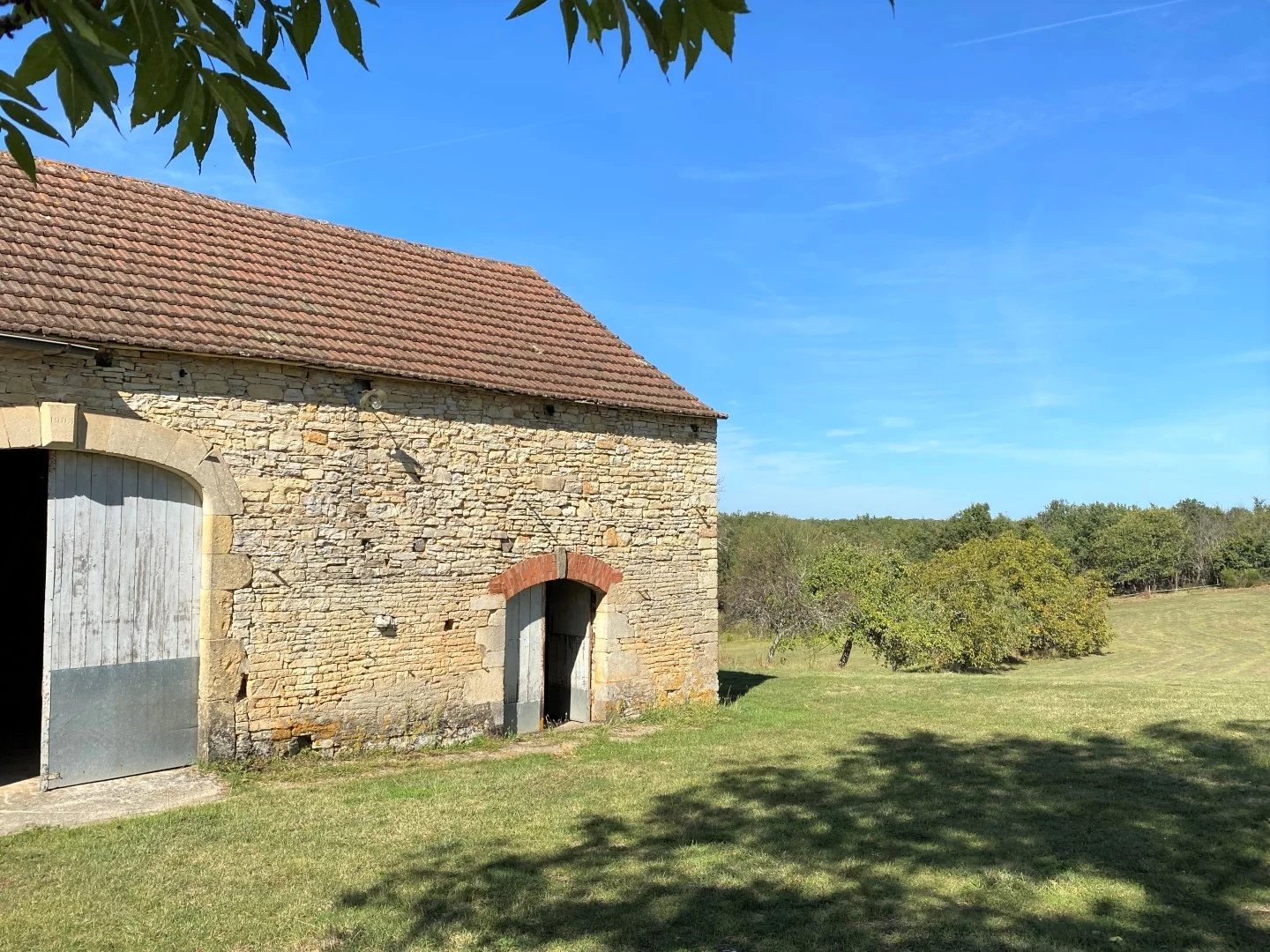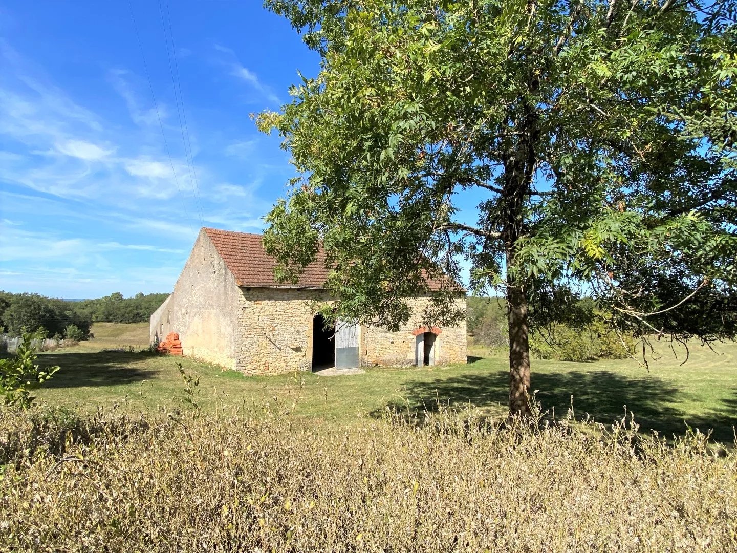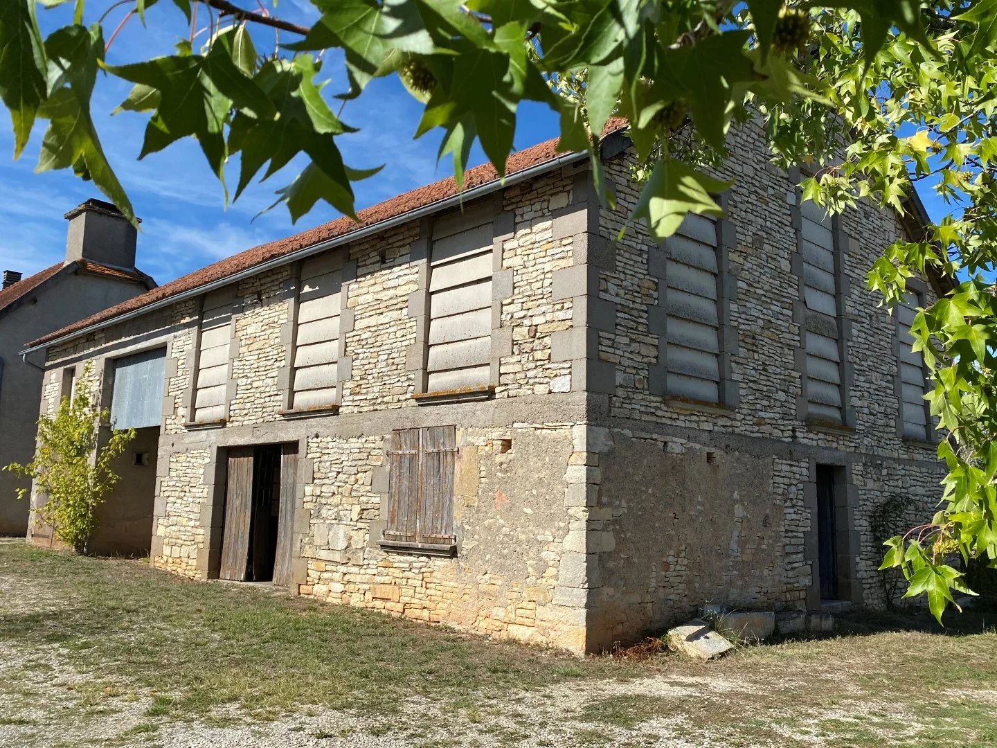 Ancien corps de ferme avec maison et grange en pierre, grand séchoir à tabac, dépendance et grand hangar, le tout sur environ 2 ha de terrain, avec de belles vues sur la campagne environnante. La maison, édifiée sur caves et une pièce aménageable avec cheminée, est desservie par un bolet, conduisant à la cuisine avec cheminée, salle à manger/salon, trois chambres, toilettes et salle d'eau. Grenier en partie aménageable. Le terrain d'une surface de 2 ha accueille également une belle grange en pierre, un immense séchoir à tabac, un hangar, et un abri. Situé dans un petit hameau, cet ensemble immobilier offre de nombreuses possibilités: création de gîtes, activité agricole,...