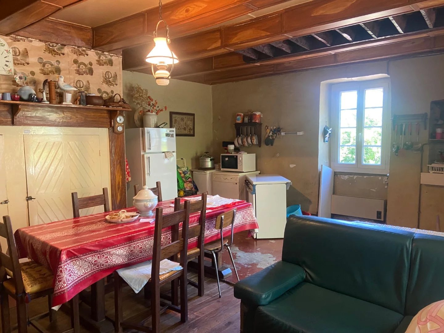 PROPRIETE QUERCYNOISE DE CHARME EN PIERRE DE 130 M² COMPRENANT 2 MAISONS D'HABITATION SUR UN TERRAIN ATTENANT DE 3666 M². PROPRIETE FAMILIALE AVEC DEUX LOGEMENTS INDEPENDANTS DONT UN RESTAURE PAR DES OUVRIERS DE FRANCE. SITUATION EN CAMPAGNE. A 8 KM D'UN VILLAGE TOURISTIQUE ET TOUS COMMERCES DE LA VALEE DU LOT. (46700). Habitation 1 de 54 m² surélevée sur cave : 1 chambre, séjour-cuisine, salle d'eau, WC, cave. Rez de jardin : Une cave voutée de 47 m². Etage : accès par un escalier extérieur donnant sur bolet en véranda de 3 m². Séjour - cuisine de 31,5 m², sol parquet. Une chambre de 16 m², ensuite salle d'eau de 4,2 m² et WC séparé de 2 m², sol carrelage. Habitation 2 de 75 m² aménagée de plain pied : 2 chambres, séjour-cuisine, WC, une pièce. Entrée de 8,15 m² Salon-cuisine 35 m² donnant sur une terrasse et sur le jardin Couloir avec fenêtre de 5,6 m² Une chambre de 8 m² Une chambre de 10 m² Un WC de 1,4 m² 1 pièce à restaurer destinée à une salle de bains de 6,40 m²
