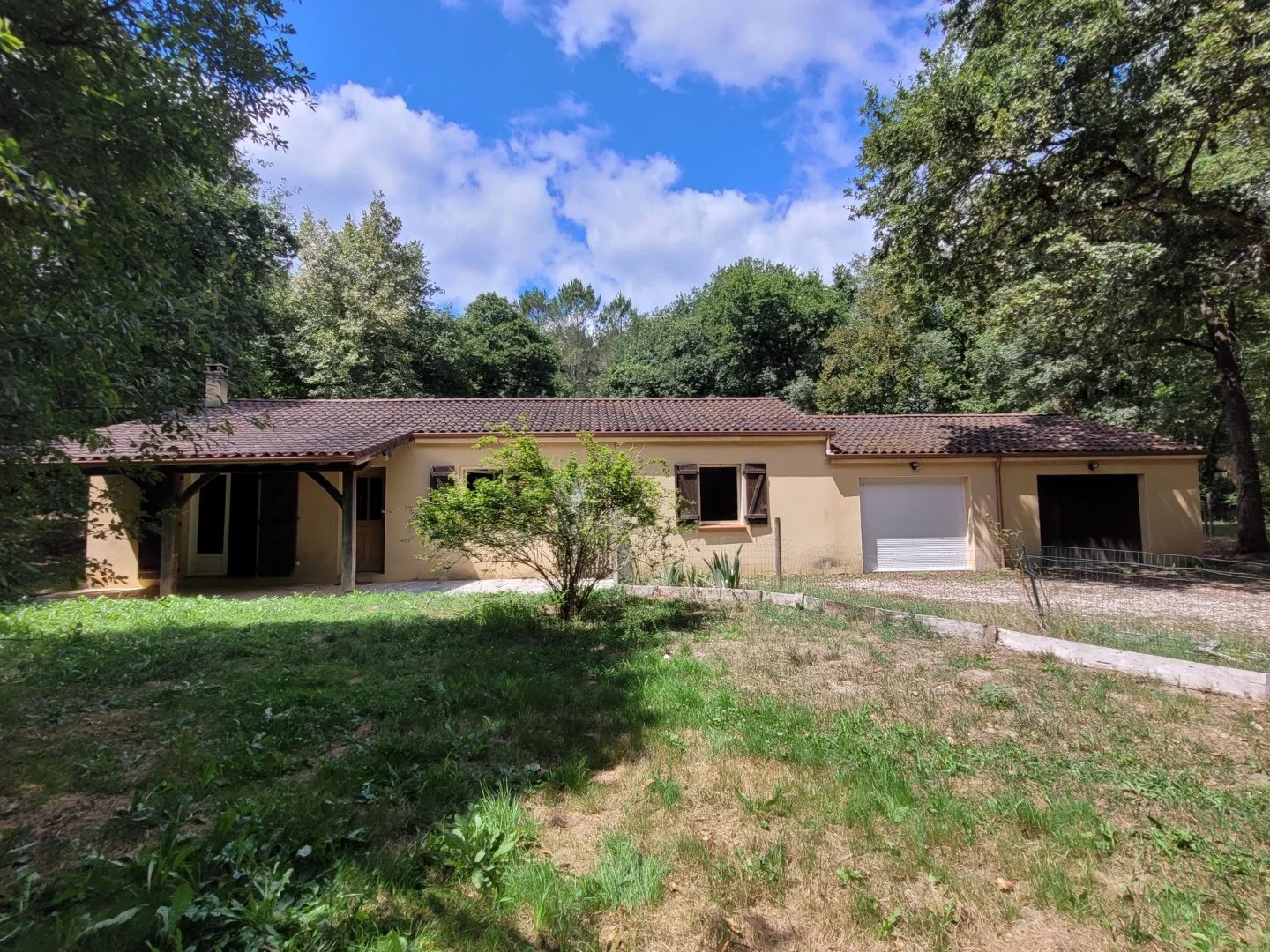 Maison familiale avec garage attenant, terrasse couverte et joli jardin arboré de plus de 4900 m2, à deux pas de toutes les commodités. Cette maison, entièrement de plain-pied comprend un séjour spacieux avec cheminée/insert, une cuisine séparée, buanderie, quatre chambres, salle de bains, toilettes et grand garage. Cette maison est toute proche des commerces à pied, tout en étant située dans un coin paisible et arboré.