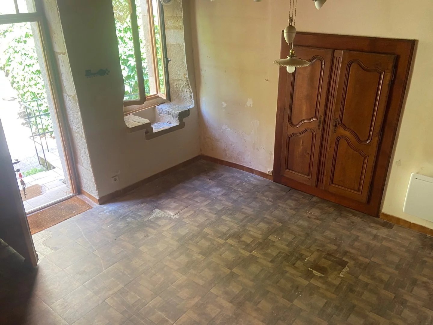 ANCIENNE MAISON DE BOURG DE CARACTERE EN PIERRE, A ENTIEREMENT RESTAURER AVEC UNE PETITE TERRASSE. SITUATION : AU COEUR D'UN VIEUX VILLAGE MEDIEVAL TOUS COMMERCES DE LA VALLEE DU LOT TOURISTIQUE. Habitation de 54,25 m² en partie surélevée sur cave, et aménagée sur 2 niveaux. Une salle de séjour et salon, une cuisine, une salle d'eau et WC, une grande chambre, 2 pièces. Rez de chaussée : Une pièce indépendante de 9,93 m². Une remise indépendante de 3,45 m². Une belle salle de séjour et salon de 26,80m² avec une superbe cheminée en pierre, évier pierre, placard mural, une fenêtre et porte ouvrant sur petite terrasse. Une cuisine de 5,69 m² avec 2 fenêtres, évier un bac. Une salle d'eau complète de 1,81 m², douche, lavabo et WC. Etage (comble aménagé) : accès par un bel escalier intérieur en bois : Une grande chambre de 19,95 m² mansardée en mezzanine, charpente apparente avec velux, sol parquet flottant.
