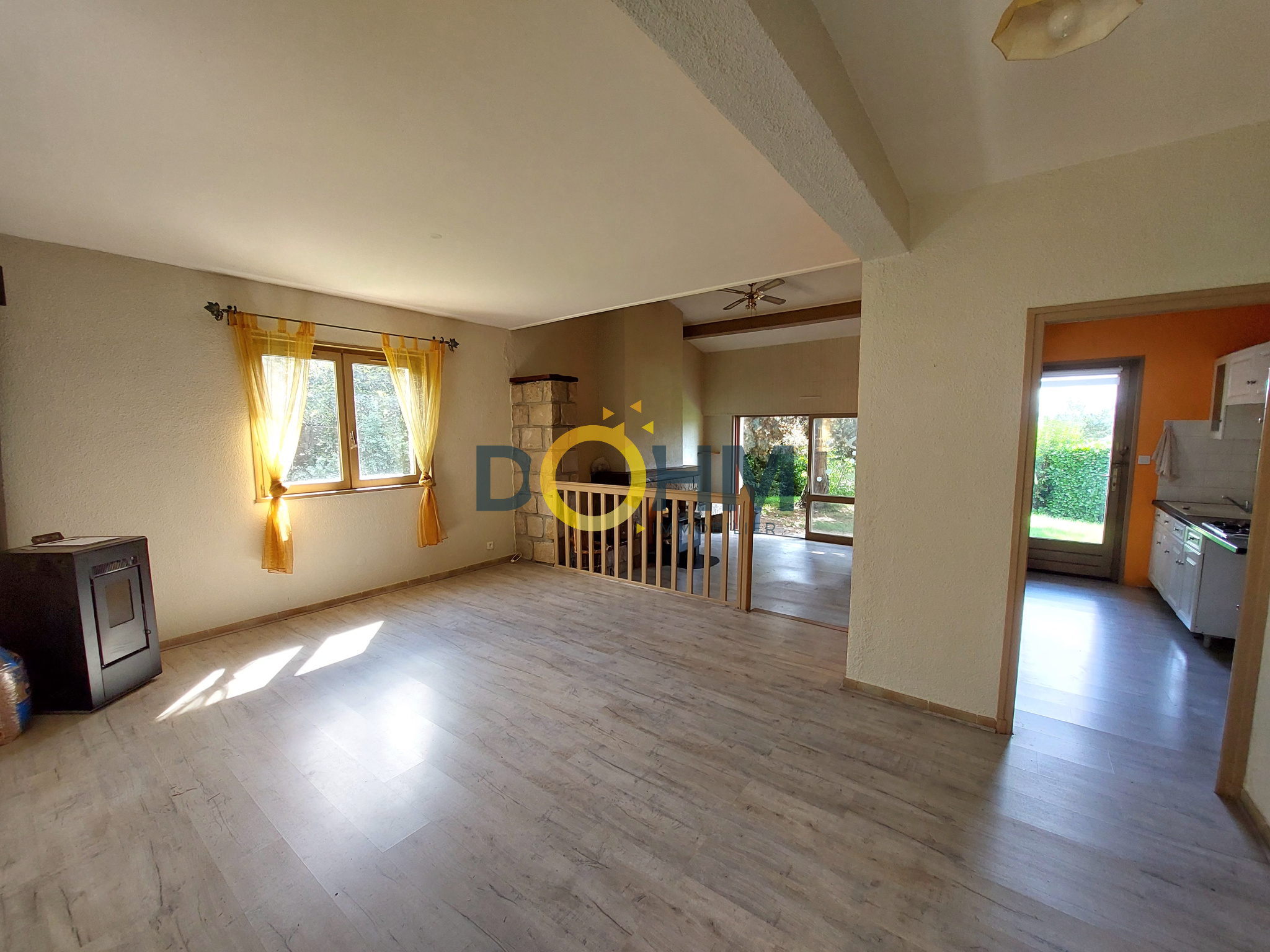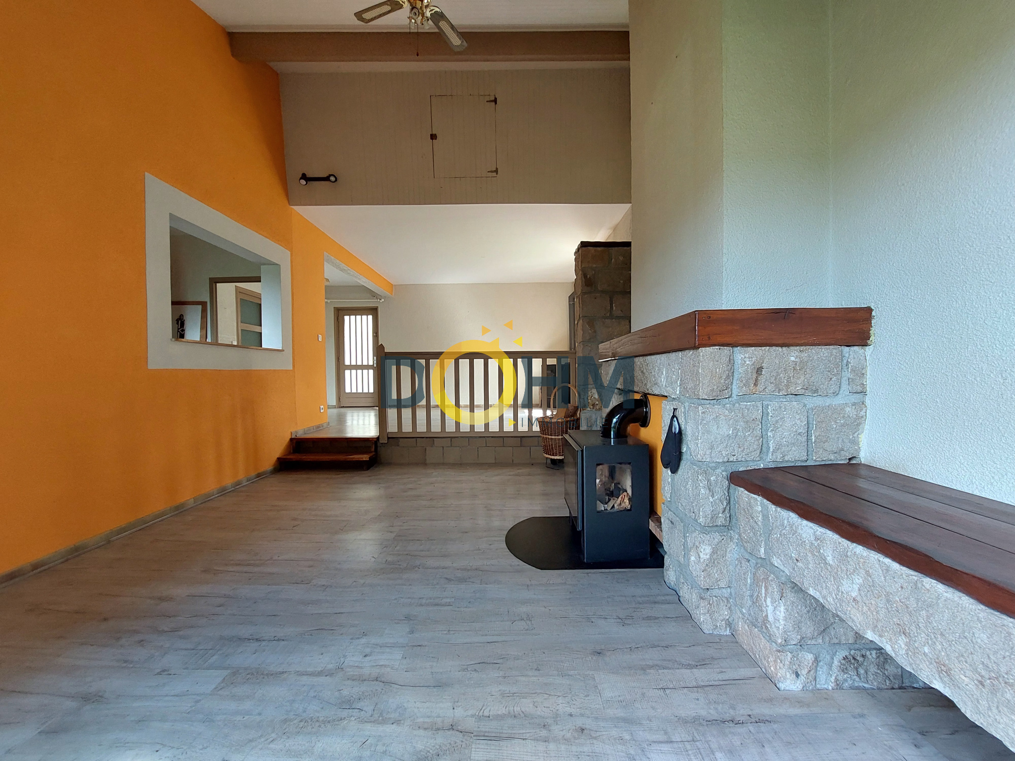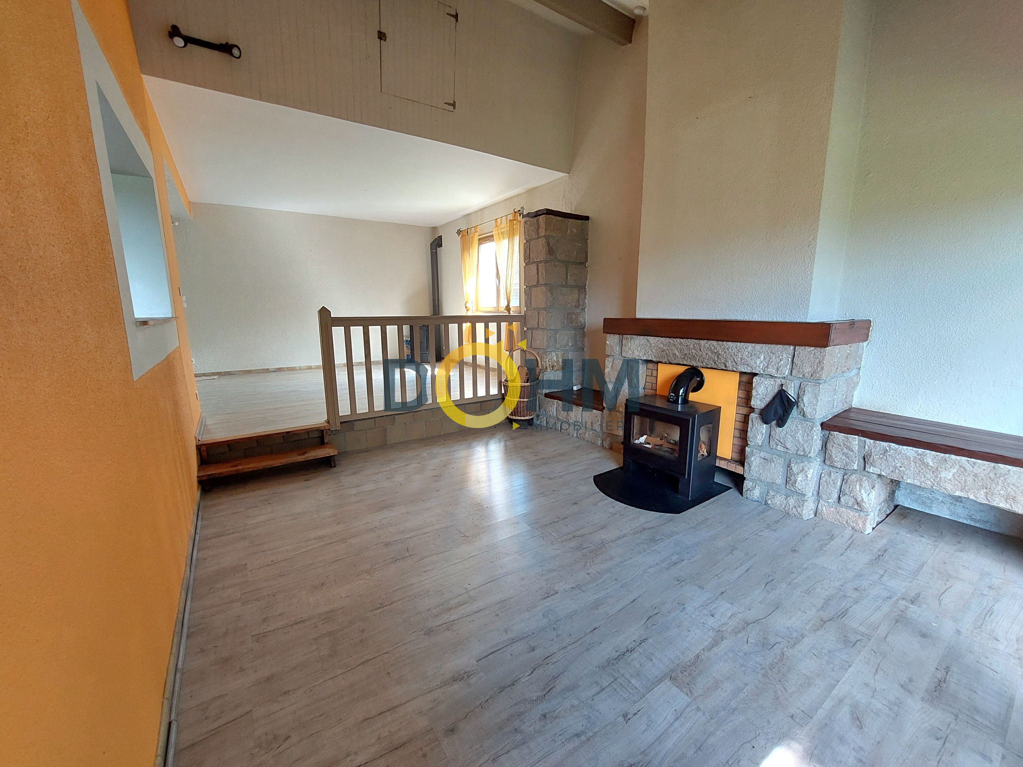 - Pour un total de 39 m2 vous trouverez un vaste séjour avec poêle à granulés, ouvert sur un salon en contrebas (2 marches), chaleureux et agrémenté d'un poêle à bois.