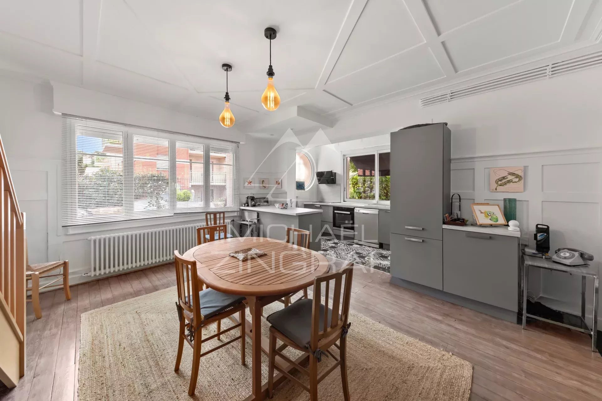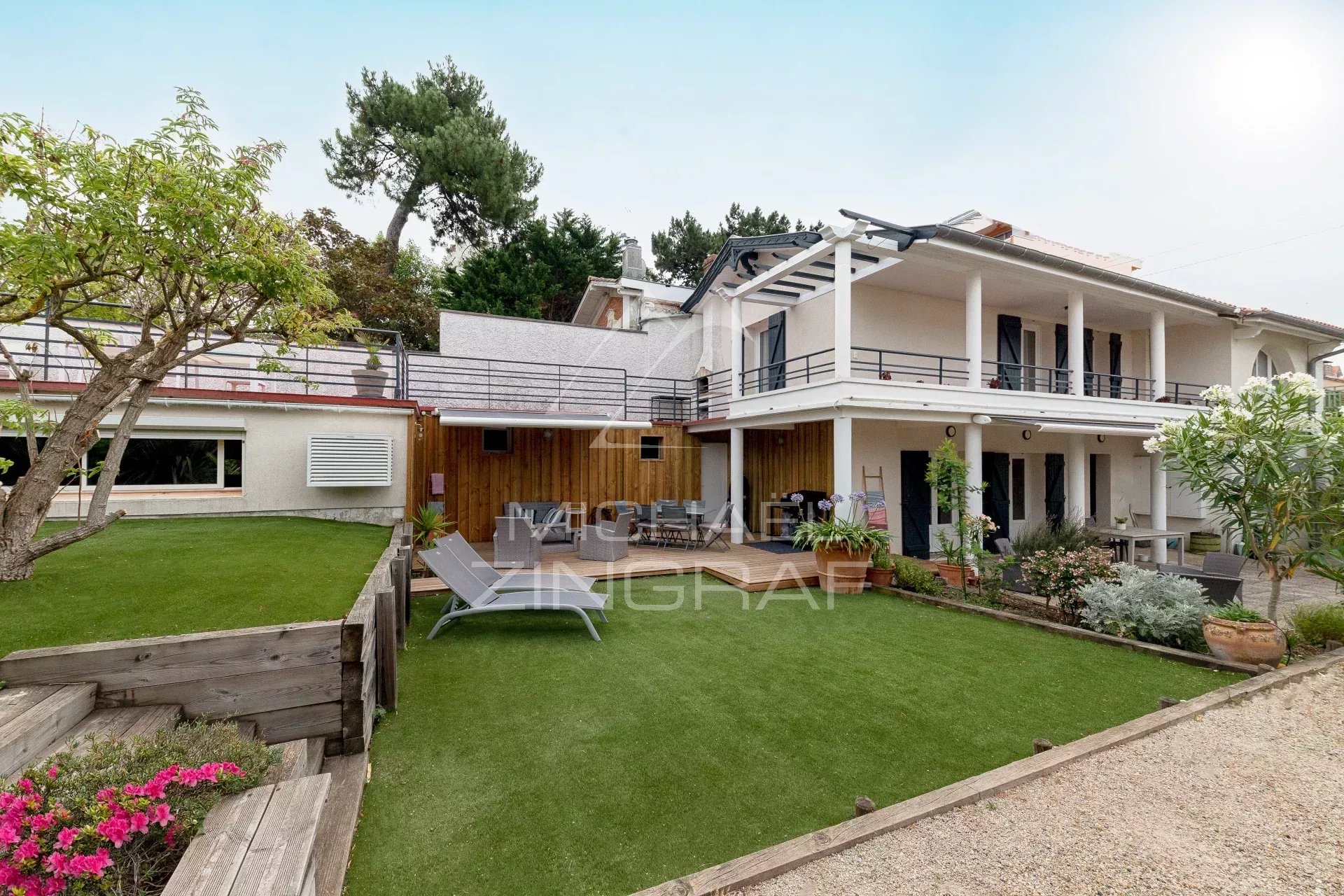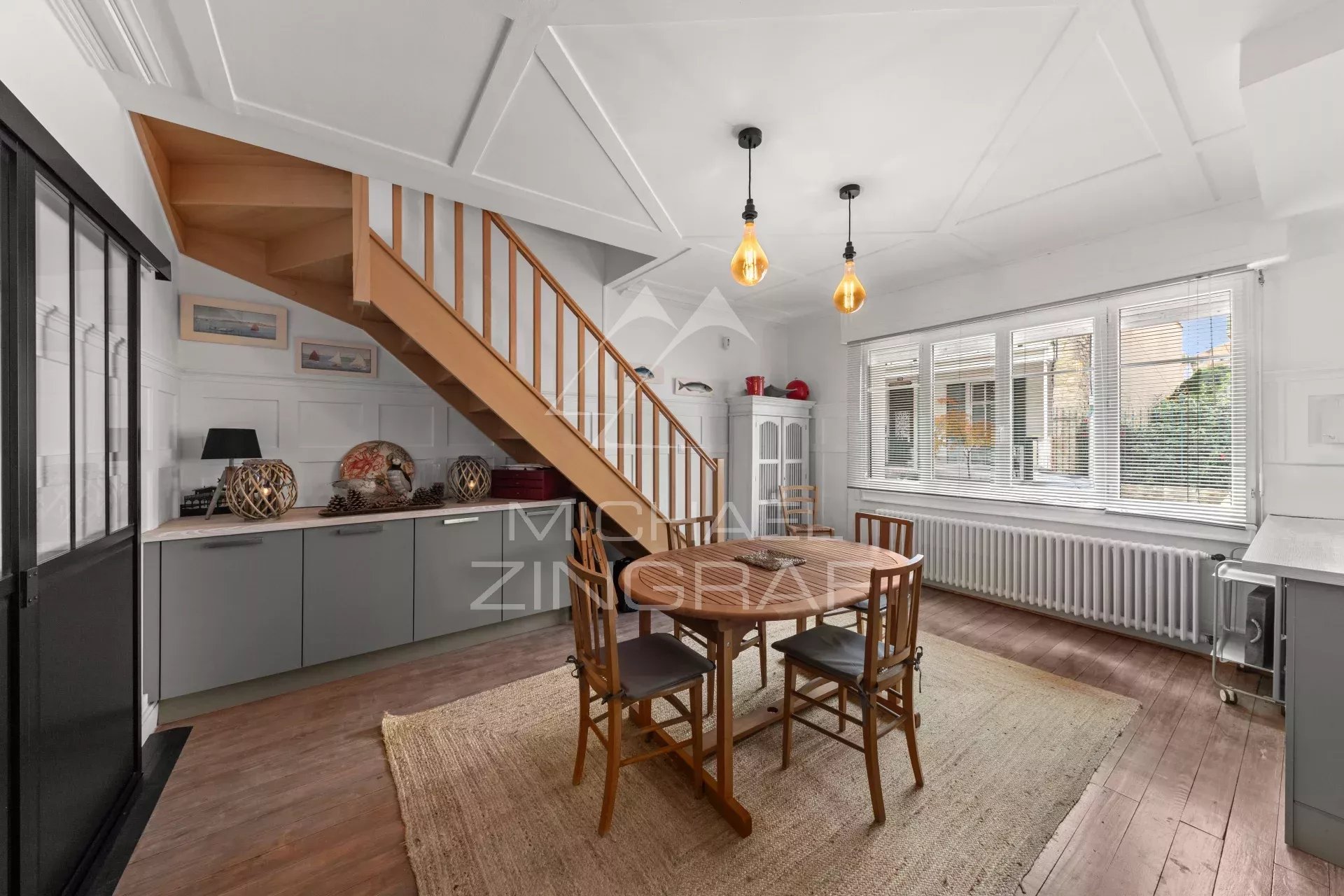 Michaël Zingraf Real Estate vous propose cette superbe maison de charme, idéalement située en seconde ligne du Bassin d’Arcachon, au cœur de la très prisée Ville d’Été à Arcachon. Dans un quartier calme et recherché, à quelques pas de la plage et des commerces, cette propriété entièrement rénovée et sans travaux séduit par son architecture élégante et ses prestations de qualité. La maison principale se compose d’une entrée accueillante, d’une vaste pièce de vie baignée de lumière, de trois chambres confortables ainsi que de deux salles de bains soigneusement aménagées. Une dépendance, harmonieusement intégrée à la propriété, offre une grande chambre avec sa salle d’eau privative, parfaite pour recevoir ou envisager un espace professionnel ou d’appoint. Son emplacement privilégié, la qualité de ses finitions et la possibilité de tout faire à pied font de ce bien une opportunité rare sur le marché arcachonnais.