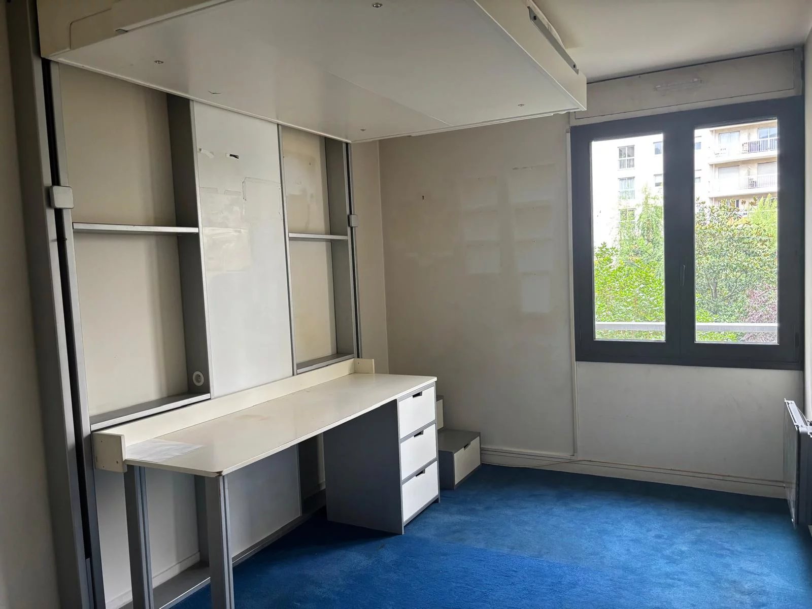 - Une salle de séjour avec bibliothèque donnant également sur le balcon (possibilité de créer une troisième chambre);