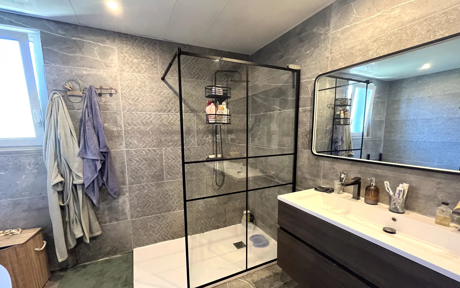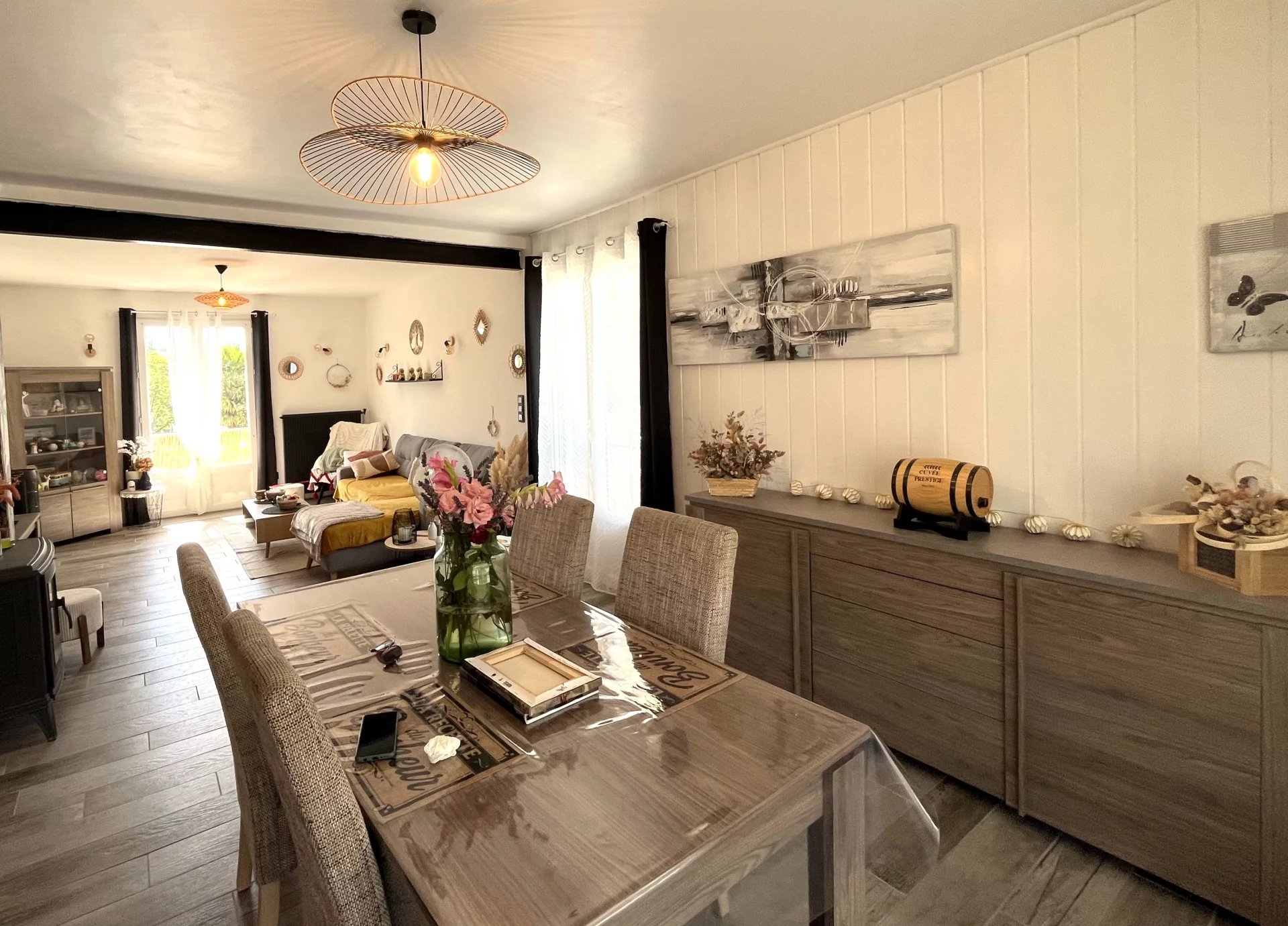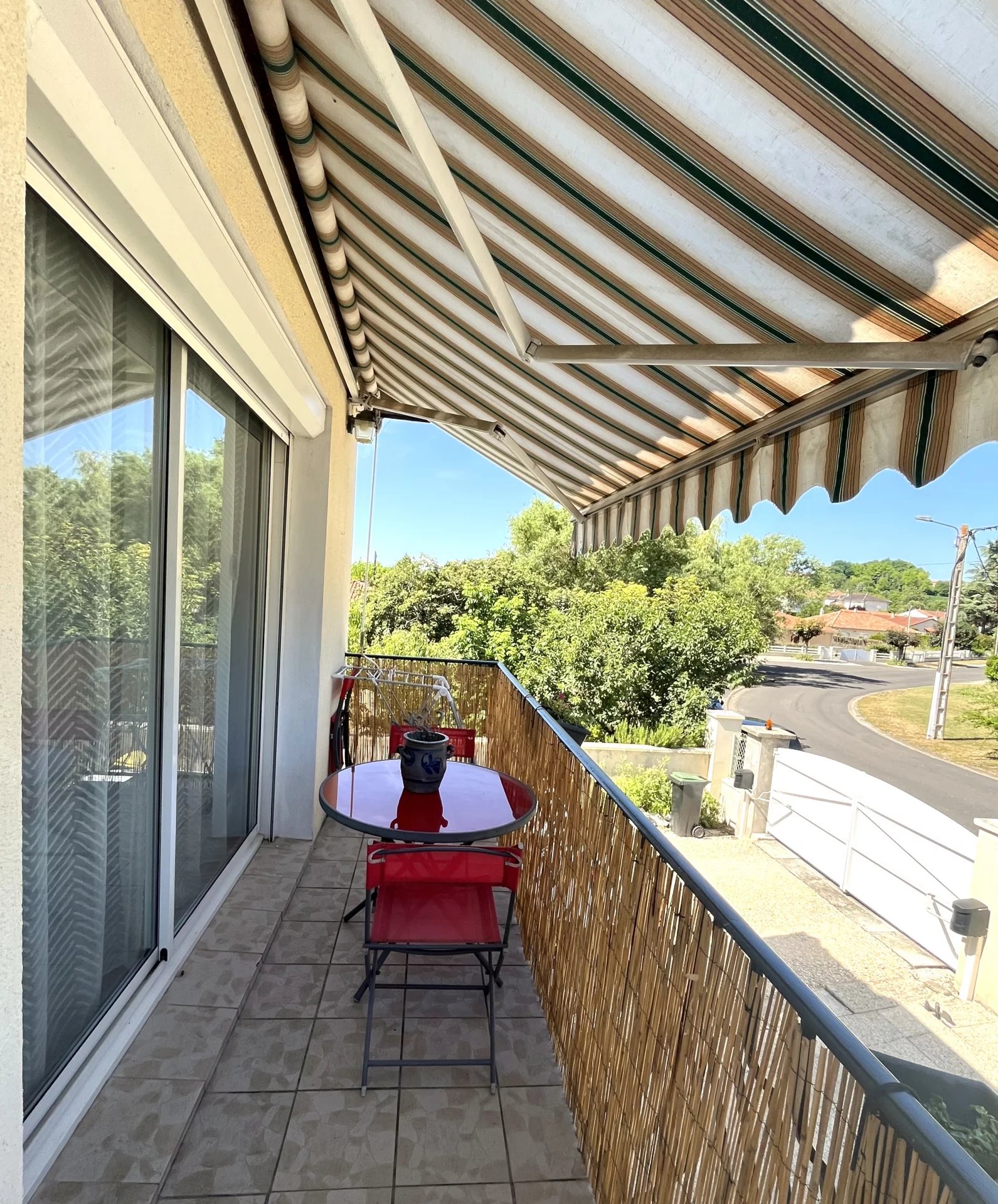 Située au calme tout en étant au centre de notre village bien-aimé, avec toutes les commodités à distance de marche : cette maison robuste et charmante sur deux niveaux comprend une grande salle à manger/pièce à vivre lumineuse et une cuisine équipée avec des boiseries solides. Au même niveau, on trouve deux chambres, dont une avec dressing et bureau, une salle de bains familiale avec toilettes séparées, le tout bien sûr raccordé au réseau d'égouts public. Au rez-de-chaussée, il y a un grand garage, un atelier, une cuisine d'été, une chambre d'amis avec toilettes et lavabo et un salon, idéal comme logement séparé pour un adolescent ou une personne âgée vivant à la maison. Le tout sur un terrain entièrement clôturé de 888 m² facile à entretenir, avec une piscine chauffée hors sol. Profitez du soleil ou de l'ombre depuis le balcon ou la terrasse avec store. Le DPE est C grâce à une rénovation approfondie avec des matériaux d'isolation supplémentaires, du double vitrage partout, un nouveau tableau électrique, un chauffage central avec une pompe à chaleur de 17 kWh et 8 panneaux solaires pour le chauffe-eau thermodynamique de 210 litres et 1 panneau solaire supplémentaire pour le chauffage de la piscine hors sol. Contactez-nous pour une visite sans engagement : nous serons ravis de vous faire visiter !