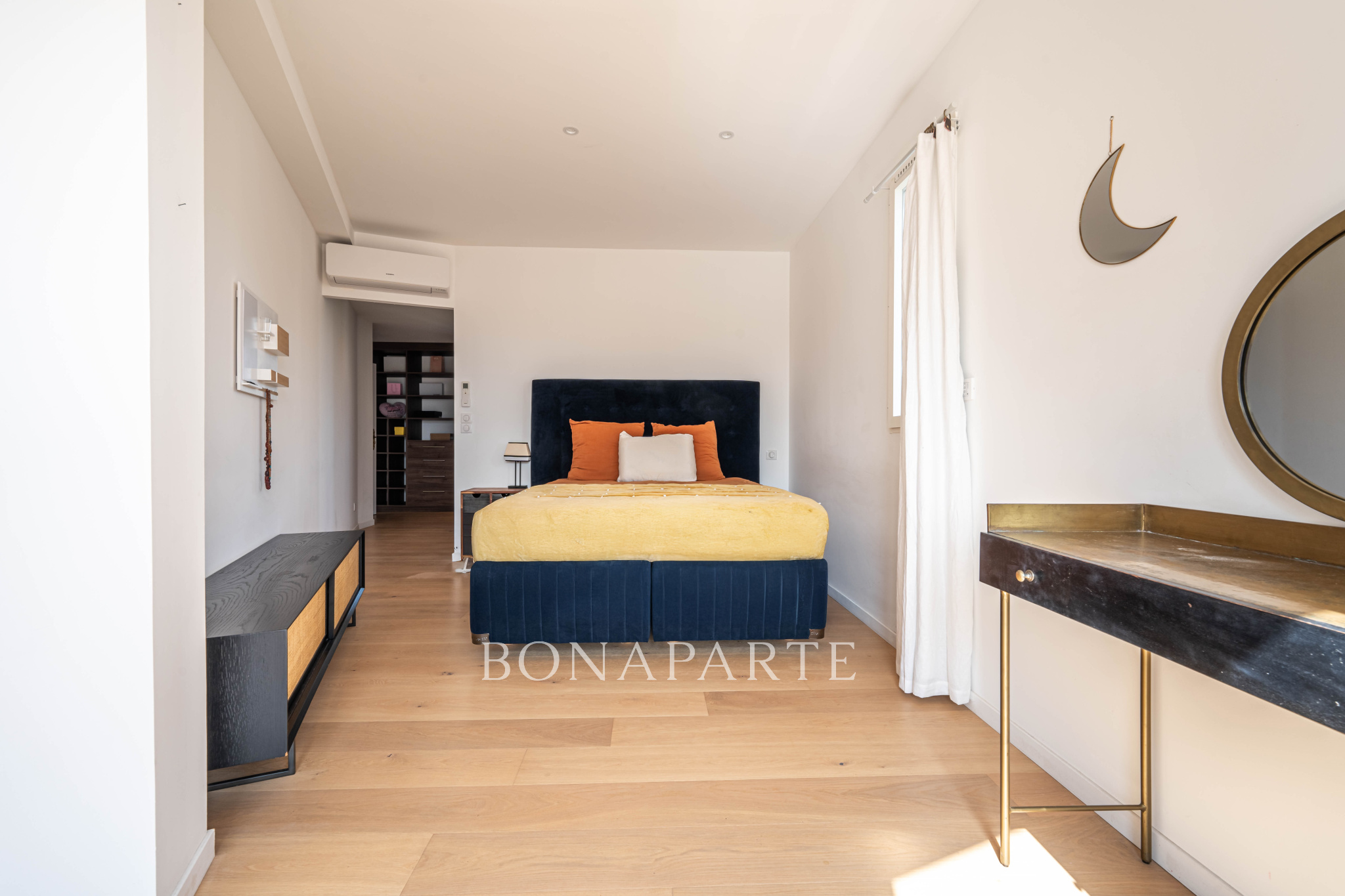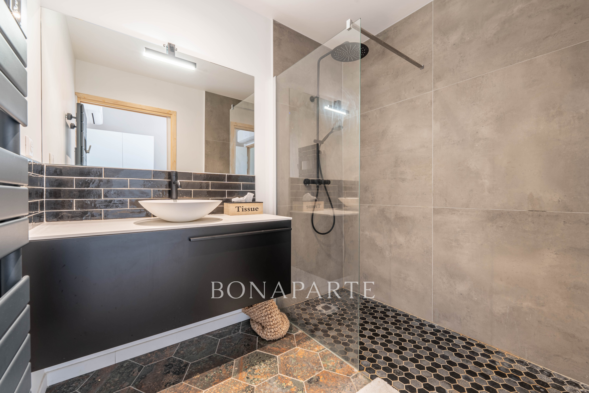 La propriété propose quatre suites, chacune avec dressing et salle d'eau privative, dont une de plain-pied bénéficiant d'une entrée indépendante. Les matériaux choisis notamment le sol en pierre de Taza apportent une note minérale et raffinée, tandis que les toilettes japonaises, la domotique centralisée et la climatisation intégrale témoignent d'un confort haut de gamme jusque dans les moindres détails.