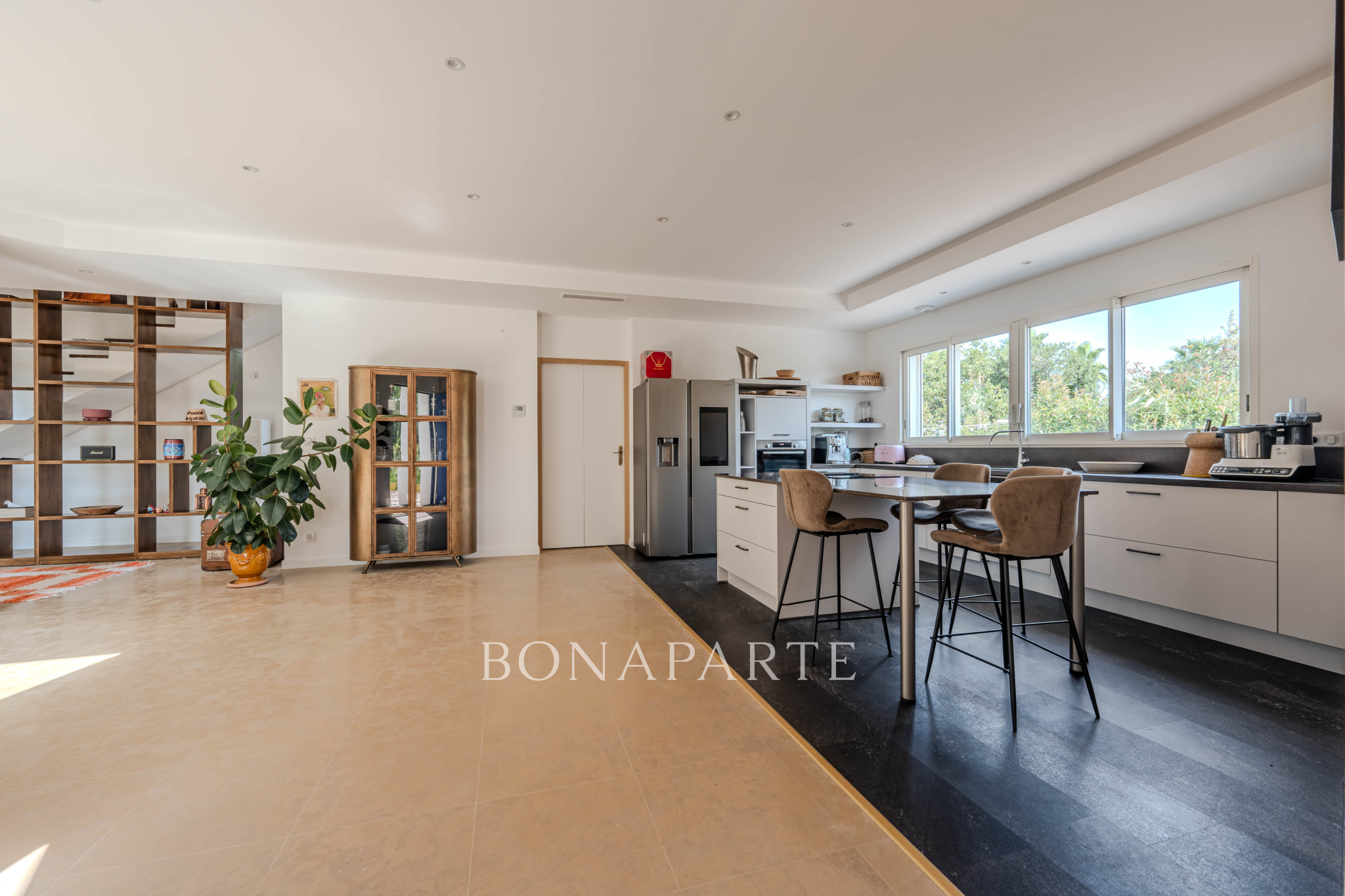 À deux pas de la mer, dans un environnement paisible et verdoyant, cette villa contemporaine d'architecte réalisée en 2022 incarne l'élégance moderne et l'art de vivre méditerranéen.