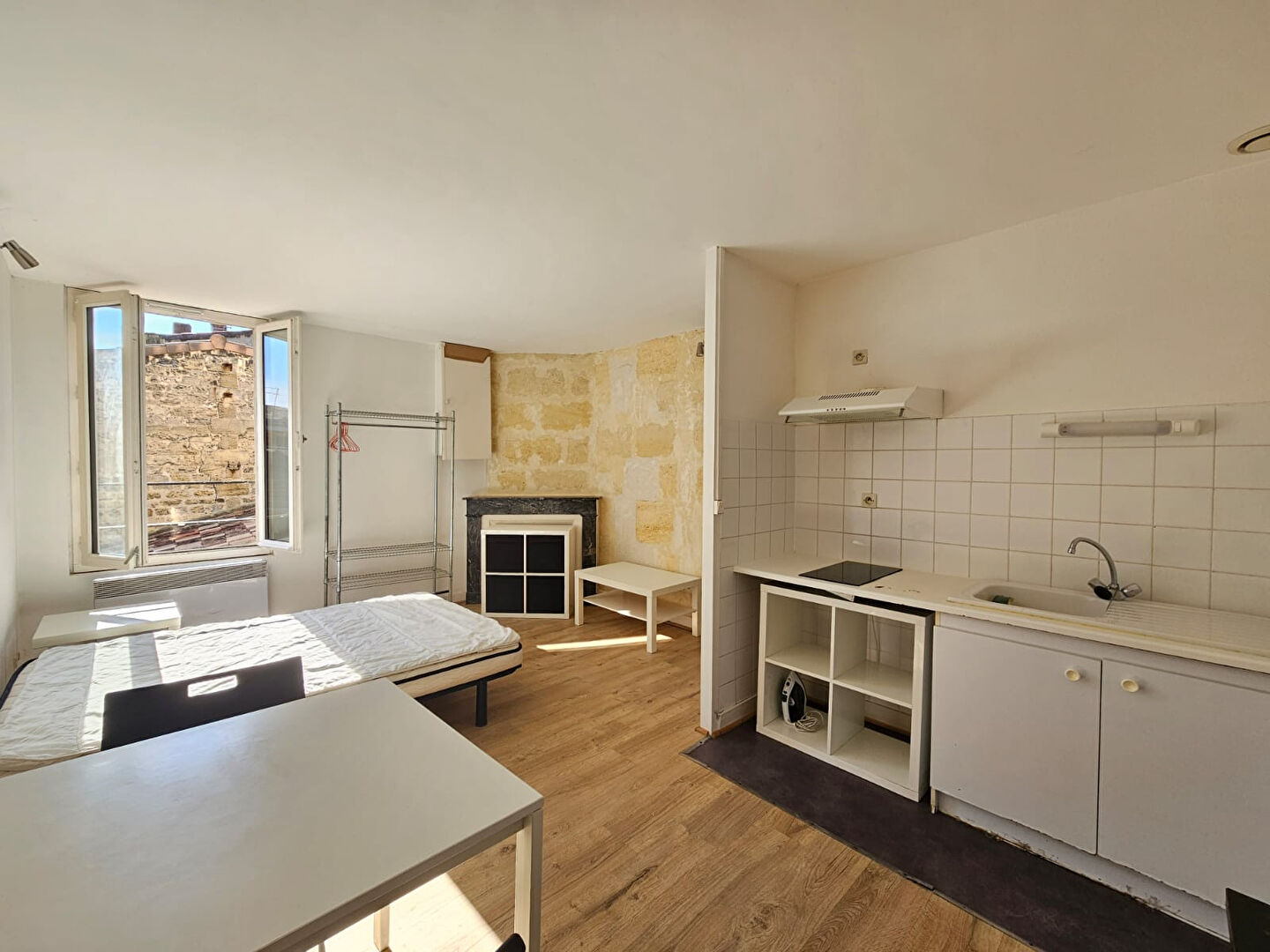 Bordeaux centre à 2 pas des quais et des bords de Garonne, dans une agréable rue du Quartier Saint Michel, belle opportunité d'achat pour résidence principale et/ou d'investissement locatif pour cet appartement libre de 24 m² situé dans un immeuble en pierre entièrement ravalé et rénové par architecte. Cet appartement lumineux bénéficie d'une belle vue dégagée et se compose d'une entrée, d'une grande pièce de vie avec coin cuisine ouvert, d'une salle d'eau (avec branchement machine à laver), et de toilettes séparées. Fenêtres double vitrage, aucune anomalie électrique, cheminée pierre et pierre apparente. DPE D. Toute petite copropriété de 4 appartements, syndic bénévole, très faibles charges. (3.77 % honoraires TTC à la charge de l'acquéreur.) Copropriété de 6 lots - dont 4 lots habitation. Charges annuelles : 300 euros.