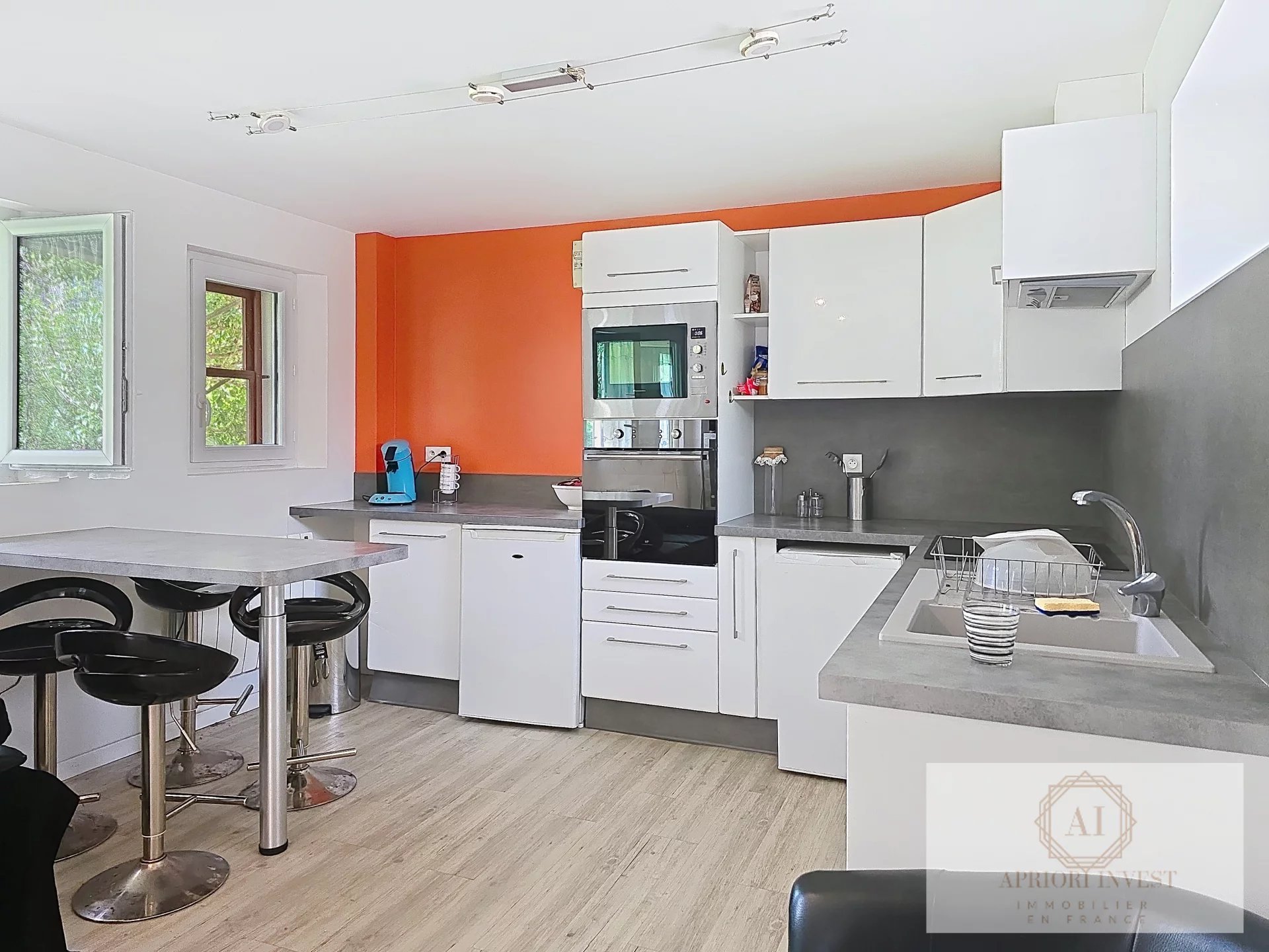 Le premier appartement duplex est composée au rez-de-chaussée d'une entrée, une cuisine équipée, à l'étage de 2 chambres communicantes, toutes les deux avec accès sur un balcon filant, d'une salle d'eau avec WC et d'un cellier. En face de l'entrée de la maison – une petite terrasse ombragée . Le deuxième appartement qui représente un grand studio avec un grand rangement, une salle d'eau avec WC possède un accès indépendant.