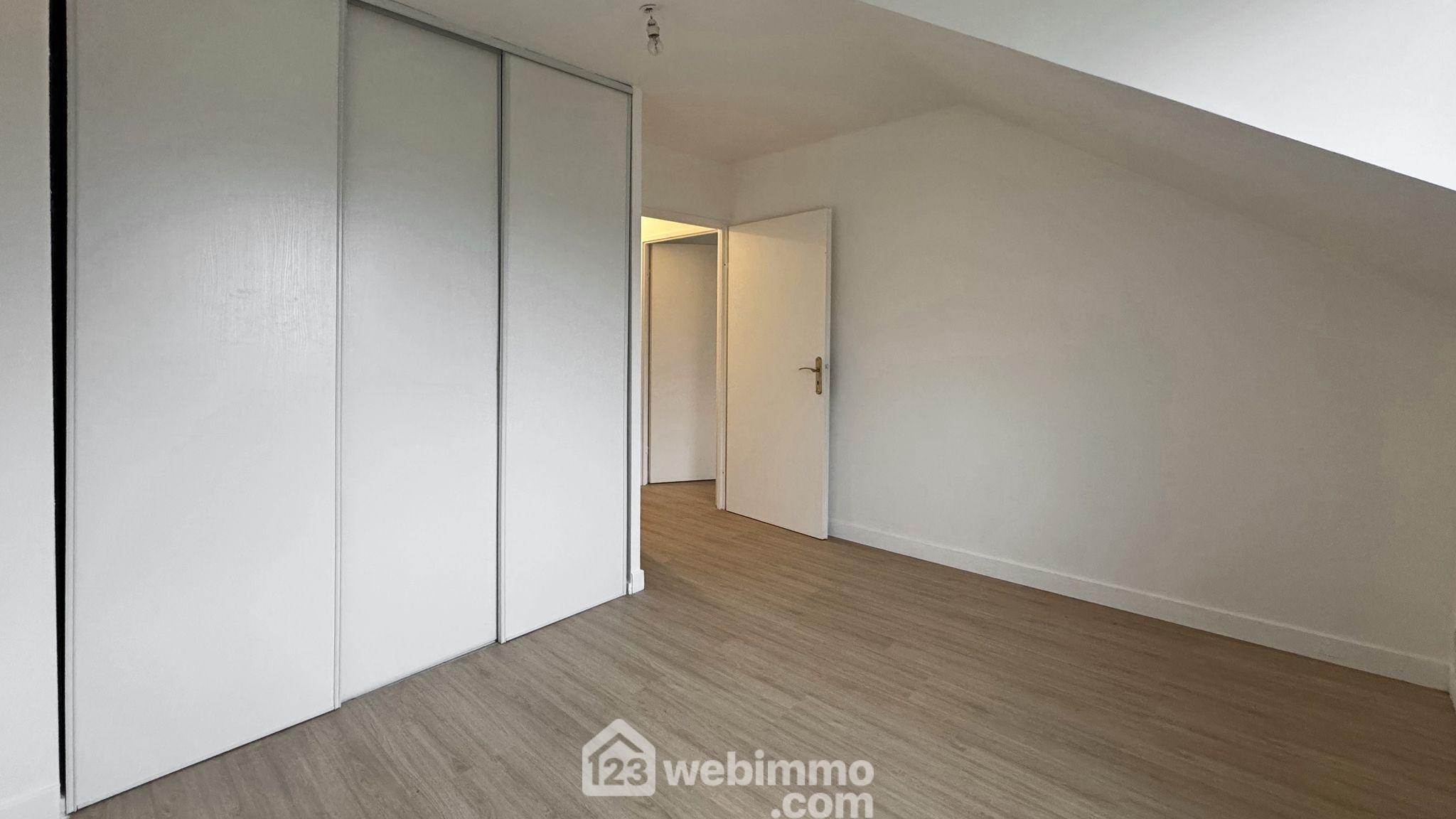 L'étage dessert un palier, deux belles chambres avec placards intégrés, offrant de beaux espaces de rangement, et une salle de bains fonctionnelle avec WC.